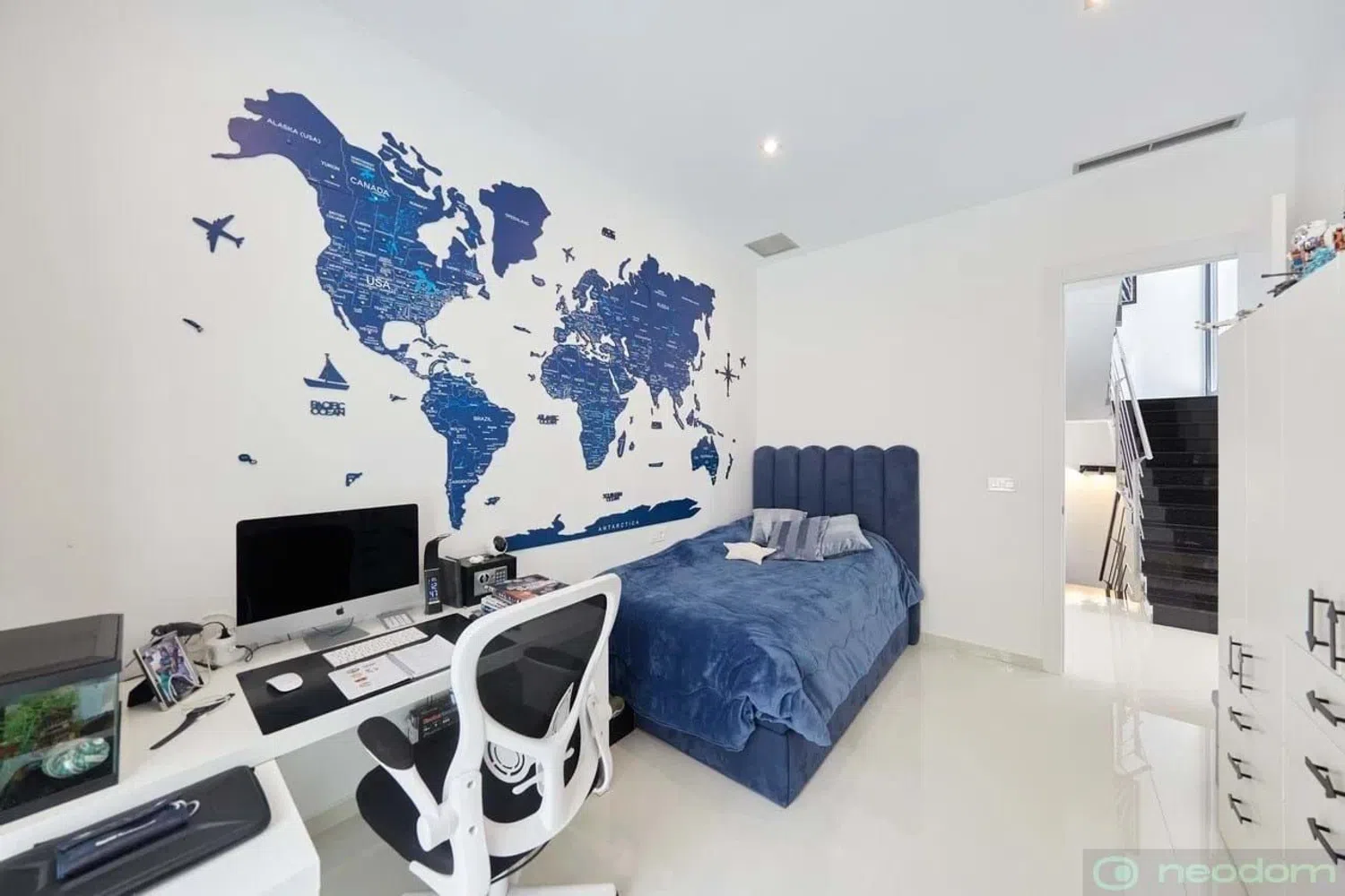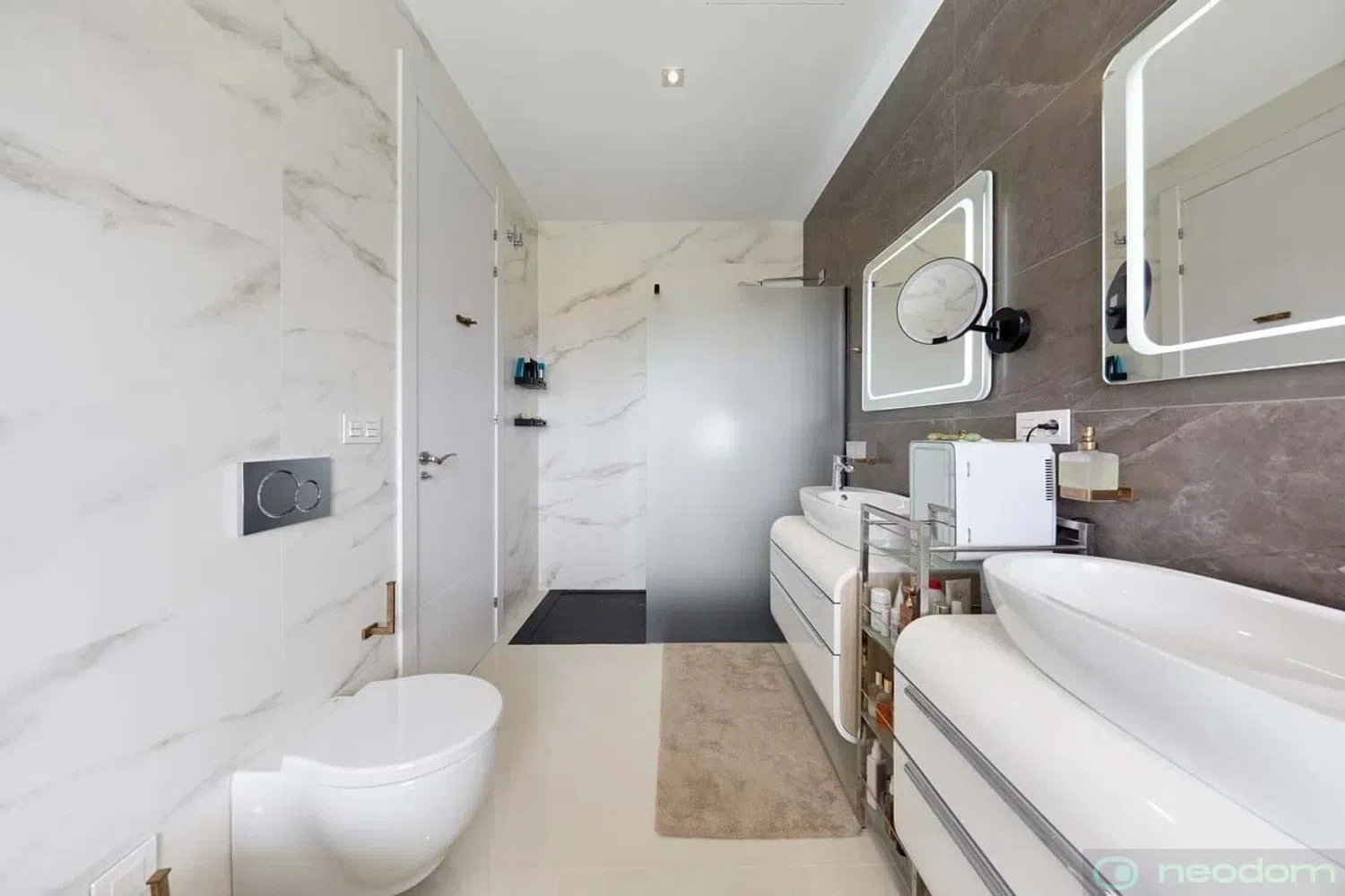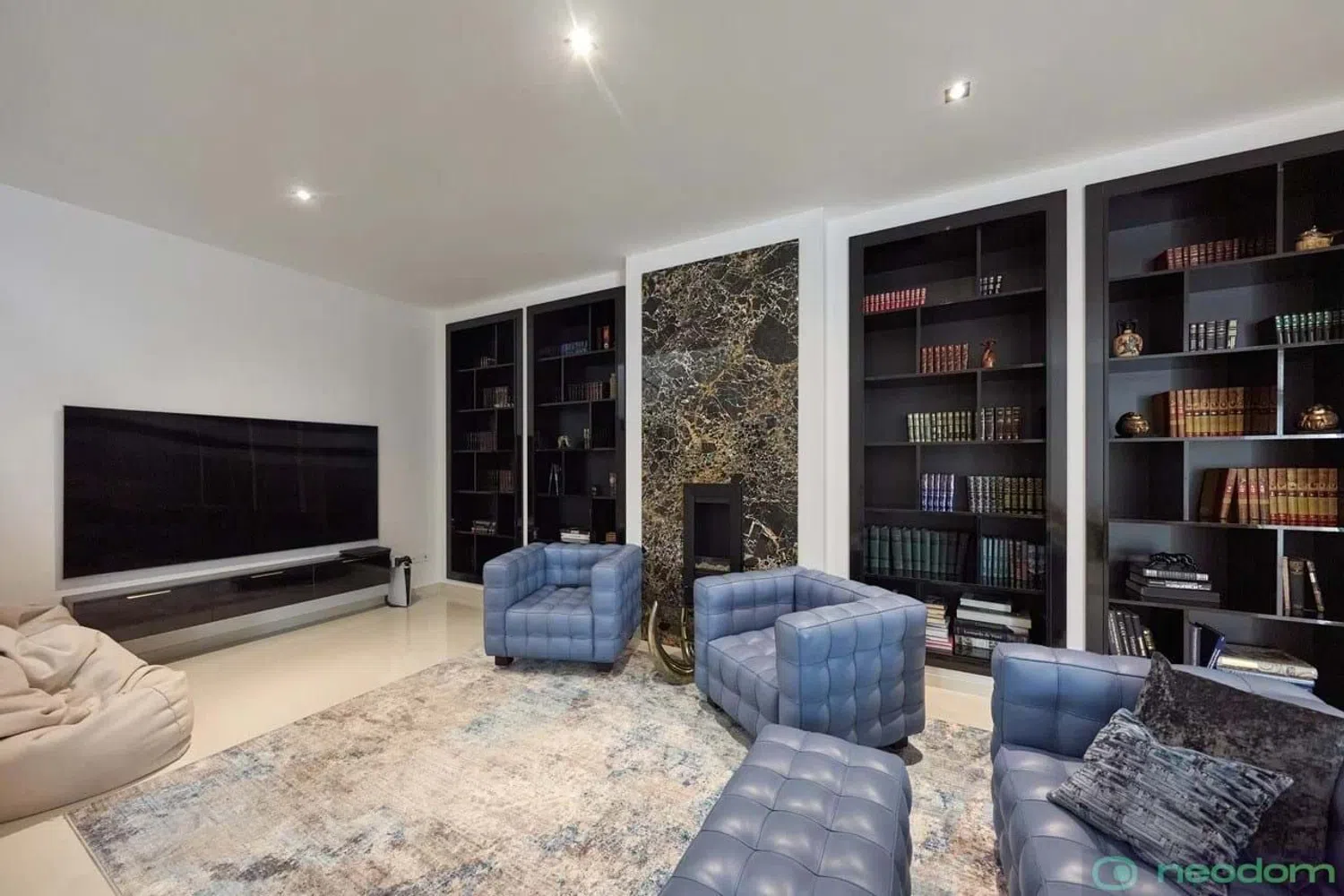 The villa is situated on a spacious plot and encompasses a generous built area. Inside, it offers a fully equipped open-plan kitchen, five inviting bedrooms, and six modern bathrooms, along with a private swimming pool. Advanced home automation systems control various features such as air conditioning, underfloor heating, outdoor and indoor lighting, and window shutters. Additional highlights include solar panels, comprehensive smart home technology, a gym, a library with biochemical capabilities, a laundry room, and a separate dressing area.