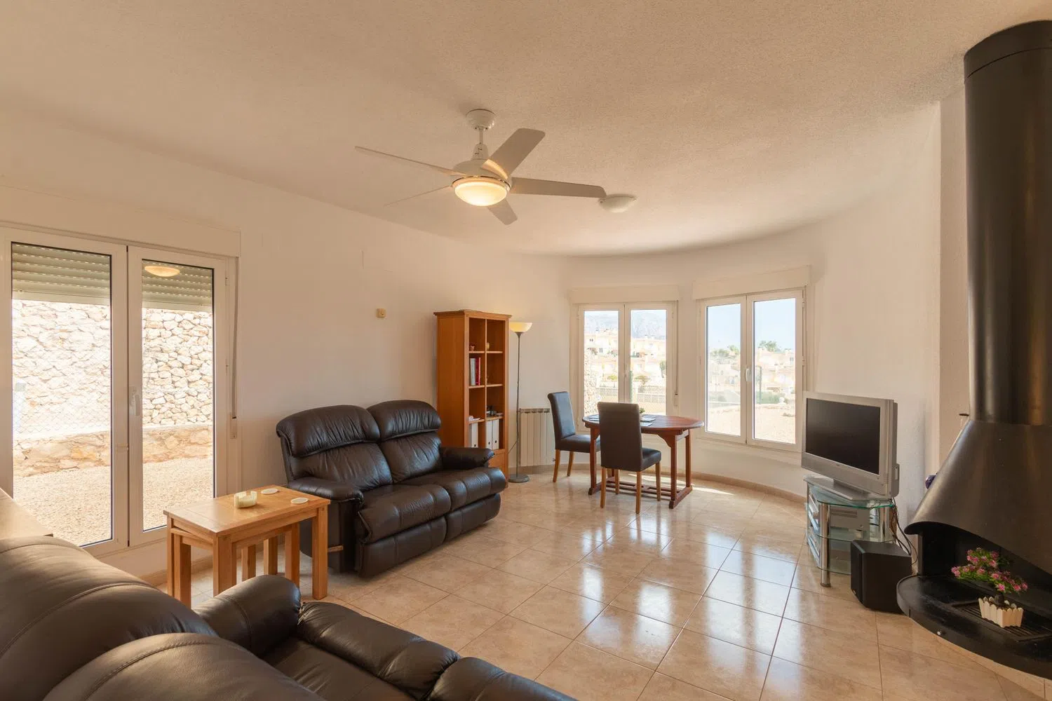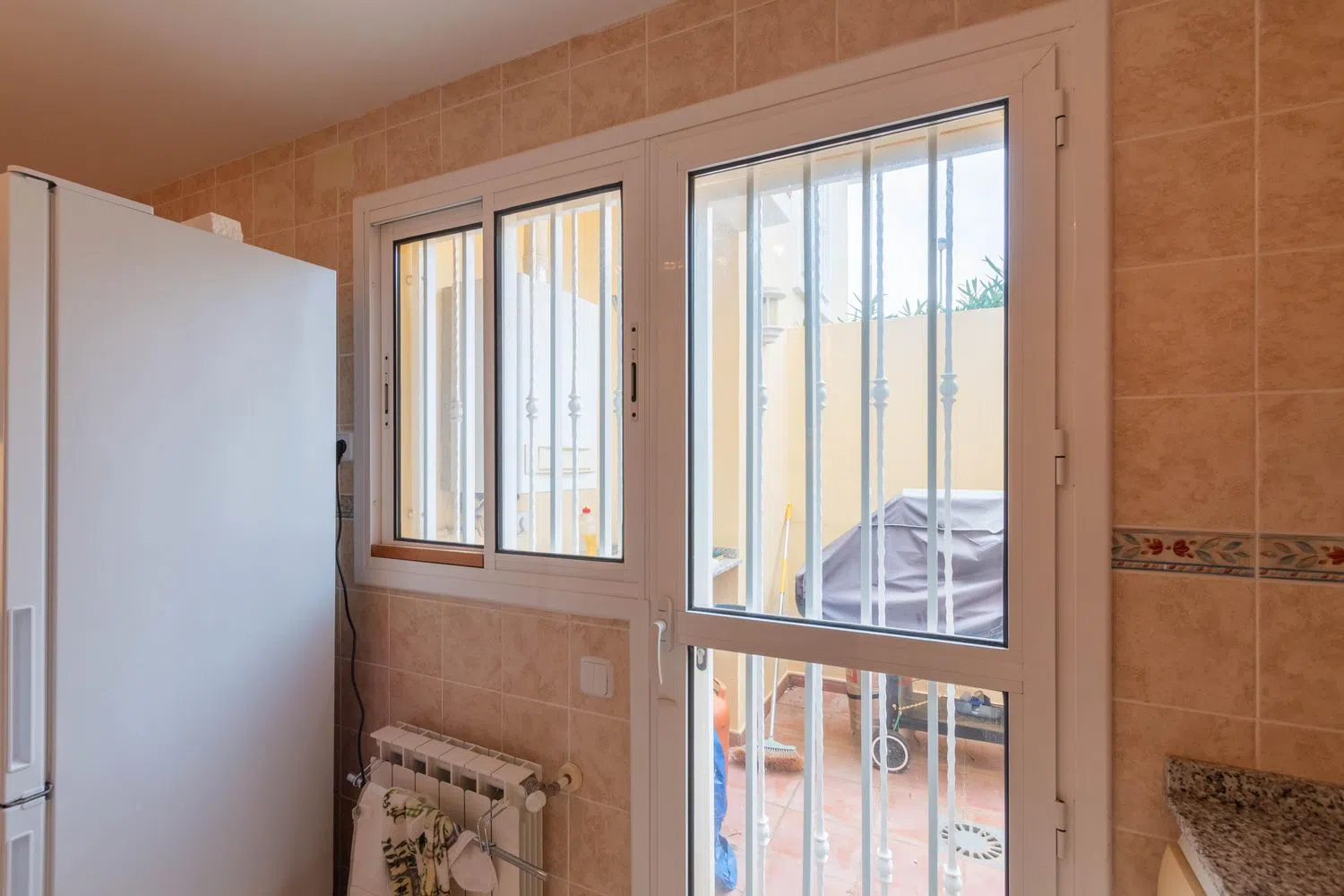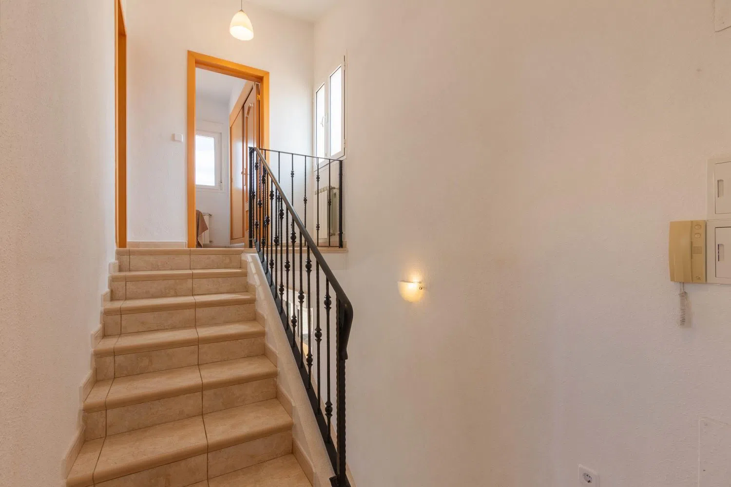 Among its many comforts, the property includes ceiling fans, central heating, and private parking. The added benefits of communal pool access, a spacious private area, and breathtaking vistas highlight this excellent opportunity, perfectly situated between two vibrant coastal towns.
