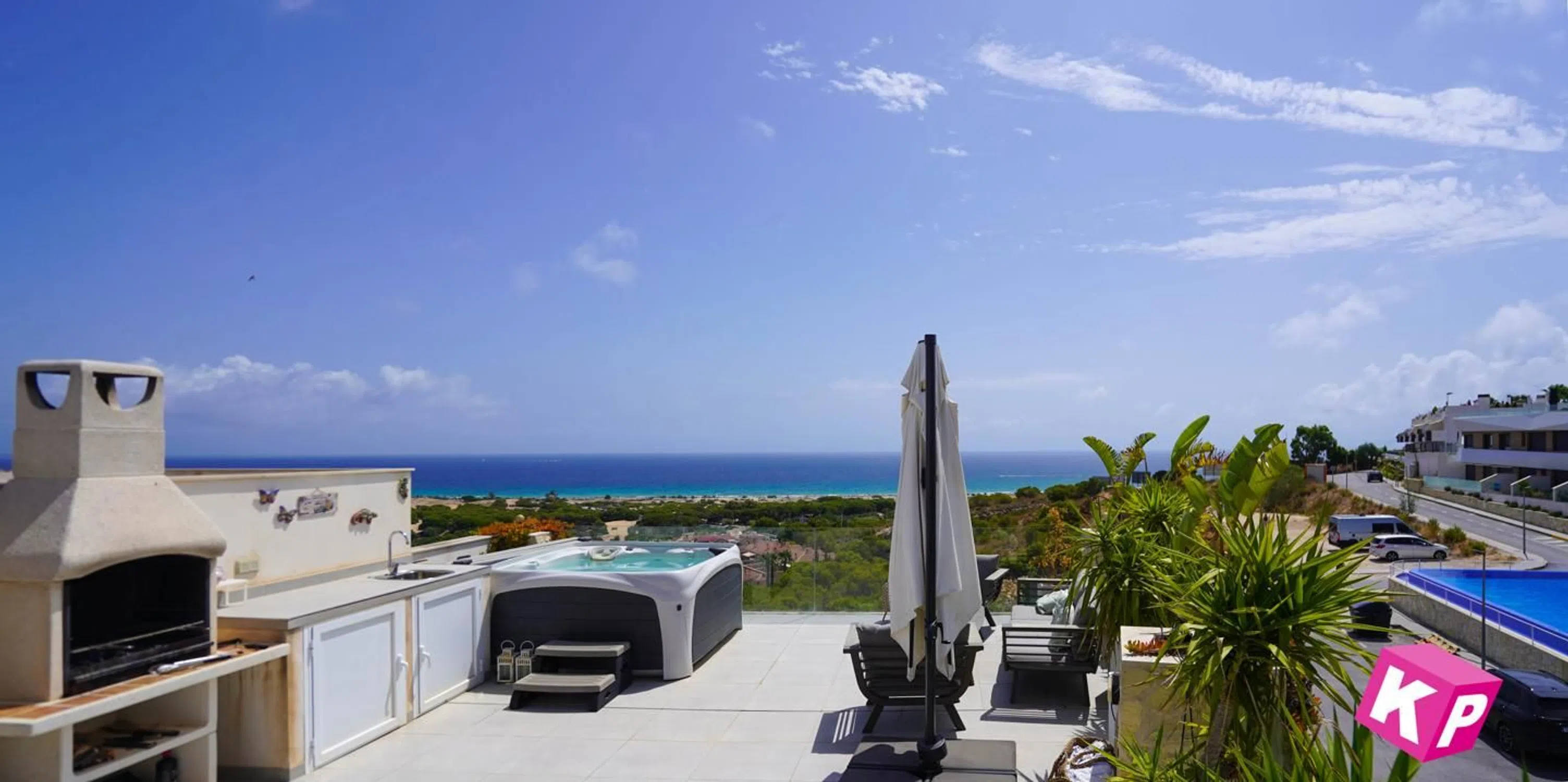 Moderno apartamento construido en 2019 en el popular Gran Alacant. Ubicado en una urbanización cerrada con piscina y gimnasio. A 500 metros a pie de la playa de Bandera Azul del Carabassi. Dispone de 2 dormitorios, uno con vistas al mar, 1 baño con ducha y un aseo. La cocina está abierta al salón y ofrece maravillosas vistas al mar. En la planta superior encontrará su propia amplia azotea con fantásticas vistas al mar. También dispone de jacuzzi, cocina exterior, barbacoa de obra y mucho espacio para familiares y amigos. La urbanización también dispone de una plaza de aparcamiento privada y un trastero en el garaje. La propiedad se vende amueblada y está equipada, entre otras cosas, con aire acondicionado y calefacción central. Este apartamento merece la pena visitarlo; aquí tiene una oportunidad única de adquirirlo. ¡Contáctenos en el inmobiliaria KP Karolin Persson para obtener más información o programar una visita! Inmobiliaria registrada, con experiencia desde 2006 y buen conocimiento local. TENEMOS LA VIVIENDA QUE BUSCAS.