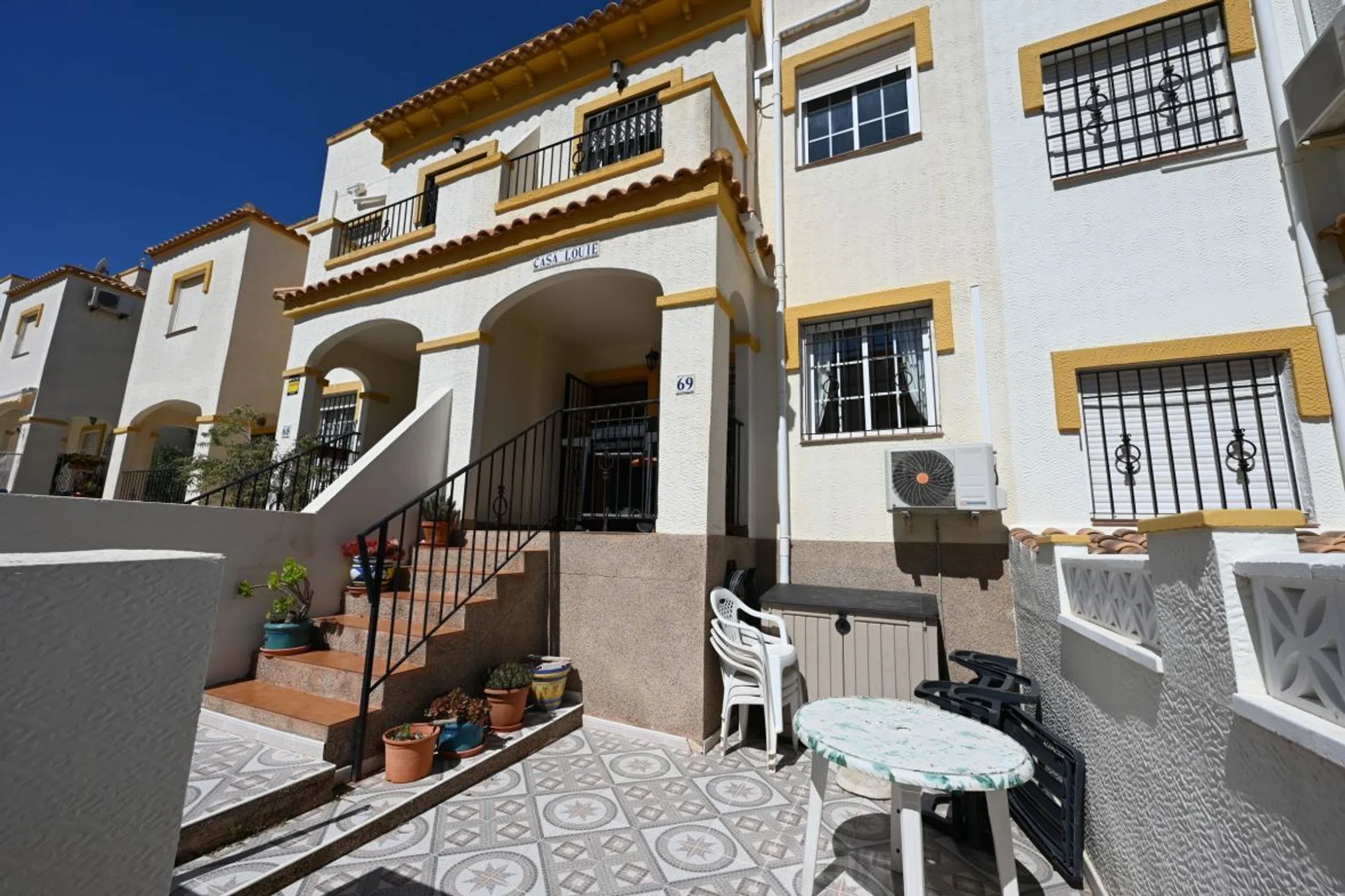 Fabuloso adosado en Altomar I, orientación sureste, con VISTAS PANORAMICAS AL MAR Y A LA MONTAÑA desde el solárium. Esta maravillosa vivienda es perfecta para una familia para vivir todo el año pero también una excelente opcion como segunda residencia para disfrutar de la playa, piscina y el entorno tranquilo de Gran Alacant. La escritura de compraventa se firmará principios / mediados de octubre 2025. La propiedad consta de Fantástica terraza delantera, muy privada, donde disfrutar del sol durante todo el día. Aquí hay mucho espacio para una zona chill out y una zona de comedor. La terraza da paso a un porche exterior, perfecto para disfrutar del sol de la mañana y de la sombra por la tarde. Planta baja Amplio salón-comedor con aparato de aire acondicionado, cocina independiente totalmente equipada, galería techada con espacio para almacenamiento, baño completo con ducha. Planta alta Tres habitaciones dobles, todos con arie acondicionado, el principal con baño en suite con bañera y una pequeña terraza con vistas al mar. También hay un baño principal con bañera en esta planta. Solarium Fabuloso solarium con increíbles vistas al mar, perfecto para tomar el sol y disfrutar del excelente clima de Alicante. La vivienda se vende amueblada y con electrodomésticos, para entrar a vivir. ¡Contáctanos para visitarla! Comunidad aprox. 110€ /trimestre IBI aprox. 350€ ALTOMAR IAltomar I es un complejo residencial situado en la parte alta de Gran Alacant, muy céntrico, donde la Avenida del Mediterráneo se une con la Avenida de Escandinavia, y por tanto muy cerca del centro médico, la biblioteca, transporte público, restaurantes, comercios.Consta de viviendas de dos plantas con terraza y solárium, con aparcamiento en la calle justo al lado de la vivienda. El conjunto de viviendas dispone de una amplia zona comunitaria en el centro del complejo con bonitas zonas ajardinadas, piscina de diseño con cascada para adultos y niños, pista de petanca e instalaciones deportivas para pistas de baloncesto y tenis. Desde aquí también se puede disfrutar de preciosas vistas al mar. GRAN ALACANT Entre Alicante ciudad y en el municipio de Santa Pola encontrarás Gran Alacant. Se trata de un conjunto de urbanizaciones, todas ellas situadas sobre el cabo de Santa Pola, entre la sierra de Santa Pola y la magnífica playa de bandera azul del Carabasi conocida por sus finas arenas doradas, dunas y agua transparente. Además, Gran Alacant linda con el paraje natural de Clot de Galvany donde conviven diversidad de plantas y ambientes con una excelente fauna y flora. En Gran Alacant tienes todos los servicios necesarios al alcance de tu mano: colegio, polideportivo, centro comercial, supermercados, restaurantes, dependencias policiales, biblioteca, parques, centro de salud etc. Respecto a su situación geográfica, se encuentra situada en un punto estratégico: a tan sólo 10 minutos del aeropuerto, a 15 km de Alicante y menos de 10 km de Santa Pola. Santa Pola a su vez destaca por su gran tradición pesquera. Muy conocido es su puerto marítimo con conexión directa a la Isla de Tabarca y su fabuloso paseo repleto de restaurantes donde podrás disfrutar de la gastronomía típica alicantina y unas agradables vistas.