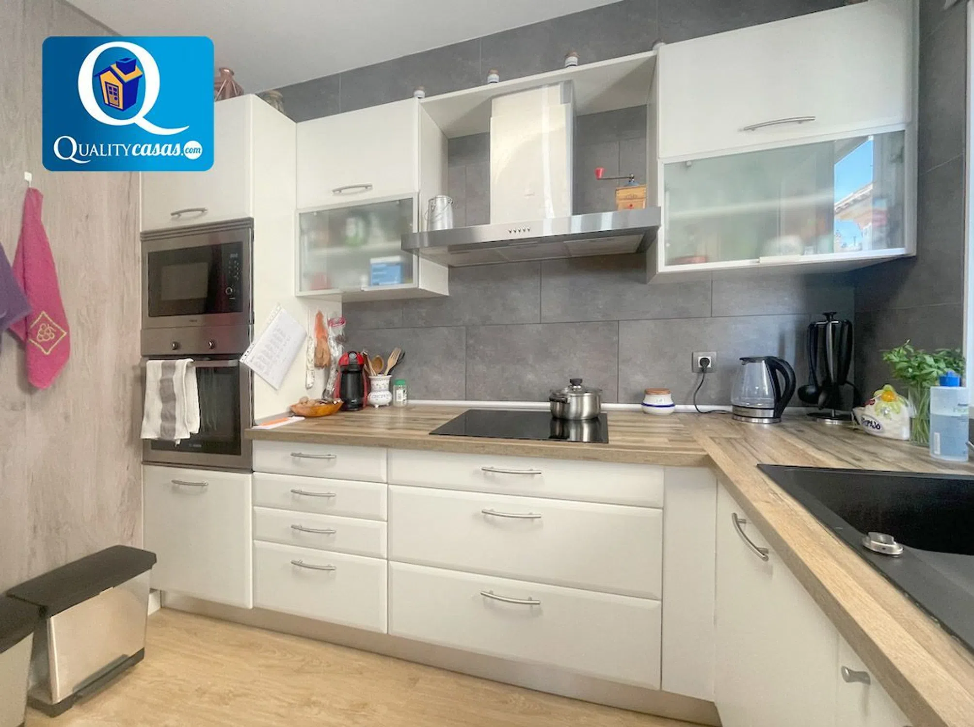 Referencia 12441 Un magnífico bungalow en excelente zona residencial de Santa Pola (Gran Alacant), muy bien localizado y con vistas a zonas ajardinadas. Dispone de urbanización privada con zona comunitaria, piscinas para adultos y niños, zona infantil y zona deportiva. Se trata de una propiedad totalmente exterior, amplia y luminosa, con excelente distribución y 4 zonas de terraza con un total de 112 m2. Con una construcción sólida y de calidad, la vivienda se encuentra en excelente estado y dispone de óptimas calidades, contando con AA. CC con 3 splits, toldos, mosquiteras, carpintería lacada en blanco, suelos en tarima flotante y ventanas aluminio climalit, entre otras mejoras. El amplio patio terraza de entrada a la vivienda, magníficamente acondicionado, da paso al luminoso salón, con dos orientaciones y dos ambientes, que cuenta con cocina integrada, totalmente equipada, y que dispone además de patio galería. La vivienda cuenta con 3 dormitorios (2 de ellos con armarios empotrados) y 2 baños completos, disfrutando el dormitorio principal de magnífica terraza. El bungalow está rodeado de un entorno privilegiado y tranquilo. Hay que recordar su privacidad y, al mismo tiempo, su proximidad a todos los servicios, su cercanía al núcleo urbano y zonas residenciales, así como sus excelentes comunicaciones. Una magnífica vivienda en excelente zona residencial de Santa Pola, para quien sabe apreciar su exclusividad y todas las posibilidades que ofrece. Concierte ahora una visita y compruebe personalmente la oportunidad que supone la adquisición de esta propiedad. La presente publicación tiene carácter meramente informativo, orientativo y no vinculante, por lo que no supone información contractual alguna, siendo su uso estrictamente comercial. Este anuncio puede contener errores, se muestra a título informativo de la información recibida, sin ser responsable la inmobiliaria de dichos errores.