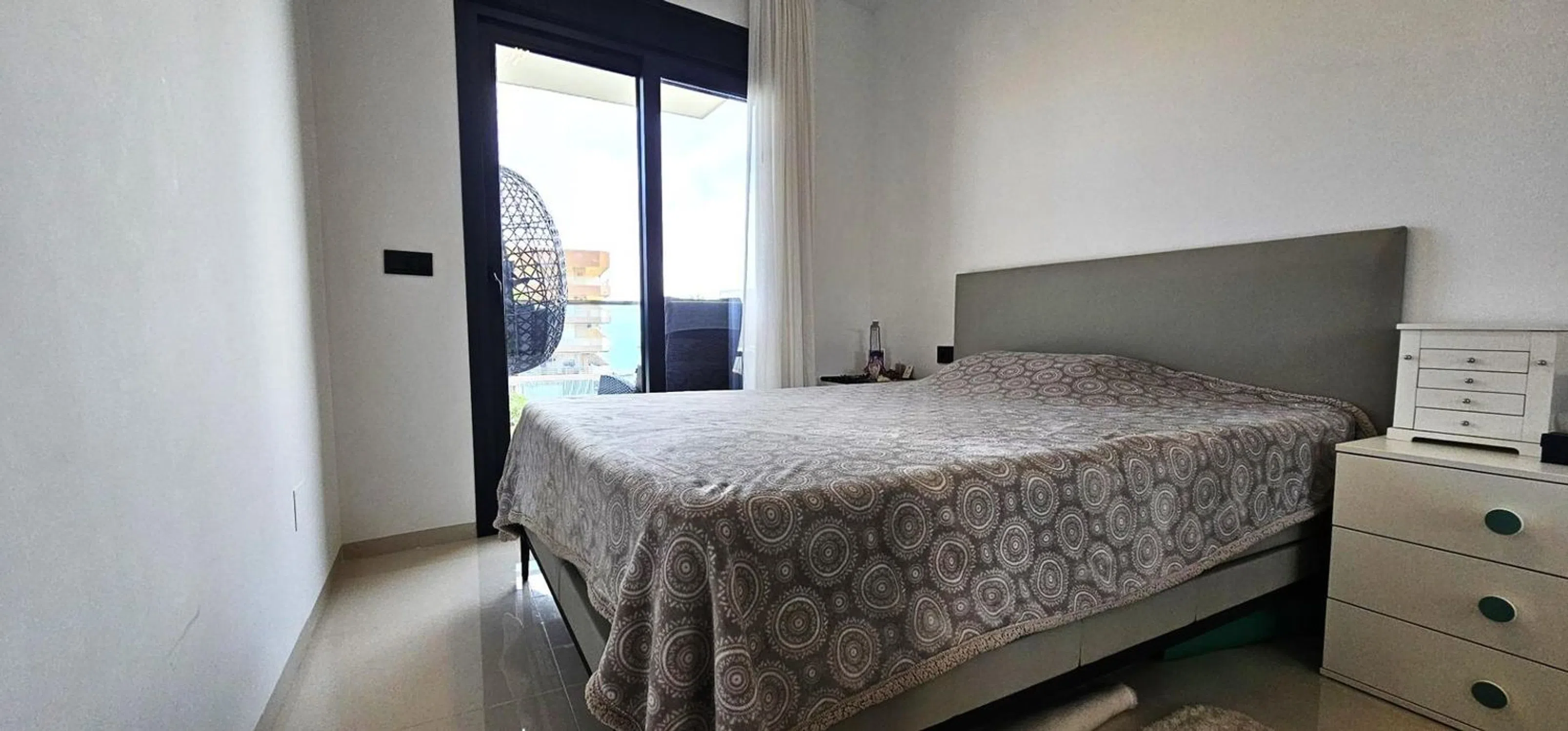 Descubra este precioso apartamento en la primera planta, situado a tan solo 300 metros de la playa, en un complejo residencial de reciente construcción. Con 82 m² de espacio habitable, esta vivienda combina a la perfección un diseño moderno con el encanto de la costa. El apartamento cuenta con: 2 amplios dormitorios con armarios empotrados 2 baños modernos Una luminosa cocina americana de planta abierta Un cómodo salón-comedor con acceso a una terraza privada con vistas al mar Disfrute de la máxima comodidad durante todo el año gracias al aire acondicionado centralizado frío/calor, y benefíciese de la comodidad de un ascensor y una piscina comunitaria, ideal para relajarse y socializar. Además, la propiedad ofrece una plaza de aparcamiento subterránea (18 m²) y un trastero, ambos disponibles como extras opcionales. Ya sea que busque una residencia habitual, una casa de vacaciones o una inversión, este apartamento ofrece una ubicación inmejorable y una excelente relación calidad-precio a pocos pasos del mar.