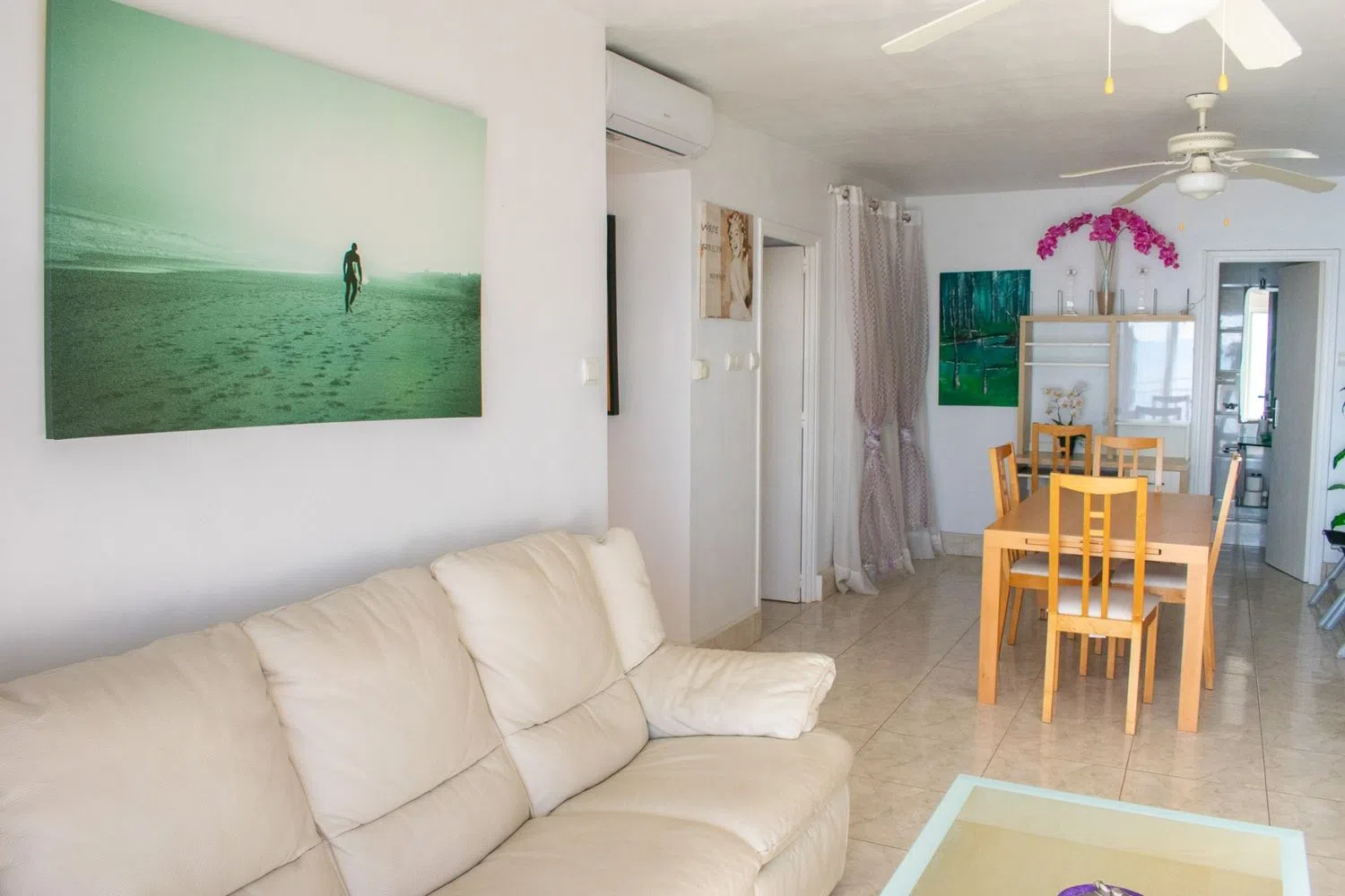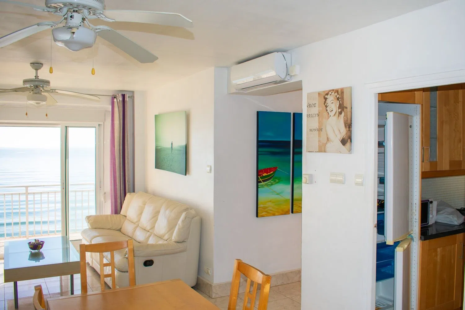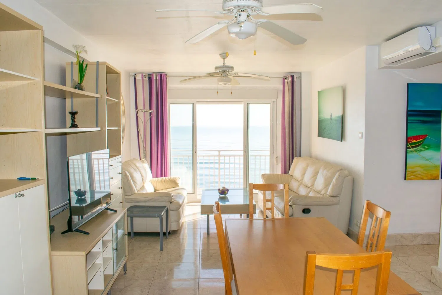 The apartment is delivered fully furnished and includes air conditioning in the living room, heating, and ceiling fans throughout the spaces. Additionally, a parking space is included in the price, adding significant value for residents. Its prime location offers direct access to the promenade and beach, making it ideal for both permanent residence and enjoyable holiday stays.