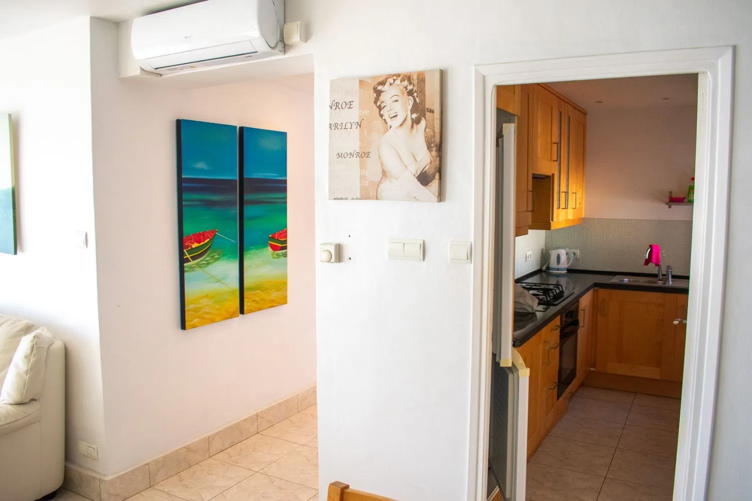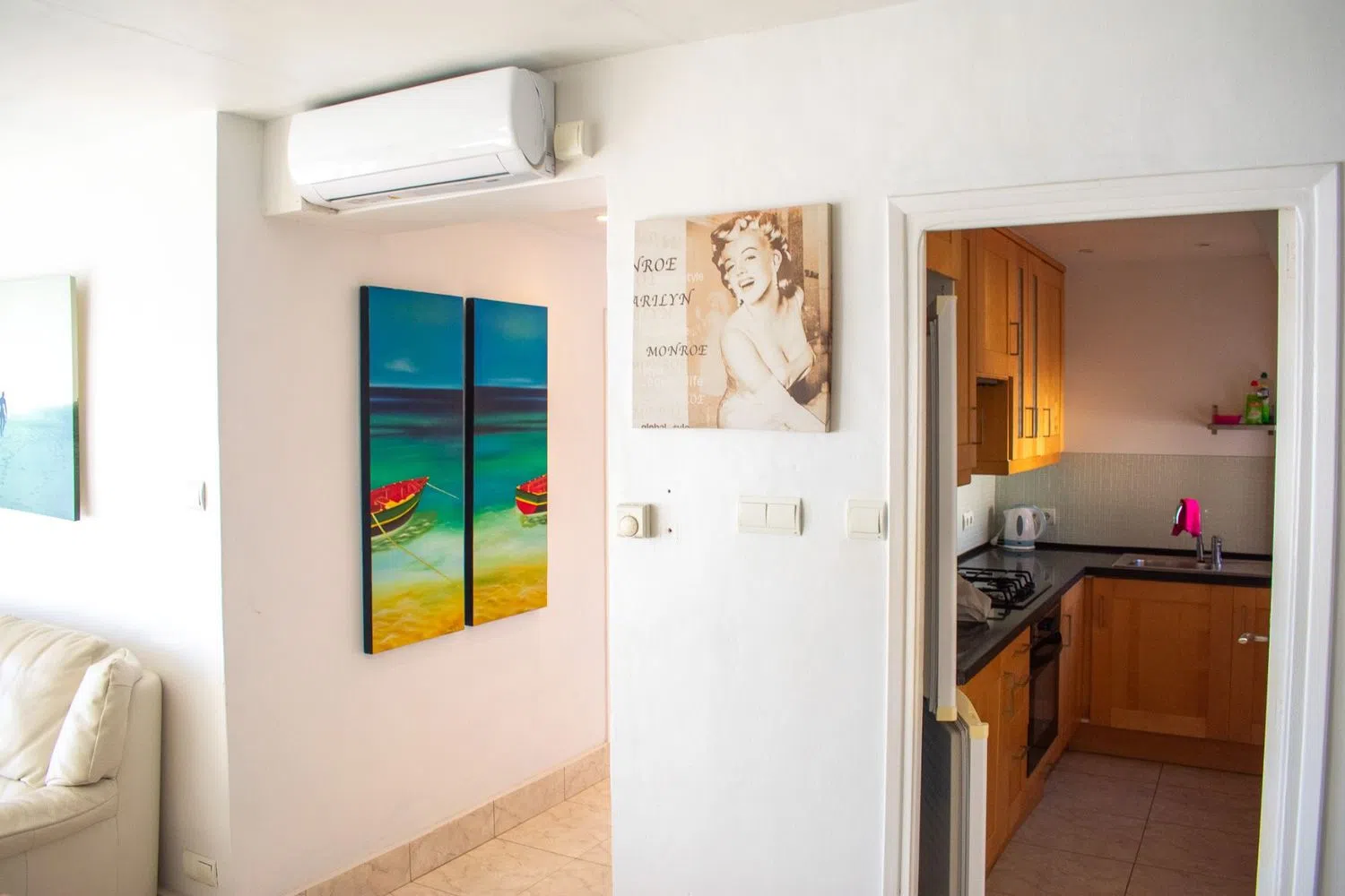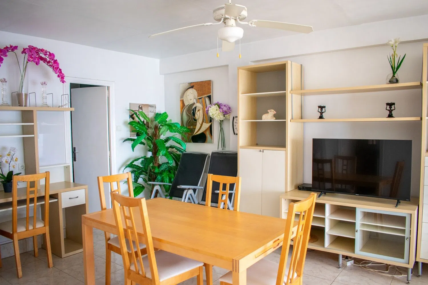 The apartment is delivered fully furnished and includes air conditioning in the living room, heating, and ceiling fans throughout the spaces. Additionally, a parking space is included in the price, adding significant value for residents. Its prime location offers direct access to the promenade and beach, making it ideal for both permanent residence and enjoyable holiday stays.