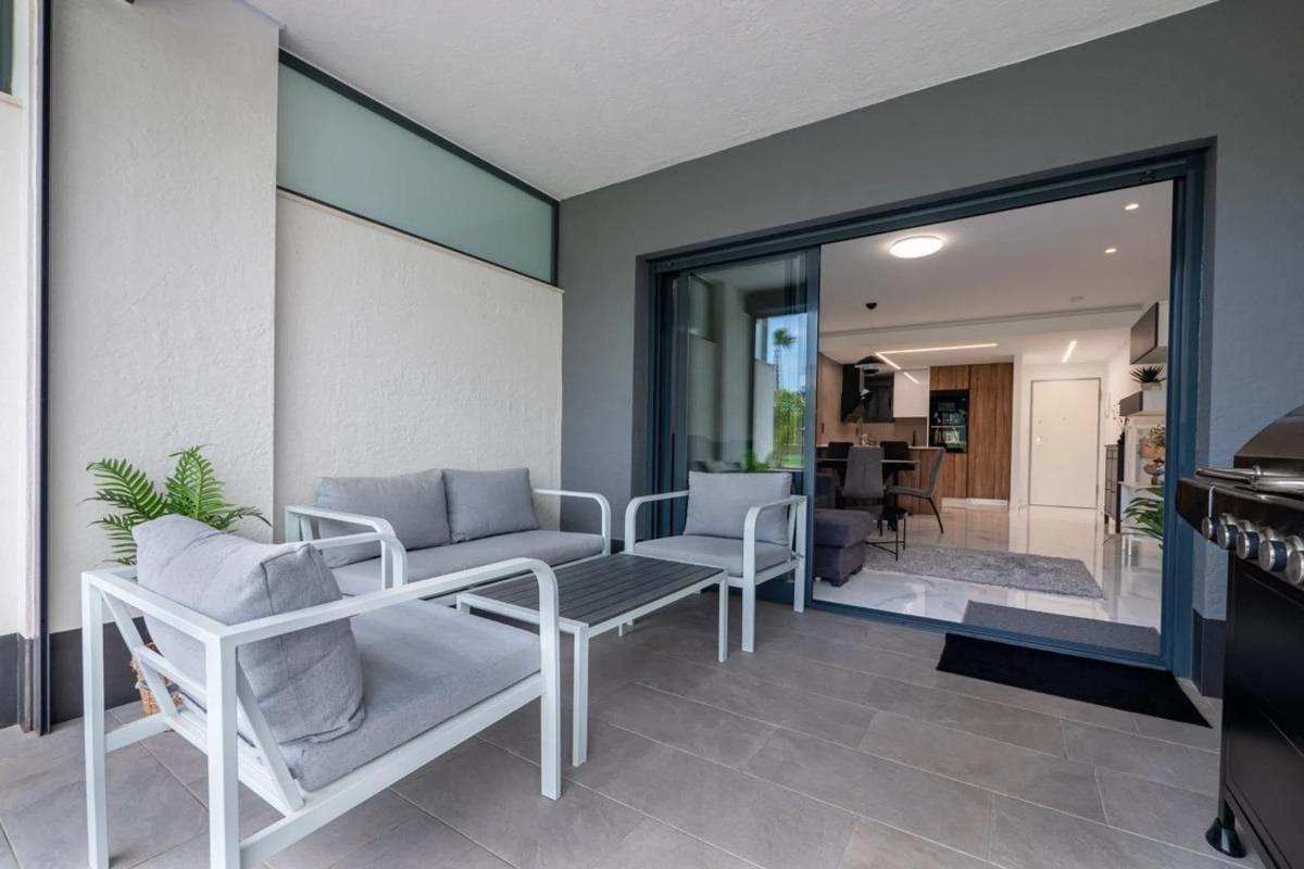 Bienvenido a este hermoso bungalow moderno, construido en 2023, en la maravillosa zona residencial de Oasis Beach en El Raso. Esta urbanización es moderna y nueva y está cerca de la laguna salada de La Mata donde se puede hacer senderismo alrededor de todo el lago y del Parque Natural. El bungalow está en la planta baja por lo que tiene fácil acceso desde y hacia la calle y desde la terraza se puede disfrutar de la vista de la zona de la piscina comunitaria y el jardín. Disfrute de la planta abierta con cocina y salón totalmente amueblados. Los dos dormitorios son amplios con armarios empotrados y el dormitorio principal tiene baño en suite.