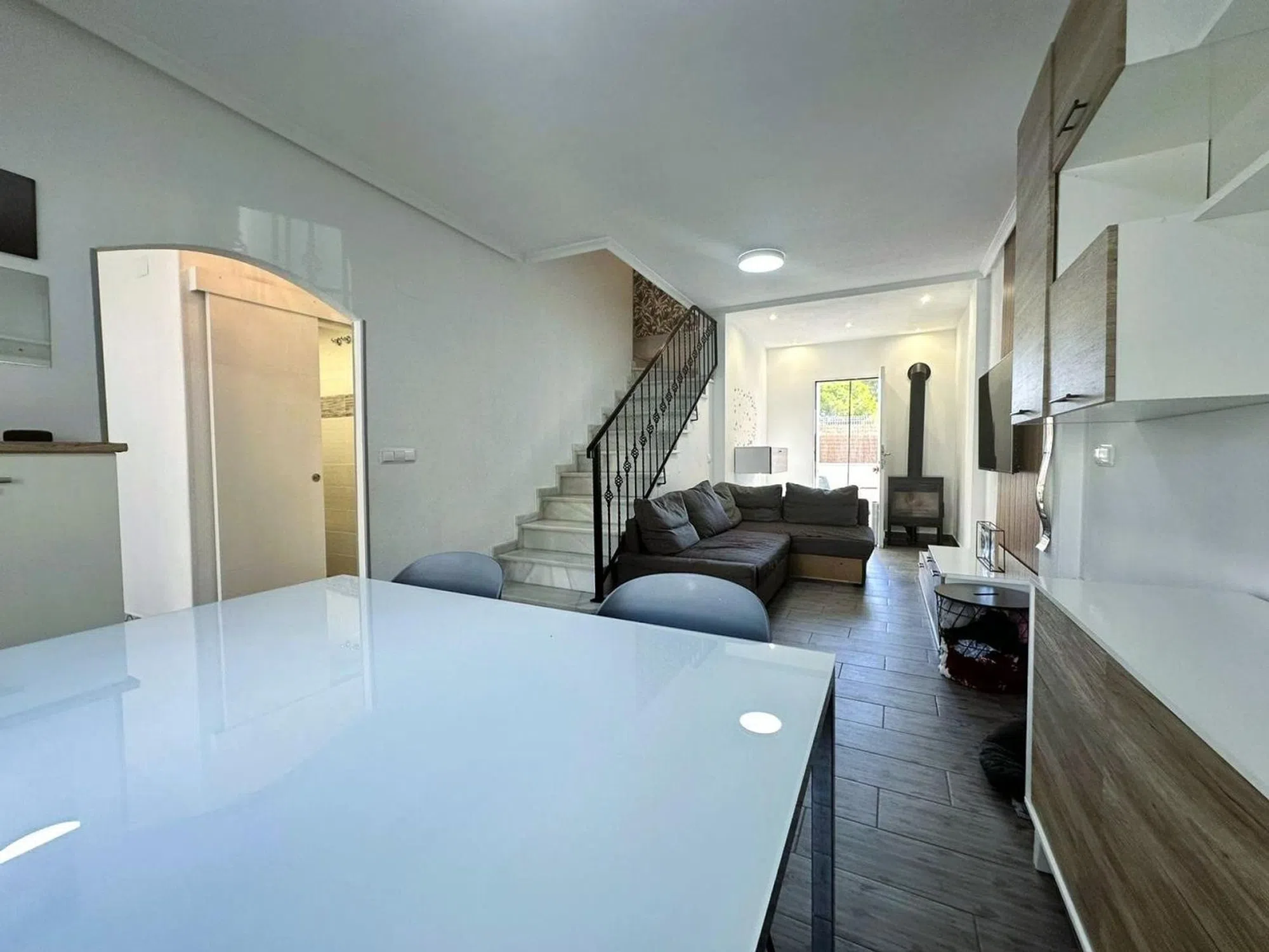Vivienda reformada con terrazas, solárium y piscina comunitaria Vivienda reformada con terrazas, solárium y piscina comunitaria Descubre esta encantadora vivienda privada, completamente reformada y llena de luz natural, que combina comodidad, amplitud y calidez en cada uno de sus espacios. Características principales: • Dos amplias terrazas — delantera y trasera — perfectas para relajarte, disfrutar al aire libre o compartir momentos en familia. • Salón-comedor con chimenea de leña, creando un ambiente acogedor ideal para el invierno. • Cocina independiente pero semiabierta, luminosa, amplia y muy funcional, que comunica con el salón aportando amplitud y fluidez al espacio. • Tres dormitorios exteriores, todos con gran luminosidad, siendo el principal con vestidor. • Dos baños modernos, cómodos y con un diseño actual. • Solárium privado, ideal para tomar el sol, crear una zona chill-out o instalar una barbacoa. • Piscina comunitaria para disfrutar del buen tiempo. Ubicada en una zona tranquila y bien comunicada, cerca de todos los servicios, esta vivienda es perfecta tanto para vivir todo el año como para disfrutar de unas vacaciones inolvidables.