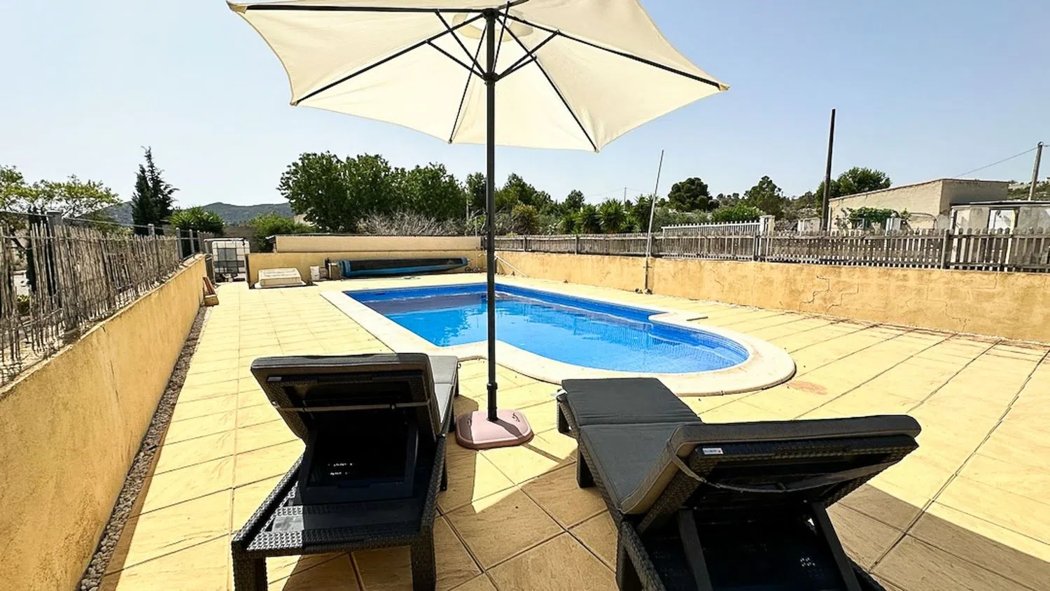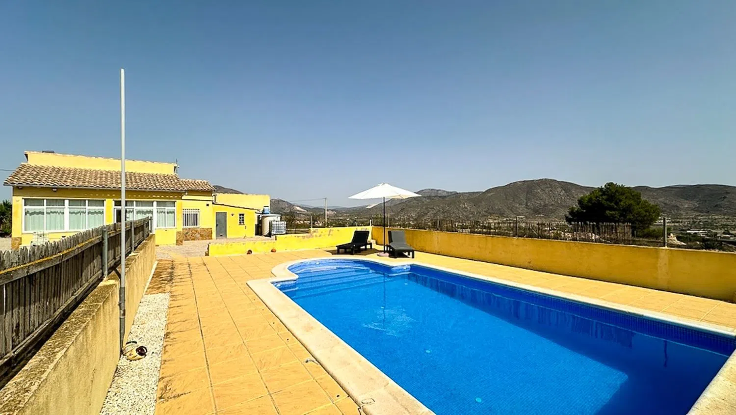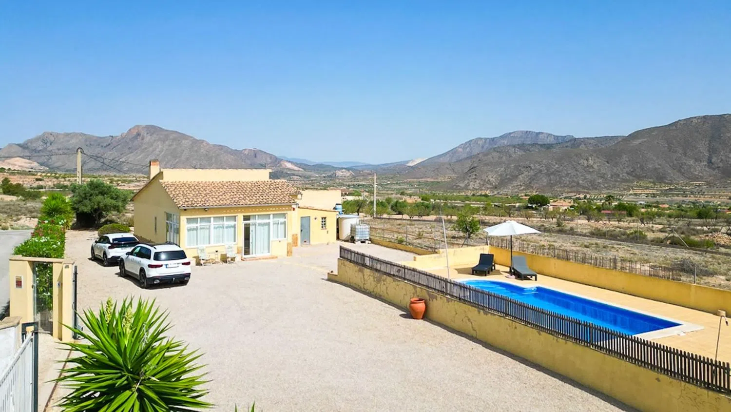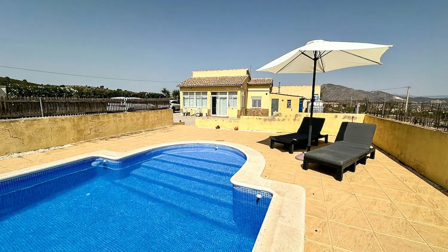 Ubicada en lo alto del pintoresco pueblo de Hondón de los Frailes, en el corazón del exuberante Valle de Hondón, esta encantadora villa independiente de dos dormitorios y dos baños ofrece una combinación única de tranquilidad, privacidad y potencial. Ya sea que busques un refugio vacacional tranquilo o una residencia permanente, esta propiedad representa una excelente oportunidad para crear la casa de tus sueños mientras aumentas su valor. Ubicación y Parcela La villa se encuentra en una parcela llana de 1.868m², con acceso a través de un portón eléctrico deslizante, que garantiza seguridad y privacidad. Su ubicación elevada permite disfrutar de impresionantes vistas panorámicas, con el pueblo de Hondón de los Frailes al este y las montañas de Murcia y la Sierra de la Pila al oeste. Además, la propiedad goza de hermosos amaneceres y espectaculares puestas de sol, lo que la convierte en un lugar ideal para disfrutar del entorno natural. La Villa Al ingresar, se accede a una espaciosa naya acristalada (terraza cubierta), que ofrece vistas a la piscina privada y la zona de solárium. Este espacio versátil puede utilizarse como área de recepción, comedor o incluso como dormitorio adicional si se desea. El área principal de la vivienda está diseñada en un estilo de planta abierta, con un luminoso salón-comedor, equipado con una chimenea de leña de hierro fundido, ideal para los meses más fríos. La villa cuenta con una cocina tipo galería, dos dormitorios dobles y un baño con ducha moderna. En la parte trasera de la villa, hay una naya privada acristalada, que incluye una zona de lavandería y un baño adicional. Este espacio podría convertirse fácilmente en un tercer dormitorio o en un alojamiento para invitados, aumentando la versatilidad de la propiedad. La propiedad se vende totalmente amueblada y dispone de electricidad de red, suministro de agua por depósito y acceso a internet de alta velocidad. Espacio Exterior y Jardines La piscina privada de 8x4m y su terraza circundante son el punto central del jardín, proporcionando el espacio perfecto para relajarse y disfrutar del aire libre. La parcela está dividida en cuatro zonas principales, cada una con su propio encanto: Zona sombreada con árboles maduros, perfecta para refrescarse en los meses de verano. Área de piscina, ideal para tomar el sol y disfrutar de las impresionantes puestas de sol. La villa en sí, situada estratégicamente para maximizar la privacidad y las vistas. Jardín trasero, con potencial para paisajismo adicional, un huerto o más zonas de ocio. Para los amantes de la naturaleza, esta ubicación es un auténtico paraíso. La propiedad se encuentra a solo unos minutos de rutas escénicas para senderismo y ciclismo, lo que permite explorar la impresionante campiña española desde la puerta de casa. Potencial de Mejora Actualmente utilizada como casa de vacaciones, la villa mantiene un diseño sencillo y funcional, lo que la hace perfecta para su uso inmediato. Sin embargo, su verdadero potencial radica en su posibilidad de revalorización: con pequeñas mejoras en el paisajismo, modernización de la decoración y algunas renovaciones menores, la propiedad podría transformarse en un espectacular refugio campestre contemporáneo. Resumen de la Propiedad Año de Construcción: 1980 Superficie Construida: 111m² Parcela: 1.868m² Dormitorios: 2 (posibilidad de 3) Baños: 2 Piscina: Privada (8x4m) Garaje: Privado Cocina: Independiente Estado: Gran potencial de mejora Orientación: Sur Distancias Playa: 35 minutos Aeropuerto de Alicante: 35 minutos Servicios más cercanos (Hondón de los Frailes): 3 minutos Campo de golf: 30 minutos Características Adicionales ✔ Totalmente amueblado ✔ Chimenea ✔ Electrodomésticos incluidos ✔ Lavadero ✔ Amplio porche ✔ Gran terraza ✔ Trastero ✔ Conexión a Internet y TV Esta encantadora villa ofrece una oportunidad excepcional para quienes buscan un estilo de vida tranquilo en e