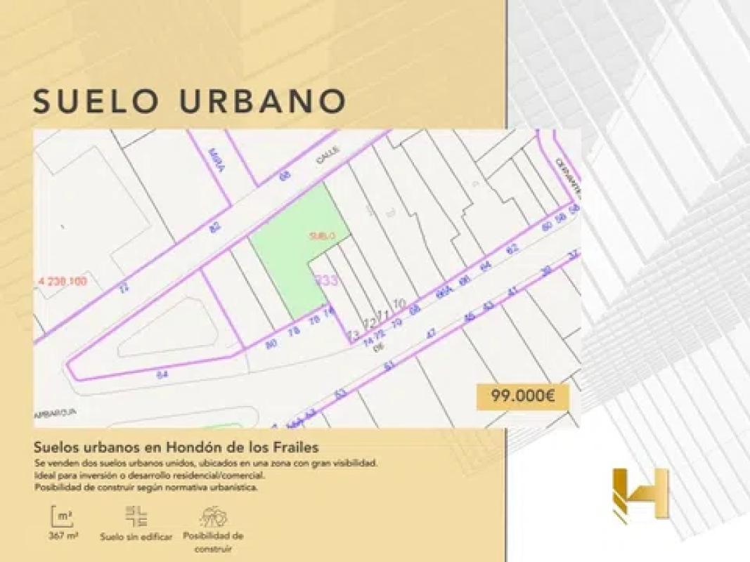 ZOM-HOUSE vende EXCLUSIVOS terrenos En Avenida Constitución Son dos terrenos urbanos Uno de 120m2 y el otro de 329m2 Ubicados en núcleo urbano y acceso rodado NO DUDES EN VISITARLO.. . y hacer tu propuesta. Le informamos que el precio publicado en este anuncio no incluye impuestos de transmisión patrimonial, gastos notariales y de registro, ni de intermediación inmobiliaria. ¿Quieres ver más pisos como este? Accede a nuestra Web, y podrás ver más pisos, Y si no encuentras allí lo que necesitas, contacta con nosotros, ya que no todos los pisos son publicados, por expreso deseo del propietario. No busques más. ! Tenemos más de 430 pisos en Stock, seguro que conseguimos lo que necesitas. ! Contacta con nosotros, De 10 a 13 h y de 16 a 20 h de lunes a viernes. NOTA IMPORTANTE! Los datos referenciados en los anuncios NO son vinculantes, en especial las superficies útiles, construidos, catastrales y otros. TODOS los inmuebles se vende como cuerpo cierto y a Precio Alzado, lo que significa que el comprador compra el inmueble visitado con independencia de los posibles errores tipográficos y de la información anunciada. Y recuerda, te ofrece todos los servicios que necesitas, certificado energético, seguros, alarmas, reformas e interiorismo y gremios. Todo para crear TU HOGAR.