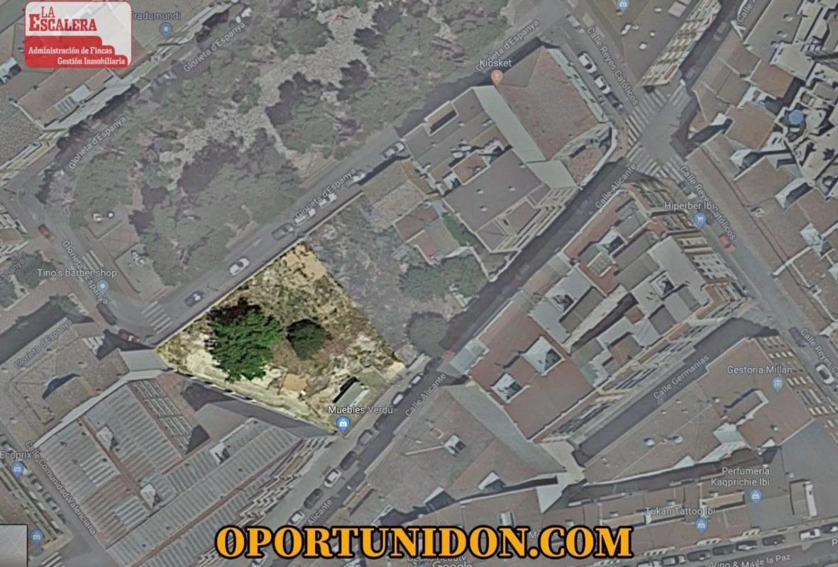 Ref. 518. Solar urbano de 231 m2 en centro de Ibi, Glorieta de España. Con dos proyectos que contemplan construir local en planta baja y 10 viviendas u 8 con 2 dúplex. Solar, suelo, parcel...