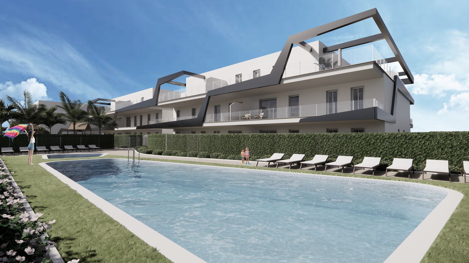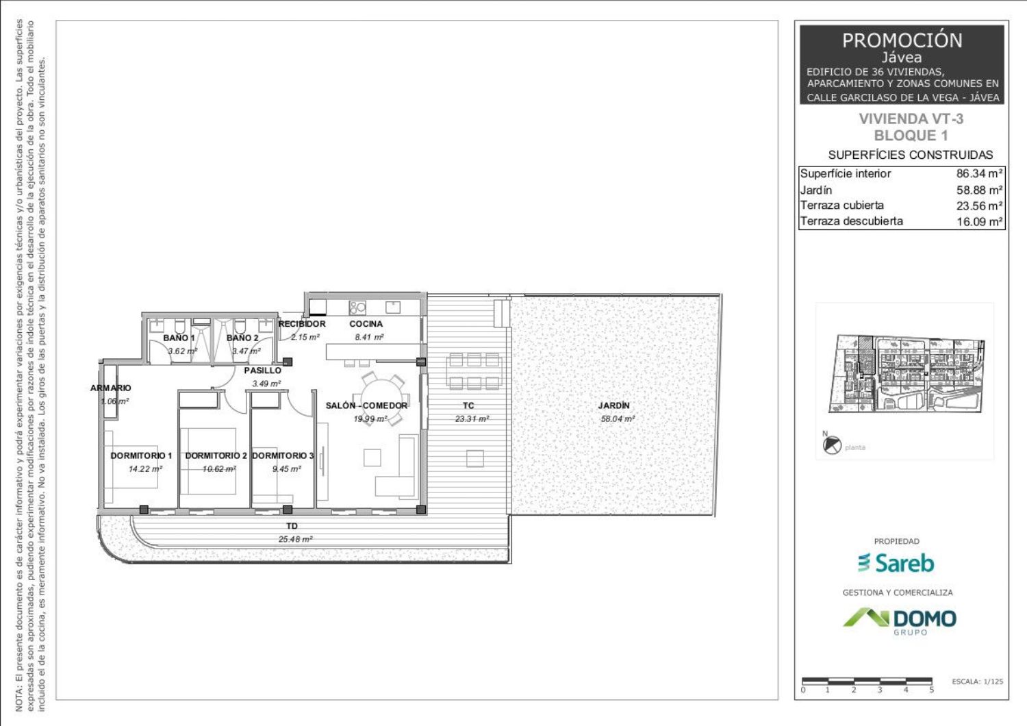 La promoción consta de tres bloques de edificio de viviendas, formado por Planta baja, primera y ático con un total de 36 viviendas, con:12 viviendas en planta baja de 3 dormitorios con jardín privado.8 viviendas en planta primera de 3 de dormitorios y 4 de 2 dormitorios.8 viviendas en planta ático de 3 dormitorios (2 de ellas dúplex) y 4 viviendas ático de 2 dormitorios.Asimismo, el proyecto dispone de una zona común preparada para disfrutar del clima y el descanso, con una piscina de diseño, una zona infantil y zonas de sombreo.Cuenta además con un parking en sótano con plazas vinculadas a cada vivienda, trasteros y parking para bicicletas. Las viviendas incorporan una plaza de garaje vinculada con un precio adicional de entre 8.000 € + IVA y también un trastero por un precio adicional de 3.000 € +IVA.Jávea se encuentra situado en la costa norte de Alicante, más concretamente en la comarca de la Marina Alta. Se trata de una localidad muy atractiva tanto para primera vivienda como para vivienda vacacional, dada su proximidad al mar.La promoción se encuentra a 1 km de la zona de centro de Jávea a pie, en una zona residencial en pleno auge con todo tipo de servicios cercanos, como superficies comerciales, tiendas de proximidad, superficies verdes. Encontramos un “Lidl” a 500 metros y un “Mercadona” a 600 m. La zona dispone de gran variedad de centros educativos, como por ejemplo a 350 m tenemos el CEIP Trenc d’Alba. El centro de salud se encuentra a 7 minutos en coche.La estación de autobuses se encuentra a 600 m a pie y la Playa de los Guijarros a 5 m en coche.Jávea se ha considerando el Hampton español. Reúne playa, paisaje, actividades deportivas, golf a 5 min en coche de la promoción, el restaurante BonAmb, con estrella Michelin, también a 5 min.Gran variedad de restauración y una de las zonas con mayor atractivo en calas y zonas de descanso, junto con la mejor oferta de ocio de toda la marina.Ponte en contacto con nosotros para ampliar información o reservar vivienda. También puedes pinchar en el enlace de nuestra página Web y dejarnos tus datos, para ponernos en contacto contigo.