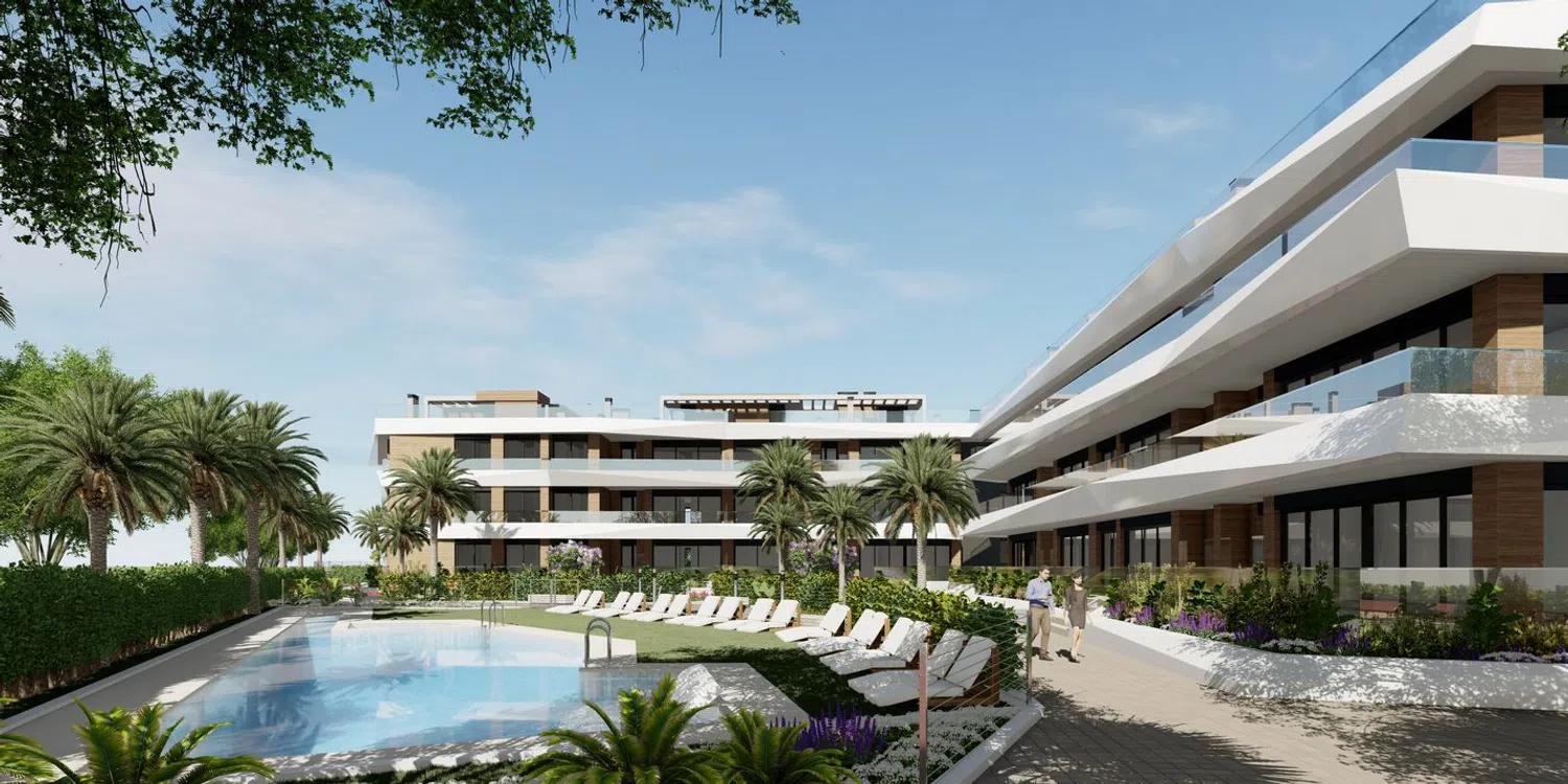 Discover an exclusive residential complex featuring 27 exquisite apartments, offering two and three-bedroom options. These homes are thoughtfully designed with units available on the ground floor, first floor, and penthouses equipped with solariums. Each residence boasts spacious terraces, a fully equipped open-concept kitchen, and modern amenities such as ducted air conditioning for both cold and hot climates, along with underfloor heating.