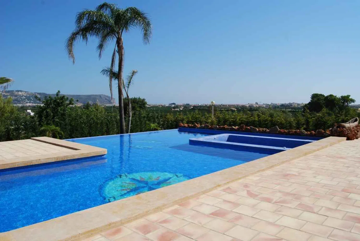 Additionally, the villa is designed for entertainment with a dedicated space for a cinema screen. Modern conveniences such as electric blinds, a sensory alarm system, air conditioning, and central heating ensure comfort and security.
