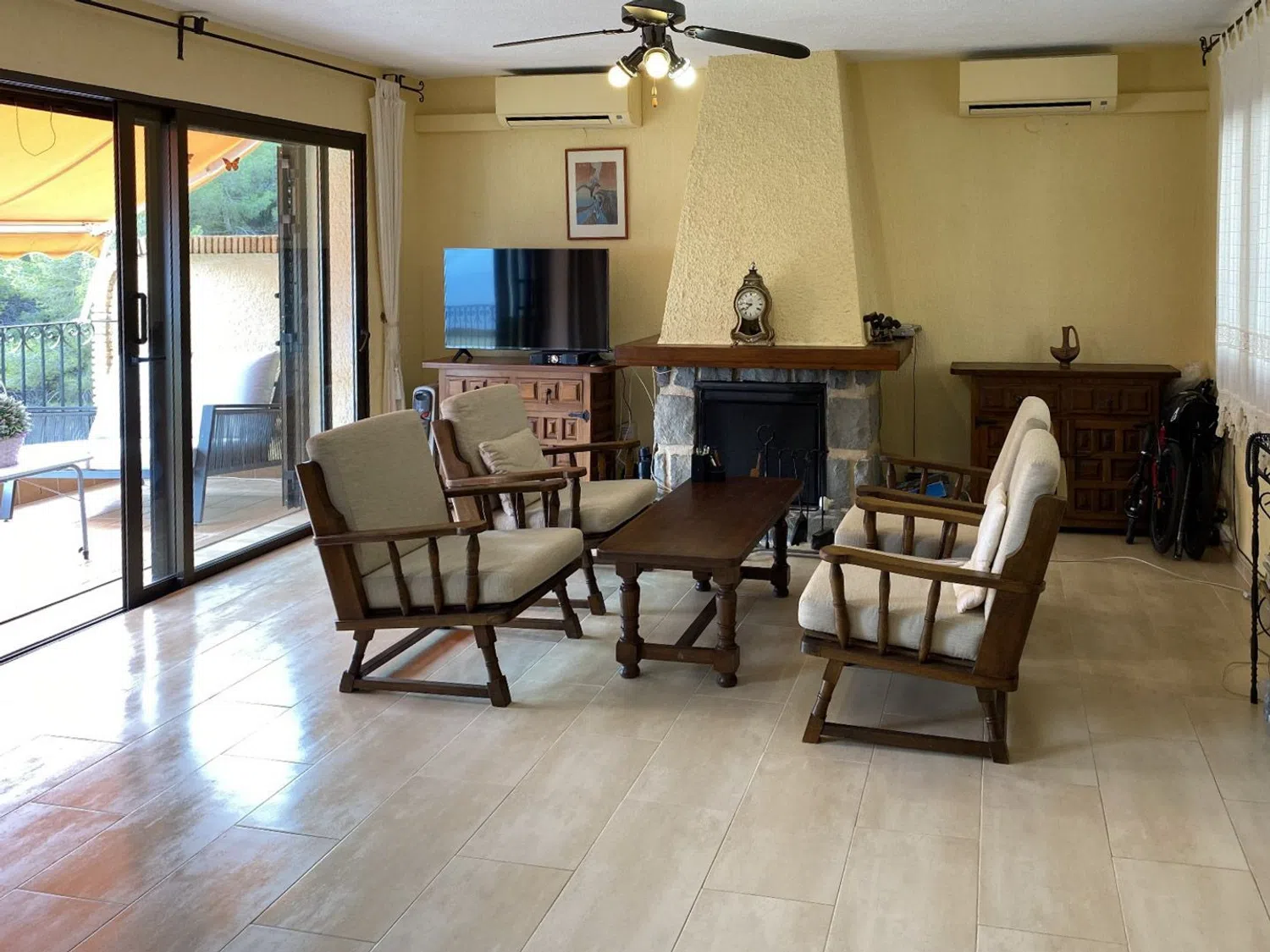 Decorated in a charming Castilian style, the home is fitted with air conditioning for both cooling and heating. The two terraces offer breathtaking views of the sea and the surrounding pine forest, perfect for relaxation. Residents can enjoy a community swimming pool and have the added benefit of a private enclosed garage.
