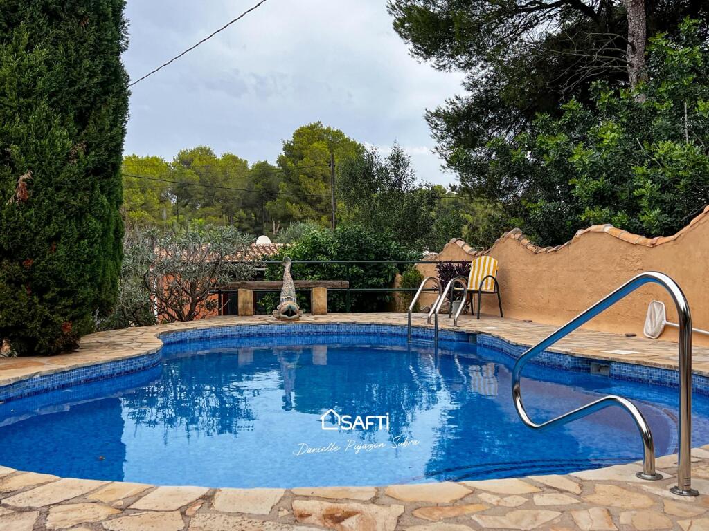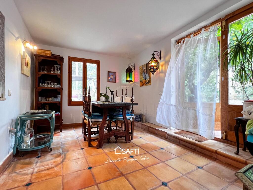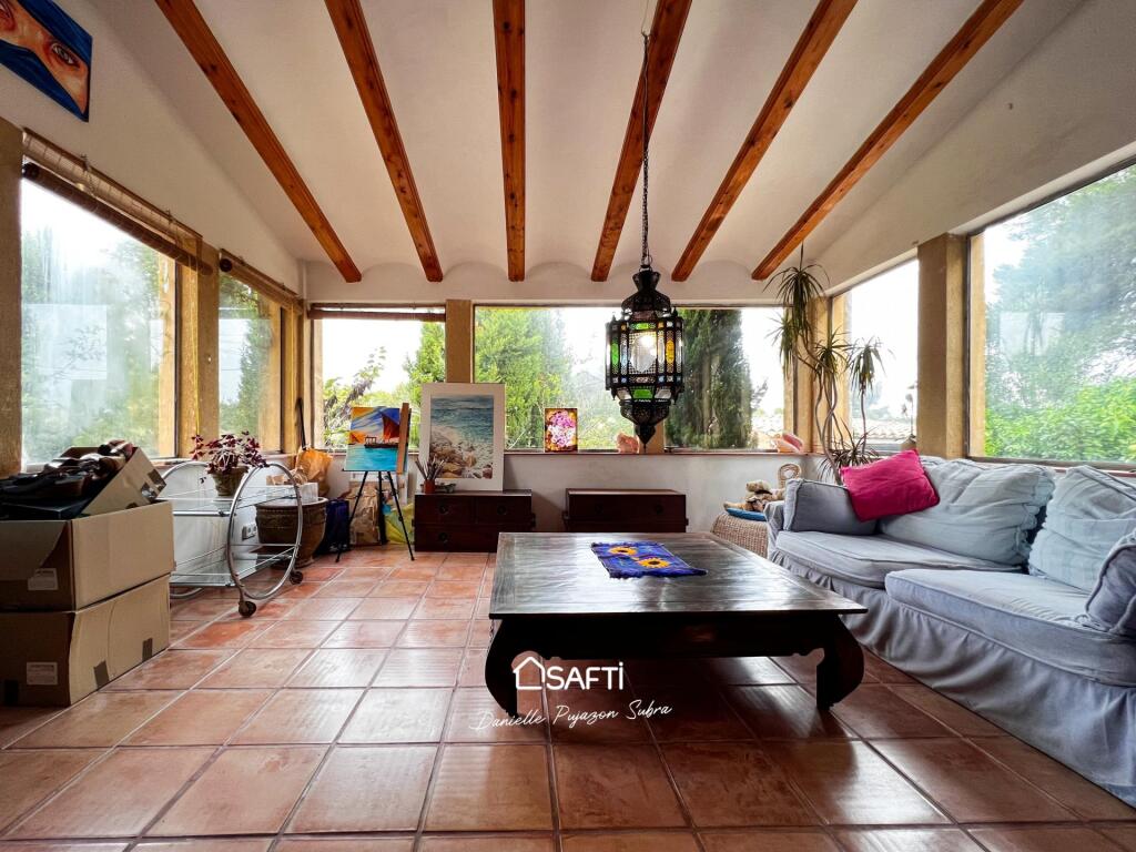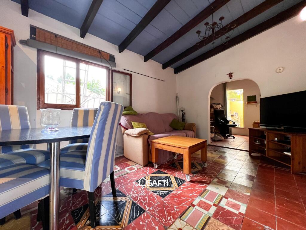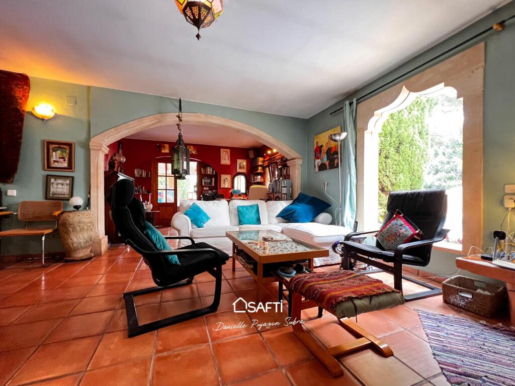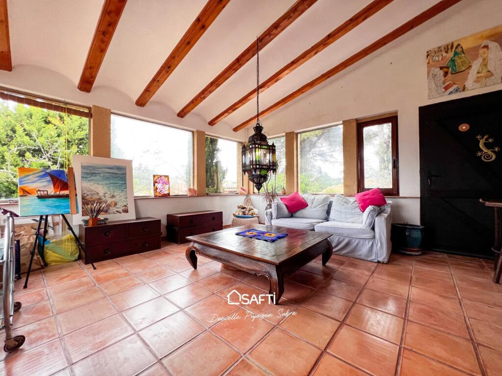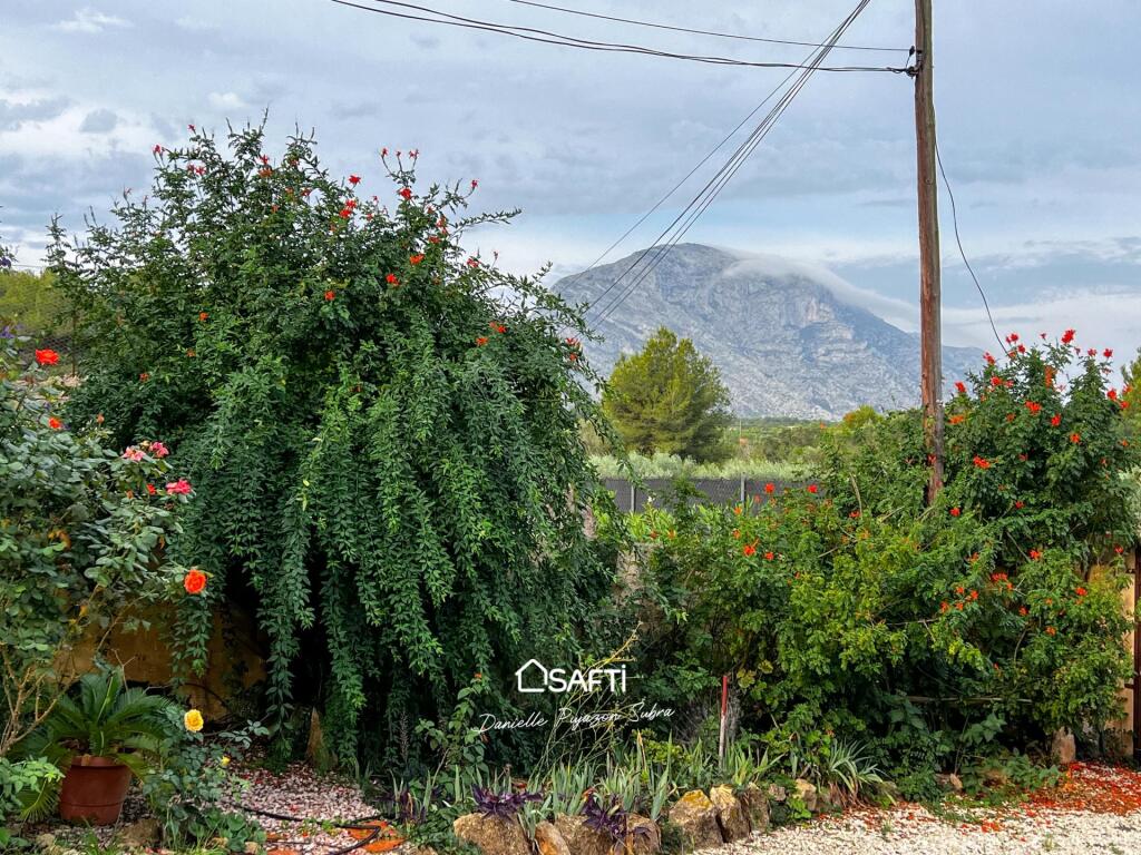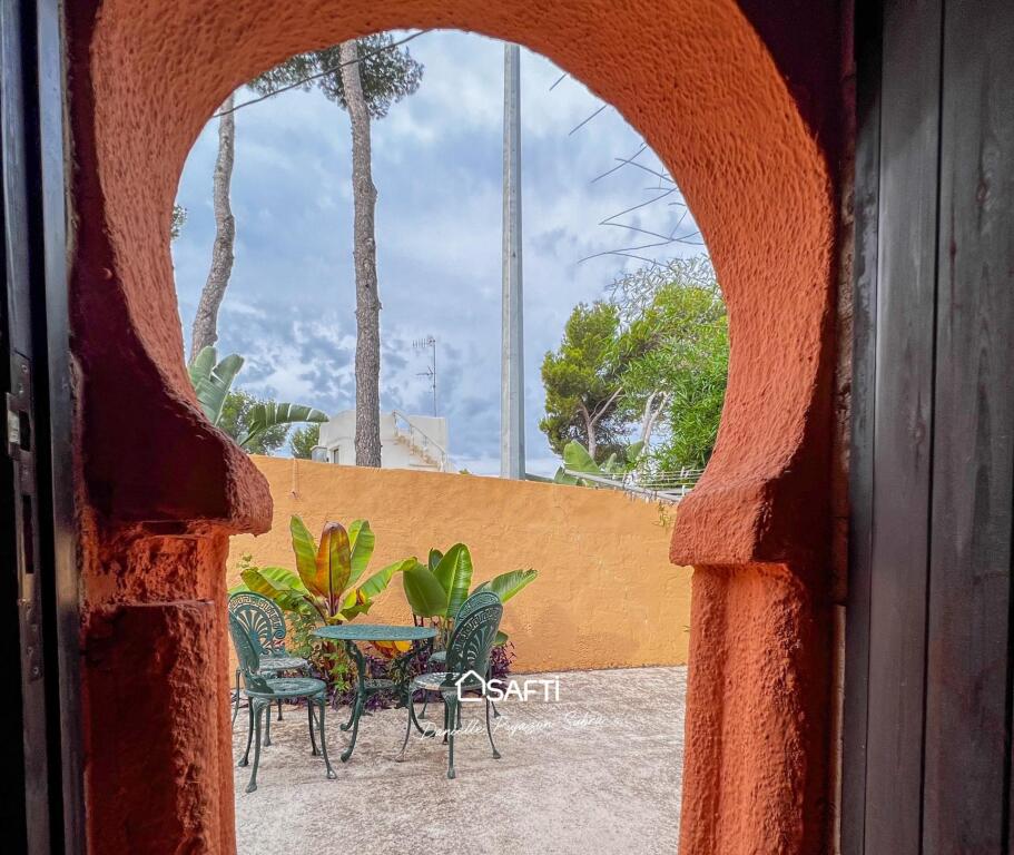 The residence offers two bedrooms, each with its own bathroom, along with a highly functional kitchen and a convenient utility room. An open layout seamlessly connects to a separate apartment featuring an additional bedroom and a rooftop terrace facing Montgó, perfect for savoring stunning sunsets.