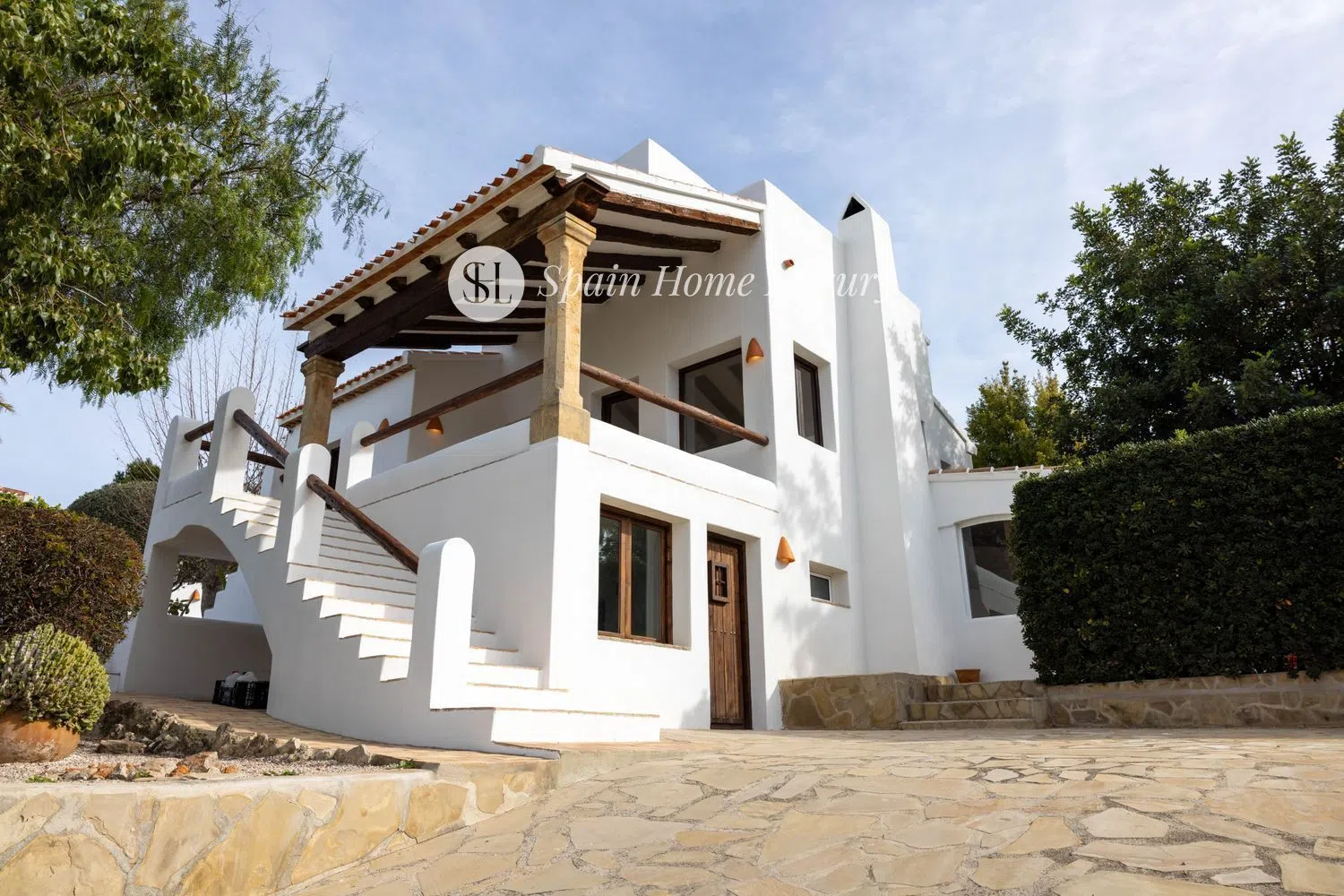 Exquisita villa de estilo ibicenco con vistas panorámicas y piscina privada Esta espectacular villa de estilo ibicenco combina a la perfección elegancia, confort y un diseño pensado para disfrutar al máximo del estilo de vida mediterráneo. Distribuida en dos niveles, la propiedad ofrece espacios amplios y luminosos que invitan al relax y la sofisticación. Al acceder a la villa, una pequeña escalera conduce a la naya, una encantadora terraza cubierta ideal para disfrutar de comidas al aire libre o simplemente relajarse mientras contemplas la serenidad del entorno. El interior se abre a una espaciosa zona de salón-comedor con una cocina de concepto abierto, donde destacan una elegante barra de madera y una acogedora chimenea tradicional. Junto a este espacio, una estancia versátil puede utilizarse como sala de TV, comedor adicional o incluso convertirse en un dormitorio extra según las necesidades. En este mismo nivel, dos amplias habitaciones con baño en suite garantizan privacidad y comodidad. En la planta superior, la suite principal se presenta como un oasis de luz y tranquilidad, ofreciendo vistas panorámicas del majestuoso valle y la icónica montaña del Montgó. Desde su exclusiva terraza privada, se puede disfrutar de impresionantes paisajes y momentos de absoluta desconexión. La villa también cuenta con un apartamento de invitados con entrada independiente, perfecto para recibir visitas con total privacidad. Además, una habitación adicional puede destinarse a oficina o estudio, adaptándose a cualquier necesidad. El exterior de la propiedad es un verdadero paraíso mediterráneo, con una nueva piscina de 8x4 metros, rodeada de terrazas soleadas y sombreadas, creando el escenario perfecto para disfrutar del clima durante todo el año. Los jardines, meticulosamente cuidados, realzan el encanto de la villa, mientras que su orientación suroeste asegura una excelente entrada de luz natural. Pensada para la máxima comodidad, la villa dispone de calefacción central por radiadores, aire acondicionado frío/calor y ventanas de doble acristalamiento, garantizando un ambiente acogedor en cualquier época del año. Además, ofrece estacionamiento privado para dos vehículos dentro de una parcela segura. Su calificación energética B refleja su eficiencia y sostenibilidad. Ubicada en una zona privilegiada, esta villa permite acceder fácilmente a todas las comodidades esenciales: restaurantes, farmacia y supermercado se encuentran a solo 1,5 km, mientras que la idílica playa de Cala Blanca está a la misma distancia. A solo 3 km, la vibrante playa del Arenal ofrece una amplia oferta de ocio y gastronomía. Ya sea como residencia principal o casa de vacaciones, esta villa representa una oportunidad única para disfrutar del auténtico lujo mediterráneo en un entorno inigualable.