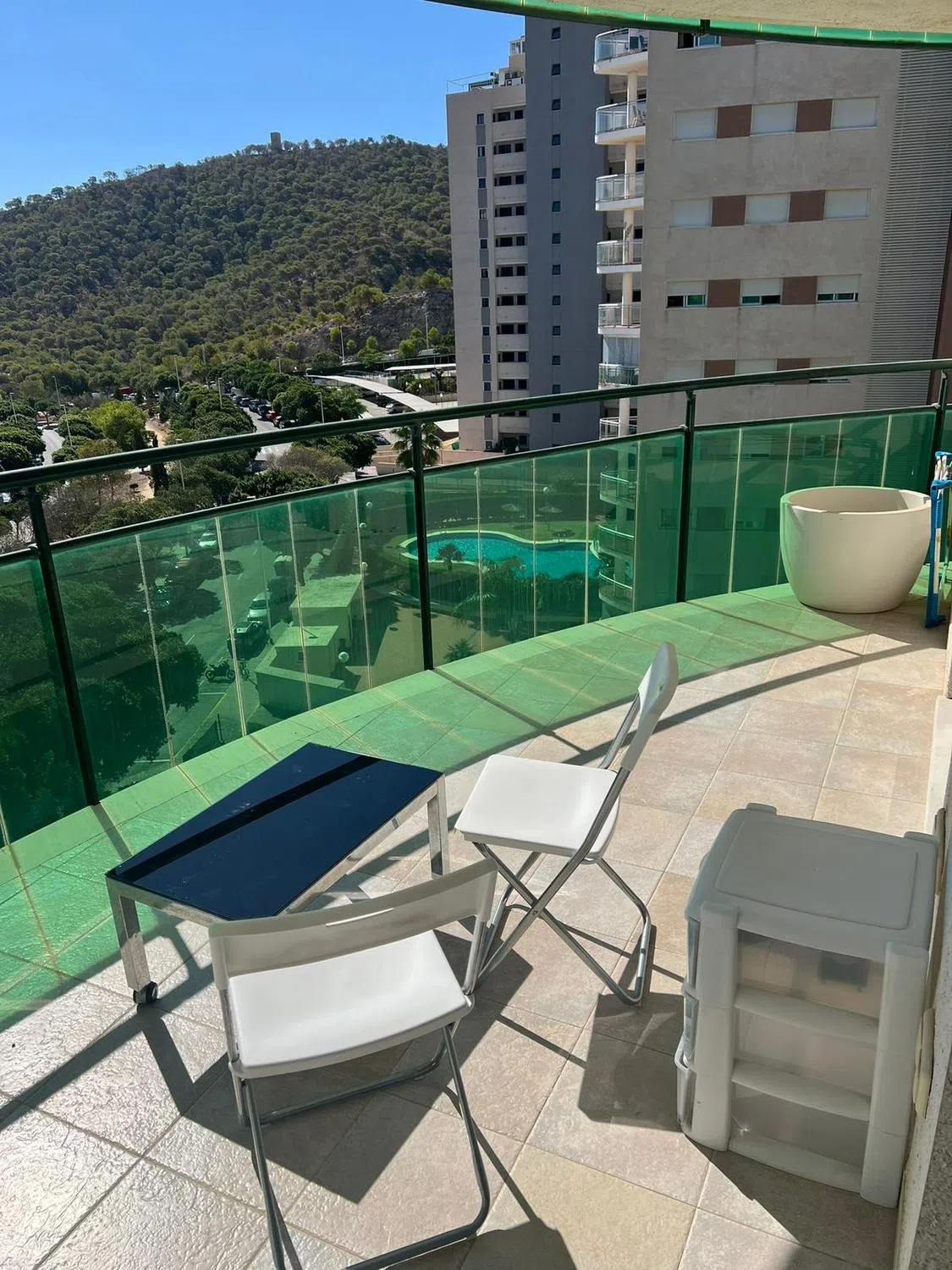 Vistas al mar y sol todo el día! Apartamento en La Cala orientación sur, con gran terraza, vistas a la avenida central y al mar. Residencial con piscinas, jardín, zona infantil y dos plazas de garaje incluidas! El piso está listo para entrar a vivir y ofrece una amplia terraza ideal para disfrutar del clima mediterráneo. Dispone de aire acondicionado, cocina independiente totalmente equipada con electrodomésticos integrados, dos dormitorios y dos baños completos. El residencial ofrece todas las comodidades: dos piscinas, gran jardín comunitario, zona infantil, barbacoa y pista de tenis, perfecto para disfrutar con familia o amigos. En el precio se incluyen dos plazas de garaje y un trastero! Una oportunidad única para vivir o pasar tus vacaciones junto al mar, en una zona tranquila y bien comunicada, con todos los servicios cerca.