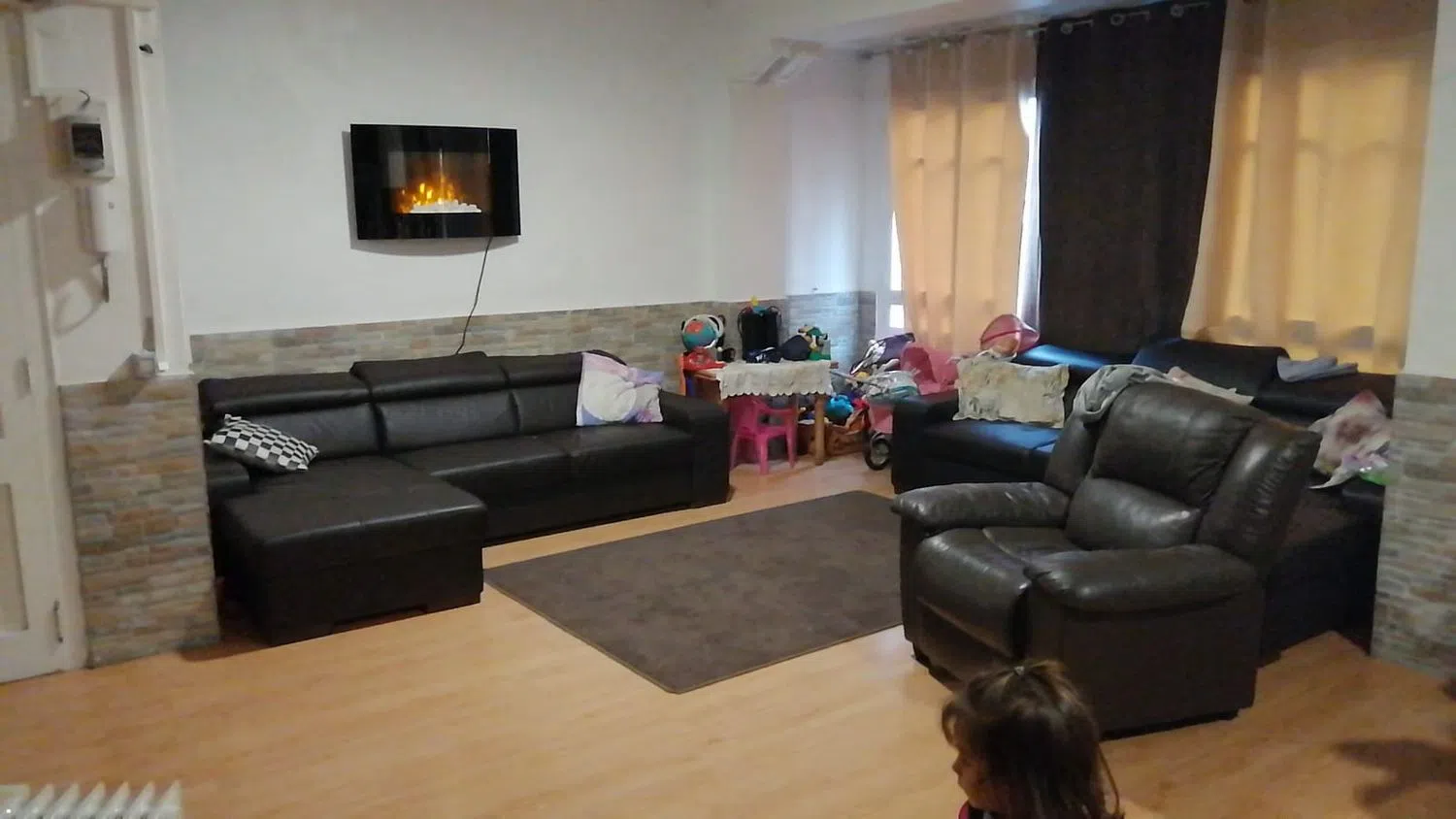 This fully renovated property features an open-plan living area of 36 square meters, complete with all necessary appliances and a television. It boasts modern LED lighting with remote control. All windows and the balcony are newly fitted with white aluminum frames and thermal-insulated glass. A new reinforced door provides additional security. The layout includes three bedrooms, and the building comprises only three floors, making it exceptionally central. Additional amenities include a storage room and a terrace. The property is equipped with heating and ceiling fans featuring LED lighting, without any real estate agency fees involved.