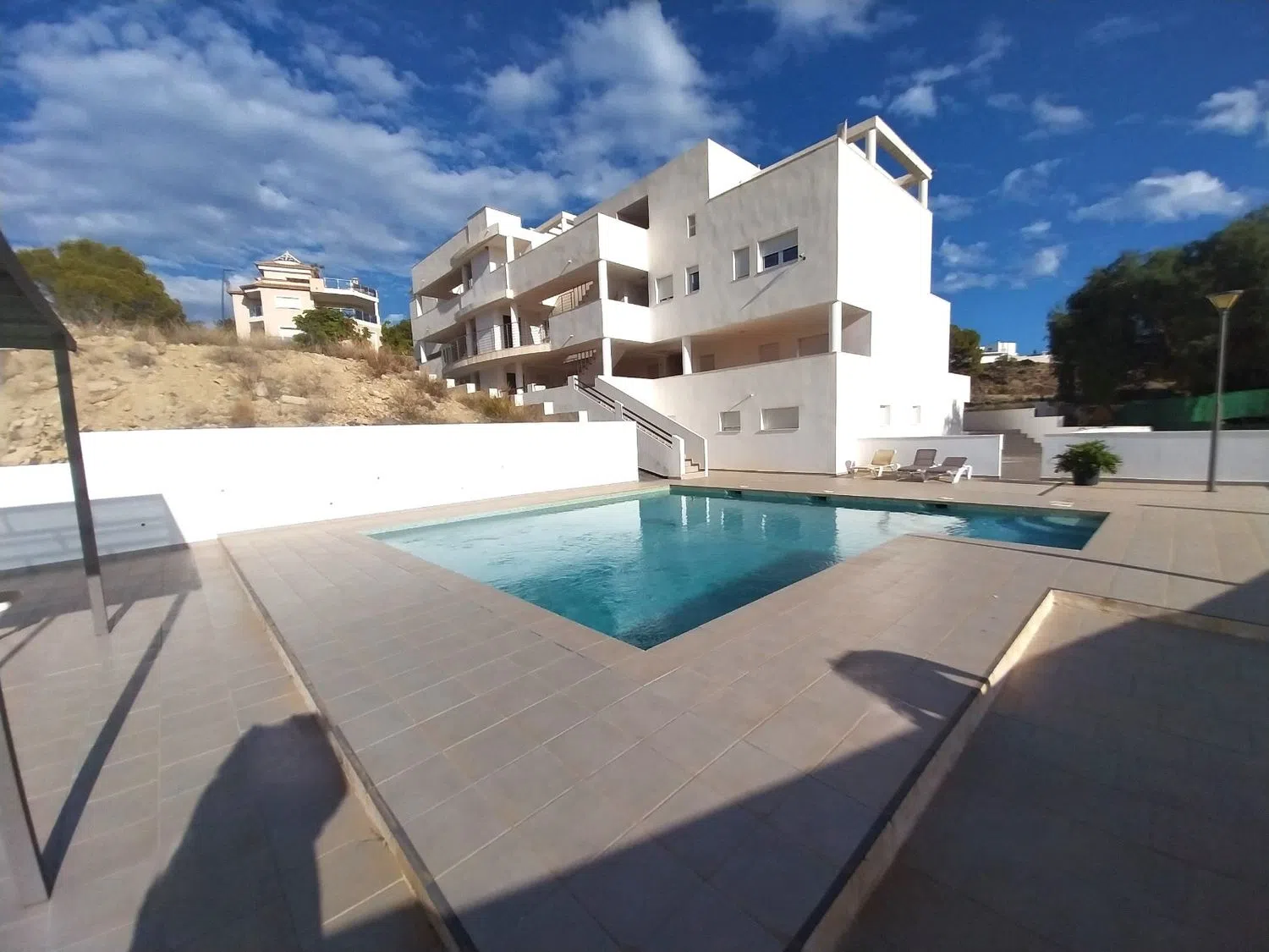 The apartment is equipped with both heating and cooling air conditioning, features elegant marble flooring, and includes double-glazed windows for enhanced insulation. Residents can also enjoy a beautifully maintained communal area complete with a swimming pool, and designated parking is available within the community.