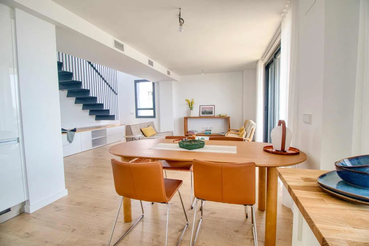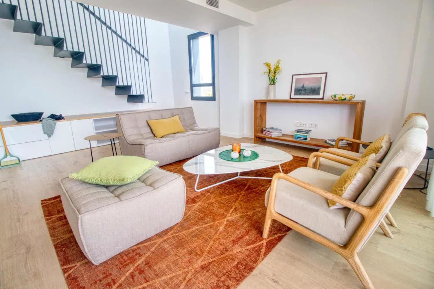 Throughout the property, you will find ducted reversible air conditioning and underfloor heating in the bathrooms, ensuring comfort in all seasons. Each bedroom includes built-in wardrobes, while additional storage space is creatively designed beneath the staircase leading to the upper floor.