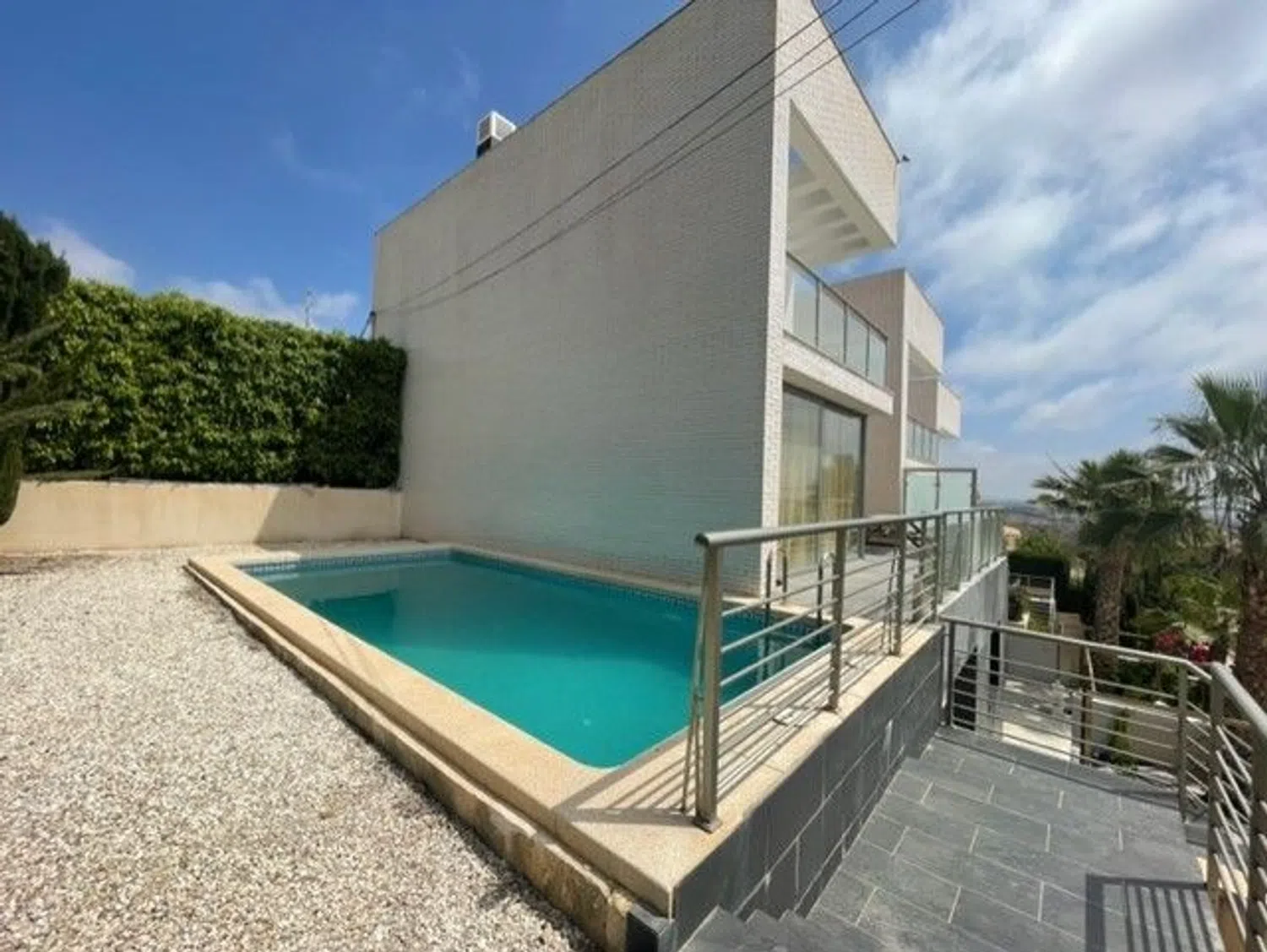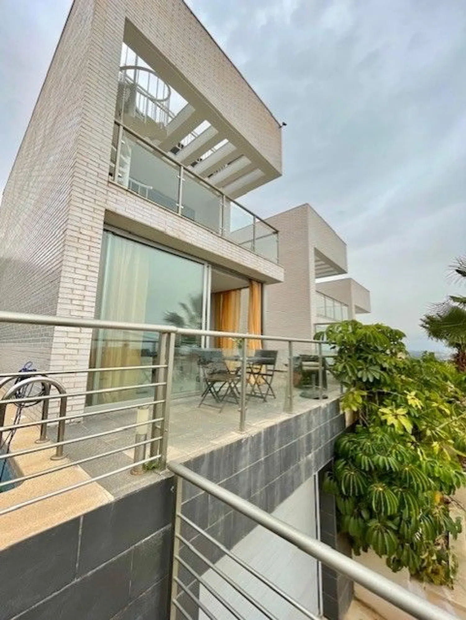 Modern kitchens equipped with appliances characterize these villas, each featuring bright living areas that open onto generous terraces. Both homes have two large terraces, perfect for outdoor enjoyment. Additional highlights include awnings, two private pools, marble flooring, and ceiling fans.