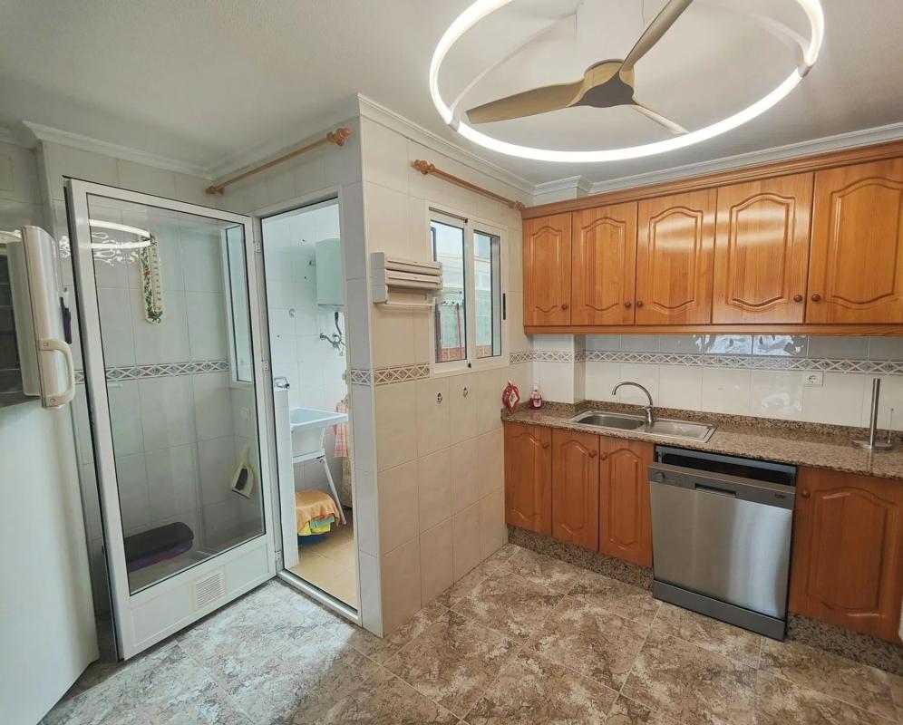 Les presentamos un apartamento en Los Montesinos muy completo y bien mantenido. Ubicado en un municipio tranquilo con todos los servicios y bien conectado. Consta de un dormitorio muy amplio con un baño grande en suite con ducha que da al exterior. Del dormitorio se tiene acceso al patio. Tiene tambien un armario grande empotrado. Más adelante en el pasillo hay otro dormitorio doble con ventana al exterior y su armario empotrado. Al final del pasillo tenemos el segundo baño completo con bañera. Y del otro lado está el tercer dormitorio con dos camas y armario empotrado. Siguiendo hasta la cocina tenemos un espacio muy práctico para el almacenaje. La cocina es abierta y espaciosa totalmente equipada y con salida al patio de buen tamaño. A continuación hay un salón comedor de muy buenas dimensiones y con mucha luz. Por último, salimos a una terraza en L con vistas a la calle y abiertas para disfrutar de comidas y atardaceres. Este piso tiene además un garaje cerrado de muy facil acceso y un trastero en el solarium. Es una vivienda para vivir todo el año con las comodidades que se requieren para ello y para disfrutar de este clima y entornos. Si desea una visita se la facilitamos al momento.
