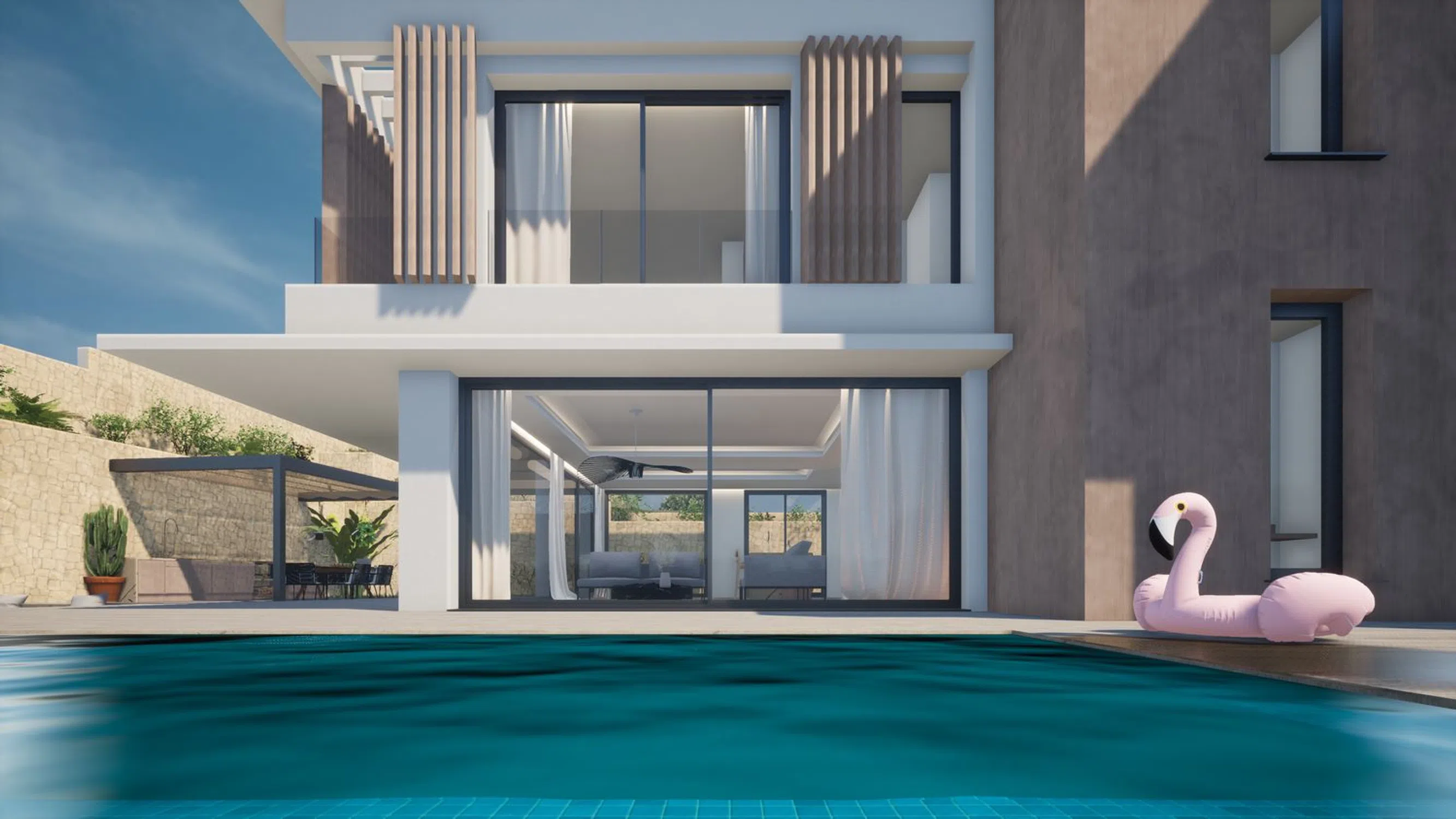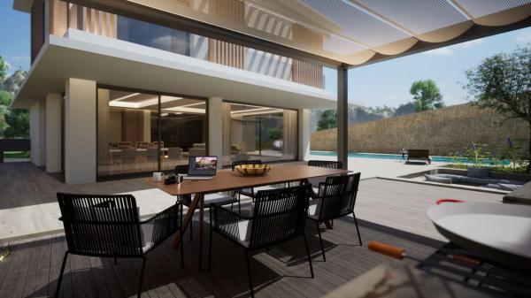 Moderna villa de nueva construcción de estilo mediterráneo en La Arnella, Moraira. Fundada en 1976, FONT MORAIRA SL se ha consolidado como una referencia de confianza en Moraira, reconocida por construir villas de la más alta calidad y por ofrecer un servicio excepcional a sus clientes. Siempre atenta a la innovación y a las nuevas tendencias, nuestra última promoción adopta un estilo mediterráneo moderno y limpio, donde la luz, el espacio y los materiales naturales se combinan en perfecta armonía. Esta villa única se encuentra en Arnella, una de las zonas residenciales más tranquilas, situada justo encima de la playa de El Portet en Moraira. Ubicada en una generosa parcela de 820 m², la propiedad combina elegancia y funcionalidad, con una distribución cuidadosamente diseñada que conecta de forma fluida los espacios interiores y exteriores. La entrada conduce a un amplio recibidor con guardarropa y aseo de cortesía, que da paso a un salón-comedor diáfano de 10 metros de largo. Grandes ventanales de suelo a techo inundan el espacio de luz natural y ofrecen acceso directo a la terraza. La cocina, hecha a medida, ha sido diseñada para encajar perfectamente en el espacio, y una moderna vinoteca aporta un toque distintivo al área de estar. Junto a la cocina, una despensa y zona de lavandería añaden funcionalidad adicional. En esta planta también se encuentra un dormitorio de invitados con baño en suite. En la planta superior, la suite principal dispone de baño privado y una terraza con vistas despejadas. Dos dormitorios más, ambos con su propio baño en suite, completan esta planta; uno de ellos también disfruta de su propia terraza privada. Los espacios exteriores están pensados para disfrutar del estilo de vida mediterráneo en su máxima expresión. La cocina se conecta directamente con una terraza con pérgola y zona de barbacoa, ideal para reuniones sociales. La piscina de 12 × 3 metros es el punto central del jardín, complementada con una zona chill-out con fogata, el lugar perfecto para las largas noches de verano. El diseño exterior combina texturas cálidas con rincones acogedores, manteniendo al mismo tiempo una estética limpia y atemporal. En el interior, cada estancia se terminará con materiales de la más alta calidad, y será diseñada individualmente para crear espacios con detalles únicos pero con una coherencia estilística general. El confort se ve reforzado gracias a la posibilidad de instalar un sistema domótico para gestionar la climatización, la calefacción, la iluminación y las cortinas. También se ha previsto la preinstalación de un sistema de seguridad de alta gama, con opción de cámaras de vigilancia y sensores de movimiento si se desea. ¿Está buscando una villa moderna de nueva construcción en Moraira? No dude en ponerse en contacto con nosotros.