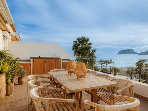 Ático con vistas al mar en Moraira Ático dúplex ultra-exclusivo en primera línea de mar, en el corazón de Moraira Una oportunidad verdaderamente excepcional para adquirir un ático dúplex en primera línea de mar en la pintoresca y codiciada ciudad de Moraira. Situada directamente sobre el Mediterráneo, esta magnífica residencia ofrece impresionantes vistas panorámicas de la costa, las doradas arenas de la playa de Moraira y el icónico Peñón de Ifach en Calpe. Diseñado para capturar la esencia de la elegancia mediterránea contemporánea, el ático ha sido meticulosamente renovado, combinando a la perfección tonos y texturas naturales que reflejan los fascinantes colores del cielo en constante cambio, especialmente durante las espectaculares puestas de sol orientadas al suroeste. El acceso es sencillo, ya sea desde la calle o a través del aparcamiento subterráneo seguro, donde un ascensor le lleva directamente a su oasis privado. Interiores refinados y diseño excepcional En el interior, la amplia sala de estar y comedor de planta abierta está bañada por la luz natural, fluyendo sin esfuerzo hacia una impresionante terraza en esquina. Este envidiable espacio exterior cuenta con una cocina de verano, elegantes zonas de estar y comedor, un espacio de almacenamiento dedicado y elegantes barandillas de cristal, que garantizan unas vistas ininterrumpidas al mar. Los tres dormitorios dobles, bellamente amueblados, han sido diseñados con una atención impecable a los detalles, optimizando el espacio y la comodidad. Dos cuentan con elegantes baños en suite, mientras que el tercero dispone de un sofisticado baño de invitados. Cada elemento de la casa ha sido cuidadosamente seleccionado para crear un santuario de lujo y relajación. Ubicación y estilo de vida inigualables Situado a pocos pasos de los mejores servicios de Moraira, este ático ofrece acceso inmediato a: Restaurantes gourmet y boutiques de alta gama El mejor puerto deportivo de la Costa Blanca Playas de arena prístina y calas escondidas Moraira es sinónimo de exclusividad, reconocida por su ambiente sofisticado, sus opciones de ocio de clase mundial y su belleza natural virgen. Con sus calles llenas de boutiques, restaurantes con estrellas Michelin y un escenario náutico de clase mundial, este encantador enclave costero ofrece lo último en vida mediterránea refinada. Ya sea como residencia principal de prestigio o como escapada vacacional de élite, este ático en primera línea de mar es una oferta rara y excepcional en uno de los lugares más deseados de la Costa Blanca. ¡Contáctenos hoy mismo para obtener más información sobre este magnífico ático con vistas al mar en Moraira o para concertar una visita!