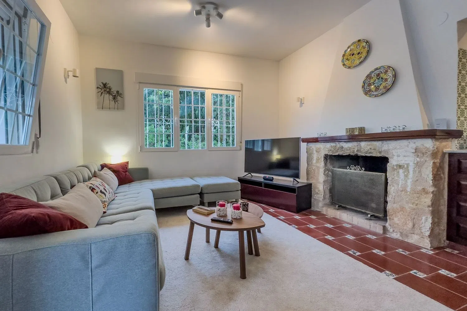 The location is unique, enveloped by nature and green spaces that ensure complete privacy throughout the property. Upon entering, you are welcomed by a spacious and bright living area featuring a cozy fireplace, creating an inviting atmosphere perfect for relaxation. This space seamlessly connects to a functional open-plan kitchen, equipped with modern cooking appliances, making it ideal for culinary enthusiasts.