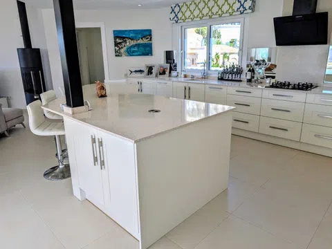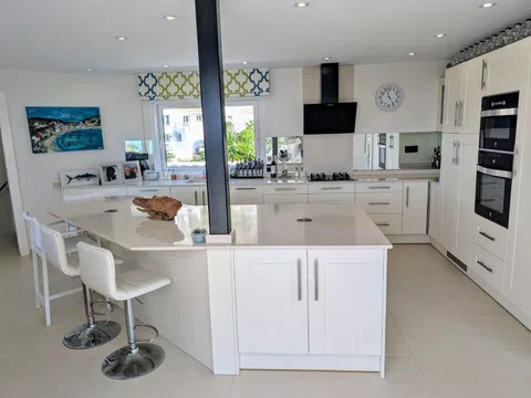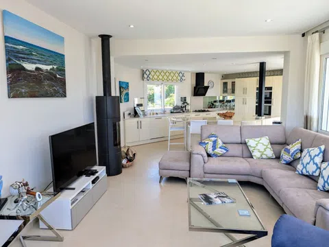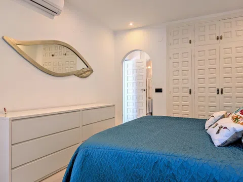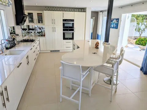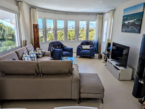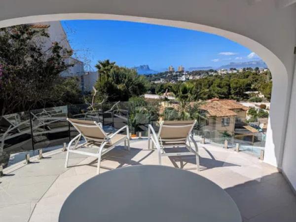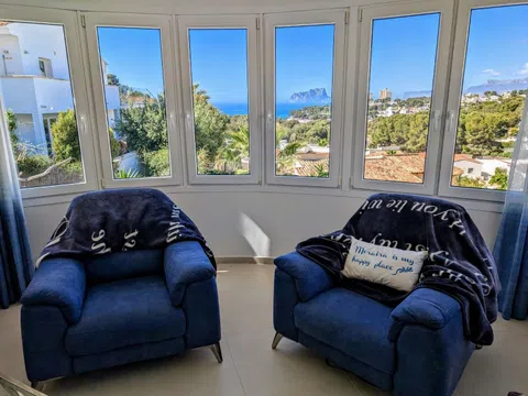 Esta villa, con maravillosas vistas al mar, al Peñón de Ifach y a la Sierra Bernia, está situada en una zona tranquila de El Portet, junto a una zona verde. La villa se distribuye en dos plantas y se encuentra en una parcela inclinada con acceso desde dos calles residenciales tranquilas con aparcamiento fuera de la carretera disponible en ambas. Desde el nivel superior se accede a la propiedad bajando unos escalones a través de un jardín mediterráneo y luego a través de un arco con puerta. La entrada a la primera planta de la villa se realiza desde una terraza circular abierta con una naya abierta, un lugar ideal para relajarse, cenar al aire libre y disfrutar de las vistas y las puestas de sol. Se accede a la villa a través de puertas plegables que dan a una amplia zona de salón/comedor/cocina llena de luz gracias a las ventanas con vistas al mar. La cocina de lujo es magnífica, con unidades de estilo Shaker crema y encimeras de Silestone de color beige claro, incluyendo una gran isla con espacio para cuatro taburetes. Los electrodomésticos incluyen un gran frigorífico integrado, horno, microondas, placa de gas, campana moderna, lavavajillas integrado y una vinoteca. La sala de estar cuenta con una moderna estufa de leña. Bajando por un pequeño pasillo a la derecha, encontrará el dormitorio principal con armarios y un baño en suite con ducha y un mueble de doble lavabo; al final del pasillo hay un amplio lavadero con puertas al jardín delantero y trasero de la villa. A la izquierda de la sala de estar se accede a una escalera; en la parte superior de la escalera hay un gran armario. La planta baja consta de un dormitorio doble con armarios que también se ha utilizado como oficina, un baño compartido con mueble de lavabo y bañera con ducha y un dormitorio doble grande con armarios y puertas acristaladas que dan a una naya abierta y una gran terraza. Aquí encontrará dos terrazas, una superior donde podrá sentarse a la sombra y una terraza inferior más grande para los amantes del sol. Desde la naya abierta se accede a un gran almacén en la parte inferior, perfecto para guardar los muebles de jardín y la barbacoa cuando no esté. Bajando una escalera desde la terraza se llega a una terraza de piscina muy grande con una piscina de 8 x 5 m y una ducha solar. Desde aquí hay una puerta que conduce a los escalones que bajan a la zona de aparcamiento en el acceso inferior y al jardín trasero, que se ha dejado en estado natural. - Puntos clave Construida: 1989 - Los propietarios actuales la han reformado desde que compraron la propiedad en 2014 - Calefacción central de gas - Aire acondicionado frío/calor - Ventanas de doble acristalamiento con persianas y mosquiteras - Estufa de leña - Cocina magnífica totalmente equipada - Iluminación empotrada en la primera planta - Iluminación exterior - Cuatro terrazas abiertas - Dos nayas abiertas - Barandillas de cristal en las terrazas - Barandillas de acero inoxidable en las escaleras - Impuestos anuales 937,34 € (Impuesto sobre bienes inmuebles e impuesto sobre residuos) - ¡Esta villa no se debe perder! - Distancias Playa de El Portet 900 m - Centro de Moraira 2,1 km por la carretera de la costa - Campo de golf 5,5 km - Acceso a la autopista en Benissa 12 km.
