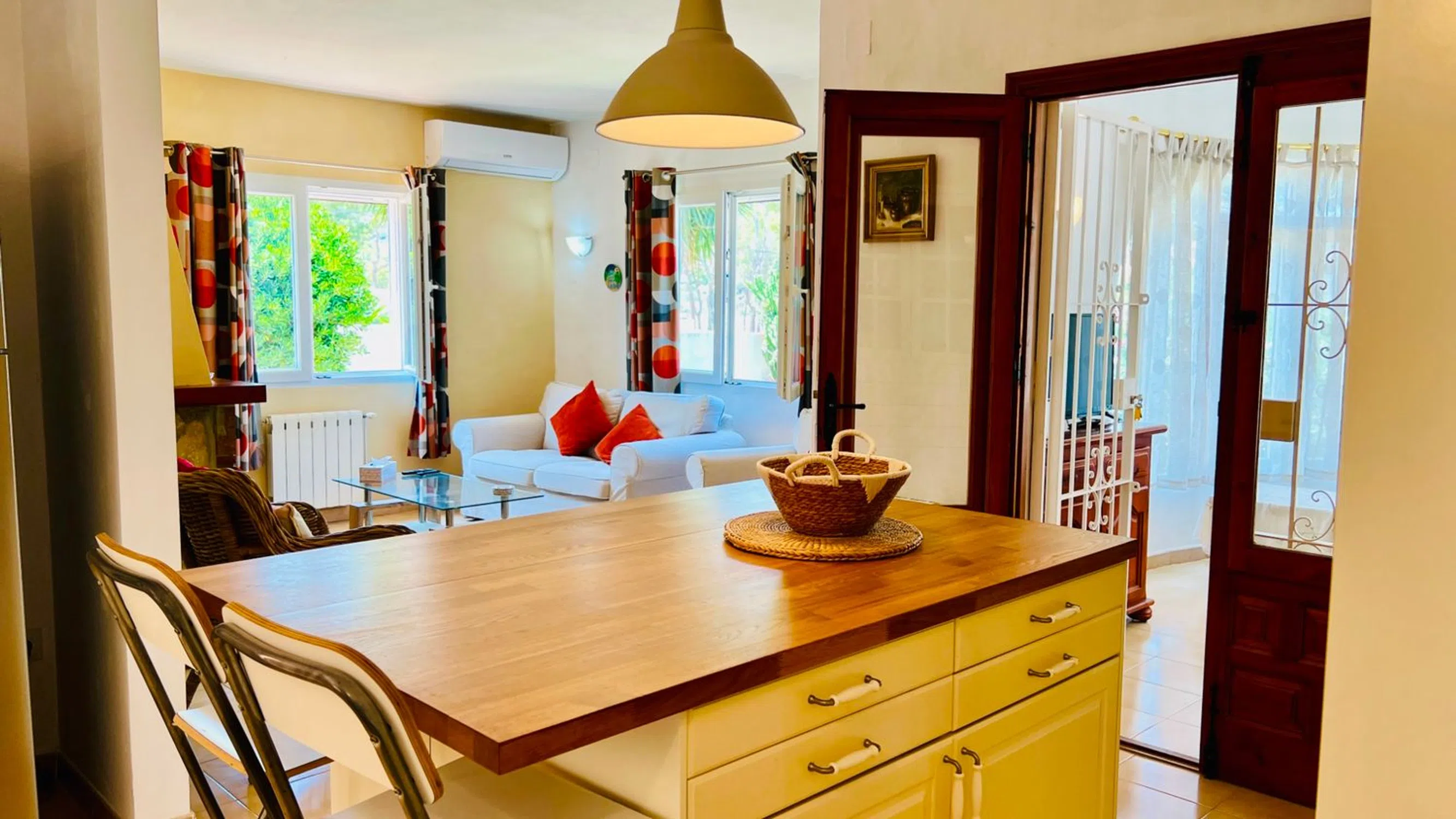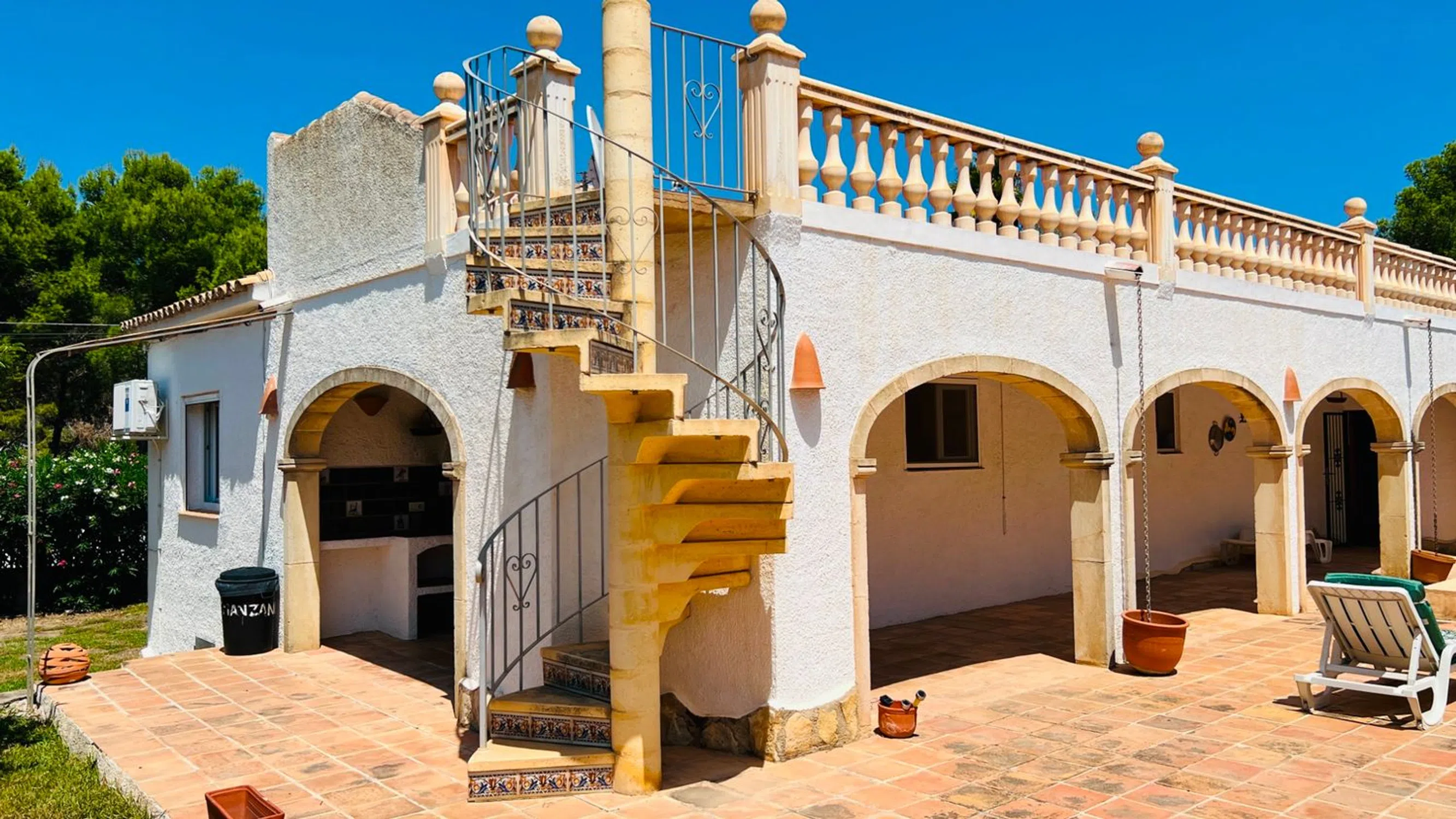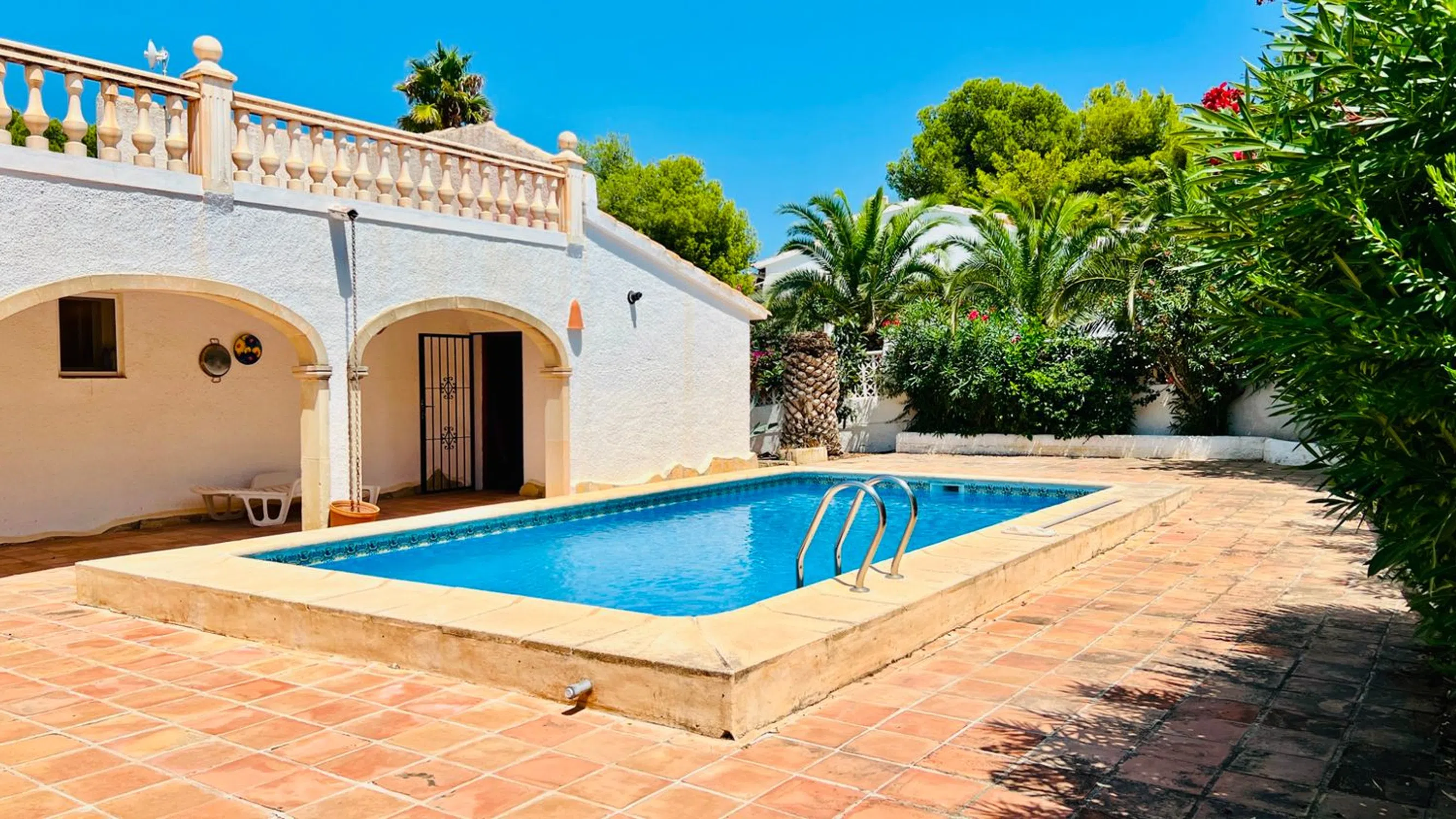 ¿Busca una casa de vacaciones cerca de Moraira? Esta villa de 2 dormitorios en Pinar del Advocat podría ser la ideal. Ubicada en una parcela llana con piscina privada, cocina y baños renovados, está cerca de la playa y del pueblo. Con piscina privada, solárium y amplios jardines con amplio espacio para relajarse o entretenerse. También existe la opción de crear un tercer dormitorio, ideal para recibir visitas de familiares o invitados. Aunque el interior está listo para entrar a vivir, hay mucho potencial para actualizar y mejorar el exterior y los jardines. A solo 4 minutos en coche de la playa y del centro de Moraira, esta propiedad es ideal como vivienda vacacional o permanente, o como inversión para alquiler en la Costa Blanca. ALOJAMIENTO: Salón/comedor/cocina de planta abierta, porche (14m2), pasillo, dormitorio principal con baño en suite, dormitorio doble, baño familiar. EXTERIOR: Entrada para vehículos, Trastero (19,50m2), Piscina rectangular, Terraza junto a la piscina, Barbacoa, Ducha de piscina, Cuarto de bombas de piscina, Jardines y Solárium. TODOS LOS DETALLES Encantadora villa en venta en Pinar del Advocat, Moraira. Esta encantadora villa de dos dormitorios, de estilo español, se encuentra en una amplia parcela llana en una tranquila calle sin salida, a solo 4 minutos en coche de las playas y del centro de Moraira. Distribuida en una sola planta, la villa ofrece comodidad y practicidad, ideal tanto para vivir todo el año como para disfrutar de unas relajantes vacaciones. Con acceso a través de una puerta manual, el amplio camino de entrada está enmarcado por jardines consolidados e incluye una cochera con amplio espacio para aparcar. Unos pocos escalones conducen a un acogedor porche, uno de los dos accesos a la villa. Siguiendo el sendero que rodea el jardín a la izquierda, se llega a la zona de la piscina y la terraza. Aquí, un pasadizo cubierto con arcos tradicionales añade un encantador toque de estilo finca. A la derecha se encuentra un antiguo garaje, ahora un amplio trastero y lavadero, y justo al lado se encuentra un comedor exterior con vigas a la sombra y barbacoa de obra, perfecto para disfrutar de comidas al aire libre. El exterior necesita una reforma y sería un buen proyecto que añadiría valor a la propiedad. La luminosa y modernizada cocina se integra con el salón-comedor de planta abierta. La cocina, renovada en 2017, cuenta con muebles blancos con elegantes encimeras de madera, espacio de almacenamiento extraíble y cajones giratorios, además de una isla central que ofrece espacio adicional para la preparación de alimentos, el almacenamiento y las comidas informales en familia. Los electrodomésticos incluyen una placa de gas con extractor, un horno eléctrico, un lavavajillas y un frigorífico-congelador grande. El salón es luminoso y acogedor, con una chimenea de leña, ideal para las noches más frescas, y también cuenta con calefacción central de gas y aire acondicionado para mayor comodidad durante todo el año. Las tradicionales puertas dobles con rejas dan acceso a un porche circular cerrado (14 m²), un espacio versátil que podría usarse como comedor, una segunda sala de estar o incluso como dormitorio de invitados para familiares y amigos que vienen de visita. Las ventanas de doble acristalamiento permiten la entrada de la brisa, lo que lo convierte en un lugar ideal para relajarse. Desde la sala de estar principal, un arco conduce al pasillo. A la derecha se encuentra un moderno baño familiar con ducha esquinera, un mueble de tocador contemporáneo con lavabo, toallero calefactado e inodoro. Más adelante, a la izquierda, se encuentra un dormitorio doble y, al final del pasillo, el dormitorio principal con baño en suite y una amplia ducha a ras de suelo. Ambos dormitorios cuentan con armarios empotrados y ventiladores de techo. La villa conserva encantadores detalles tradicionales, como puertas castellanas de madera y chimenea, mient