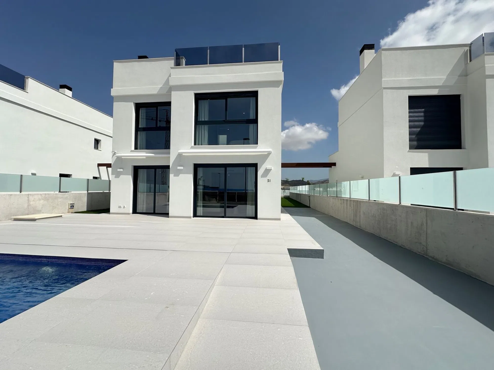 Exclusivas villas modernas independientes con vistas panorámicas al mar de El Campello / San Juan Playa. Descubre el privilegio de vivir en una villa de lujo ubicada en un enclave único de la Costa Blanca. Estas viviendas construidas sobre parcelas desde 405m2 hasta 767m2, ofrecen un diseño contemporaneo con una superfice construida de 243m2 (118m2 útiles), distribuidos en 3 dormitorios con armarios empotrados, 3 baños completos con mamparas incluidas y un amplio salón comedor con cocina integrada totalmente equipada con electrodomésticos de alta gama. Disfruta de sus espacios exteriores, concebidos para el relax y el entretenimiento, con amplias terrazas, una piscina privada y una zona de solarium donde contemplar unas maravillosas vistas panorámicas del mar de El Campello y San Juan. Incluye Electrodomésticos, preinstalación de aire acondicinado, preinstalacion de sistema domótica, piscina privada, plaza de aparcamiento en parcela. Situada entre Mutxamel y El Campello a escasos 10 minutos de las playas de San Juan y El Campello. A 1 minutos del Golf Bonalba con su centro comercial con restaurante, supermercado, cafetería y el hotel de 4* Bonalba con Spa, la casa Club con restaurante y zona de piscina. Excelentes conexiones con la autovía AP7, con acceso rápido a Alicante, Benidorm, Calpe y Denia.