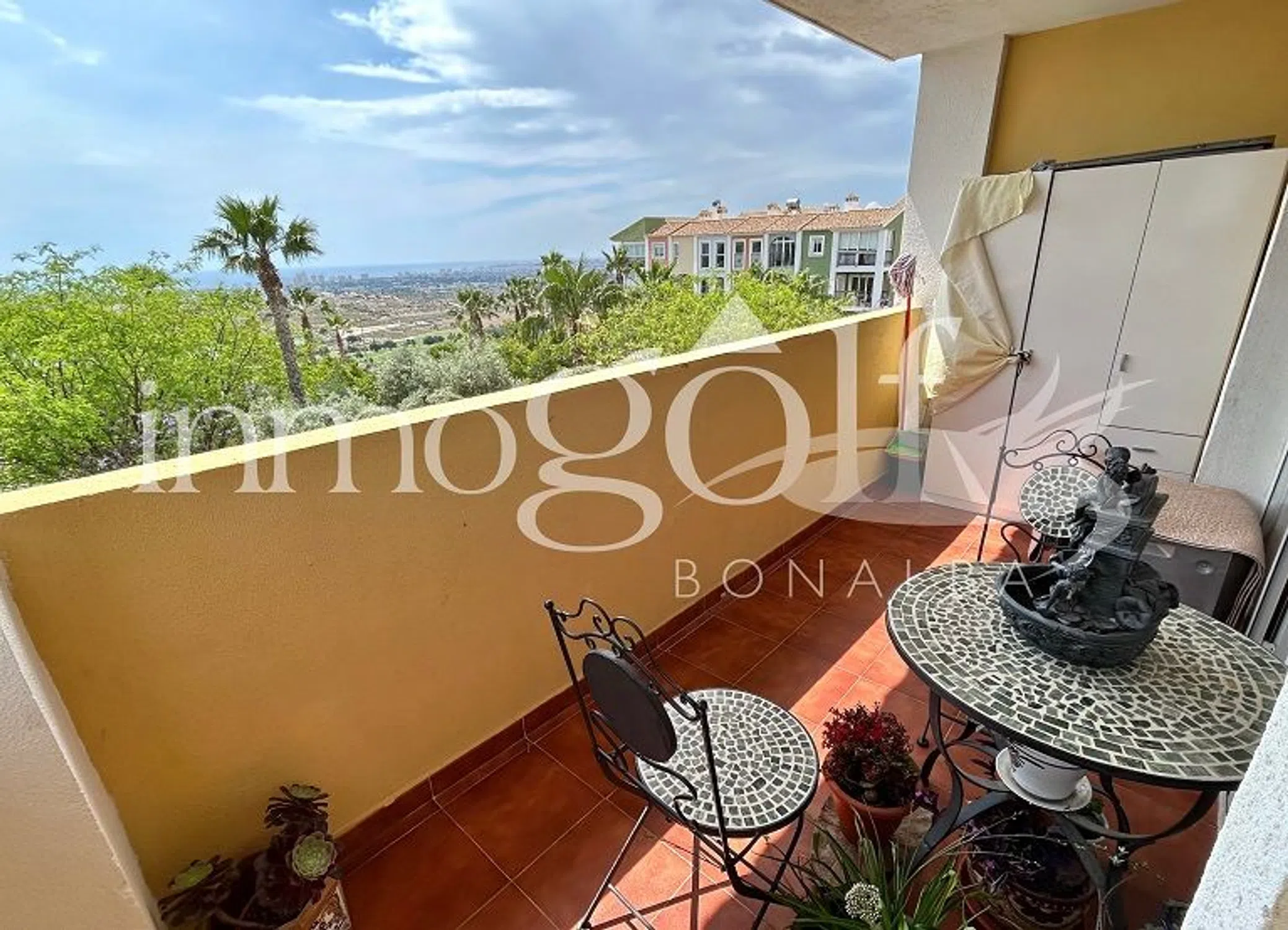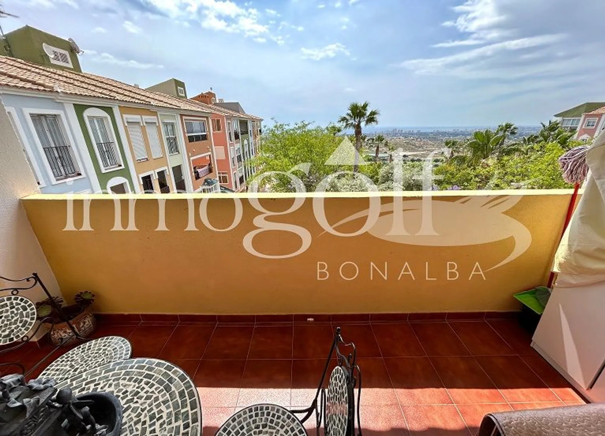 Apartamento en ultima planta y esquina en Las Torres de Bonalba. Vivienda de 1 dormitorio doble con armario. Baño completo con ventana. Cocina abierta al salon comedor con salida a gran terraza con bonitas vistas a la costa alicantina. La urbanización dispone de 2 piscinas comunitarias y pista de tenis para su uso. Se ubican en la misma urbanizacion una farmacia y un consultorio medico.