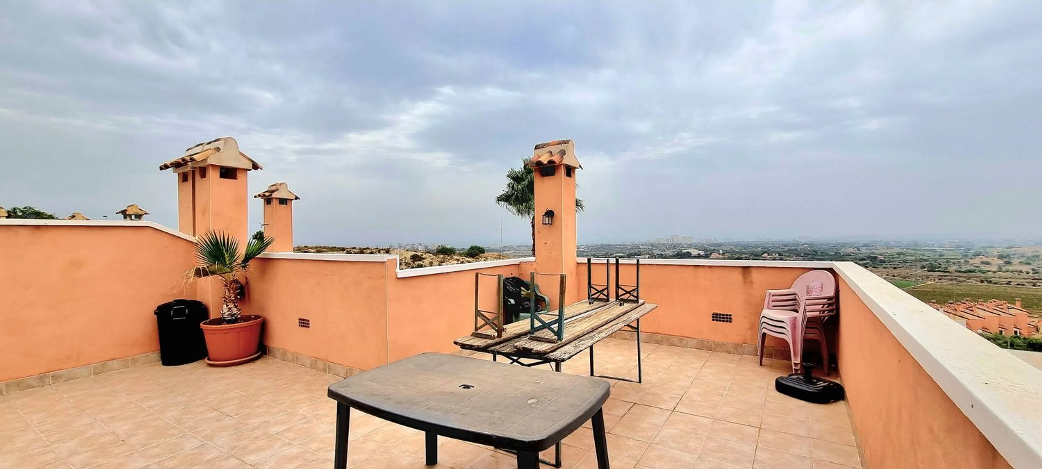 Increíble oportunidad de adquirir una espaciosa Casa Adosada de 106 m2 con vistas despejadas al mar y la montaña. Esta impresionante propiedad cuenta con 5 habitaciones y 2 baños, lo que la convierte en un hogar ideal para toda la familia. Disfruta del solárium y dos amplias terrazas que te brindarán un espacio perfecto para relajarte y disfrutar del clima mediterráneo. Además, podrás refrescarte en la piscina comunitaria en los cálidos días de verano. Si eres amante del golf, esta casa está cerca de un campo de golf, lo que te permitirá disfrutar de tu deporte favorito siempre que desees. Ubicada a tan solo 5 minutos de El Campello y la playa de San Juan, tendrás la oportunidad de disfrutar de la tranquilidad de tu hogar y, al mismo tiempo, estar cerca de la animada vida costera. No dejes pasar esta oportunidad única de tener tu propio paraíso con vistas al mar y la montaña. ¡Contáctanos para concertar una visita y hacer realidad tu sueño de tener una casa en el encantador entorno de Alicante!