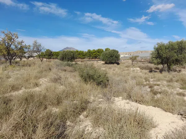 Se vende terreno de 10.000 m2 rústico junto al aeródromo de Muchamiel. PUEDES CONSTRUIR CASA DE 200M2 Tiene agua de regadío y acceso a la carretera. Diversos arboles plantados, como almendros y olivos. Junto a plantaciones de invernaderos. Si quiere un terreno para disfrutar del campo venga a verlo ya. Le esperamos.