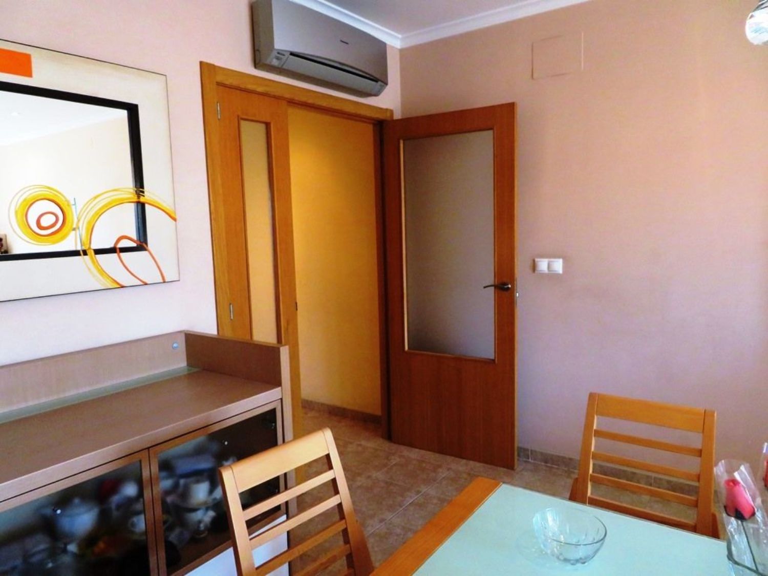 This beautifully spacious apartment features three bedrooms, two bathrooms, a garage, and a storage room, all in immaculate condition. Spanning 122 m², the apartment is situated on the first floor of a contemporary building equipped with an elevator, completed in 2006. It boasts a lovely living-dining area with air conditioning and access to a south-facing balcony, as well as a generous independent kitchen with a pantry.