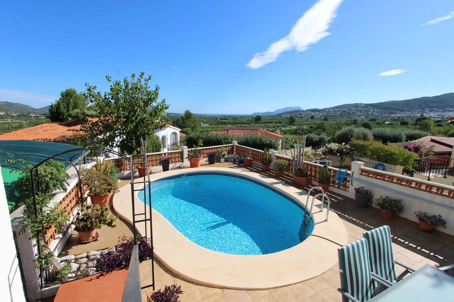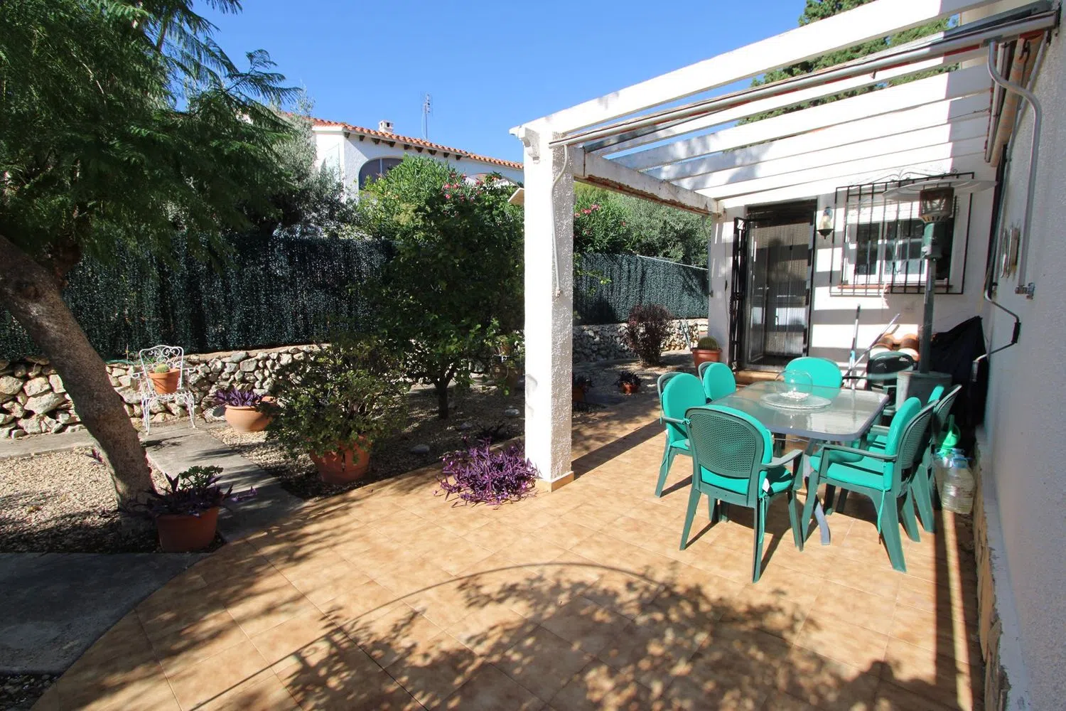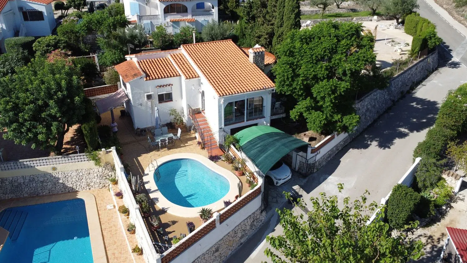 The villa comes equipped with modern conveniences such as air conditioning, gas heating, satellite TV, double glazing, and ample parking spaces with both an outdoor parking area and a garage for a vehicle. The property boasts a private pool measuring 6x3 meters, perfect for relaxing on sunny days.