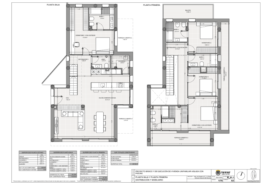 La estructura vertical será de pilares de hormigón armado, con forjados unidireccionales de 25+5 cm. Acero estructural B500S, ferrallado en taller.