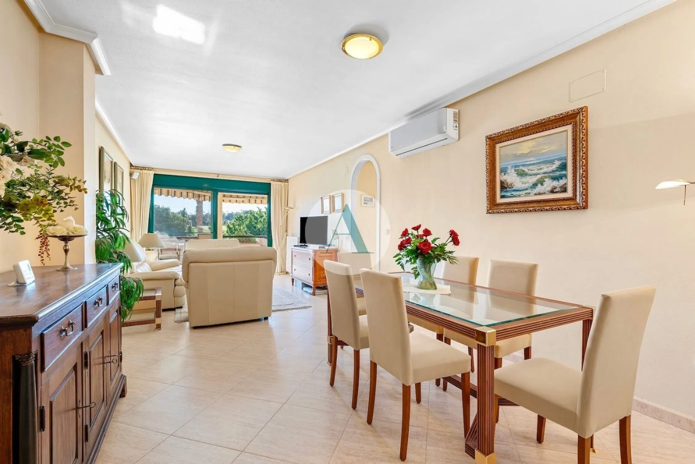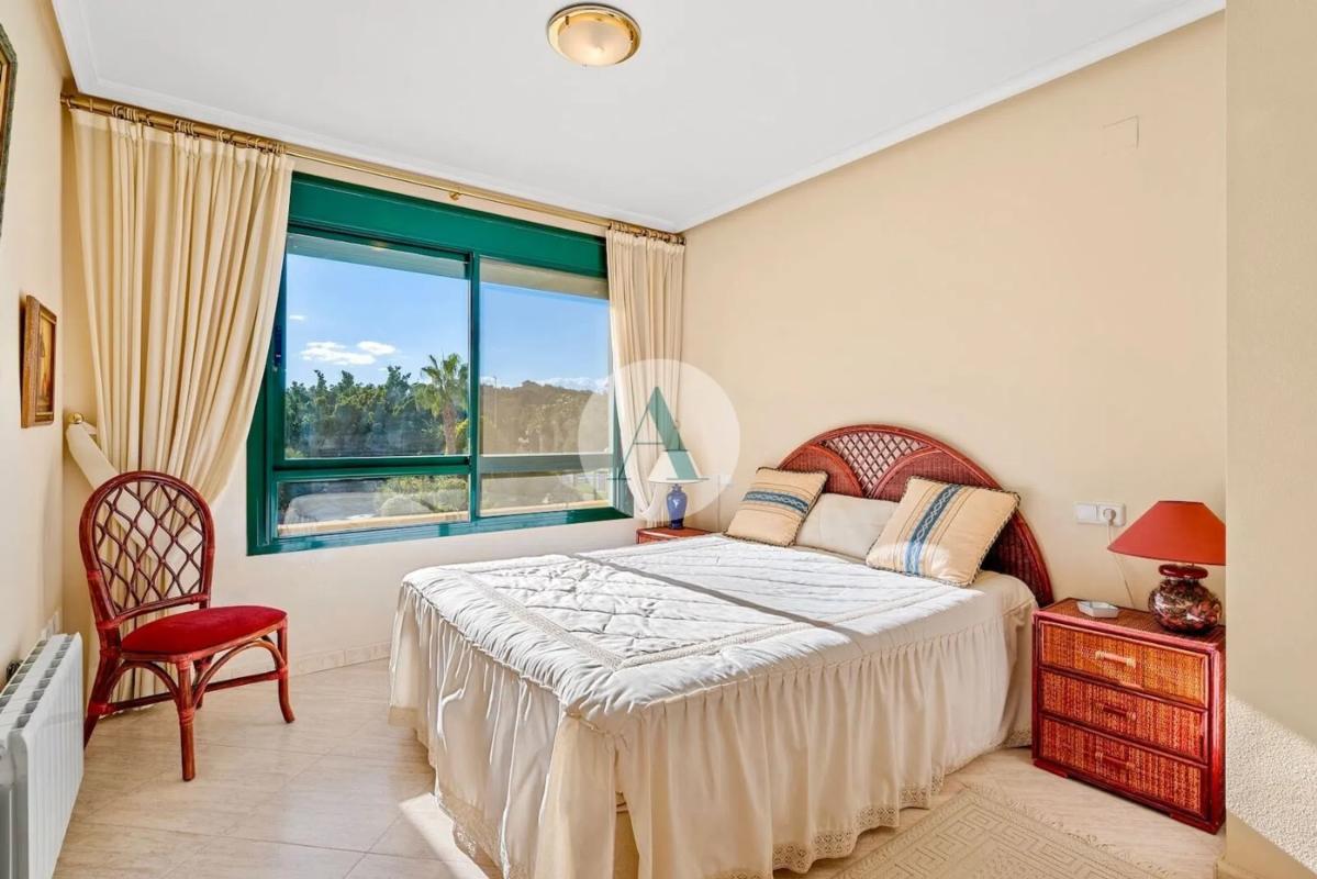 Descubra este espacioso y cuidado apartamento en Lomas de Campoamor, con una magnífica ubicación en primera línea del campo de golf. Disfrute desde el salón y el amplio balcón de unas amplias vistas al verde paisaje, al campo de golf y a la piscina comunitaria. Con una superficie construida de 98m² y un balcón de 22m², este apartamento es ideal para quienes buscan espacio, sol y tranquilidad. El balcón está orientado al suroeste y cuenta con toldos en todos los lados. Características principales de este apartamento - Amplio salón con vistas abiertas al entorno verde - 2 amplios dormitorios con bonitas vistas y armarios empotrados - 2 baños, uno de ellos en suite, ambos con mucho espacio de almacenamiento y bañera - Cocina amplia y separada equipada con placa cerámica nueva, horno, lavavajillas, frigorífico/congelador y microondas - Calefacción central (gas) con radiadores en todas las estancias - Aire acondicionado en el salón - Totalmente amueblado y en excelente estado Ubicación y alrededores - Apartamento en primera línea de golf con ubicación privilegiada dentro del complejo Lomas de Campoamor - A poca distancia a pie del club de golf, comercios locales, bares y restaurantes - Perfecto para quienes disfrutan de espacio, sol y tranquilidad, y al mismo tiempo quieren estar cerca de todos los servicios Este apartamento en Lomas de Campoamor combina confort, vistas y una ubicación inmejorable, ideal como vivienda vacacional o residencia permanente en la Costa Blanca Sur. ¡Contacta con Adaleta para más información o para concertar una visita!