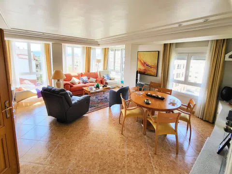 Piso exterior a dos calles, en planta 5º, con orientación tanto sureste como suroeste, haciendo que tenga sol prácticamente todo el día. Gracias a esto y a la gran cantidad de ventanas, se trata de un inmueble muy luminoso, bien ventilado y con fantásticas vistas a los andenes. Además es muy silencioso y mantiene muy bien la temperatura. Dispone de 140 metros cuadrados repartidos en 3 habitaciones, 2 baños completos, 1 salón comedor, 1 salita, 1 cocina y 1 recibidor. La vivienda está en perfectas condiciones para entrar a vivir. Además, se vende con prácticamente todos los muebles y electrodomésticos. Cabe destacar que la vivienda cuenta también con equipos de aire acondicionado, puerta blindada y videoportero. El inmueble cuenta además con ascensor, y rampa de acceso. A menos de 3 minutos andando existen los siguientes servicios: estación de tren, parada de taxis, farmacia, supermercado, bares/restaurantes, paseo peatonal y parque infantil.