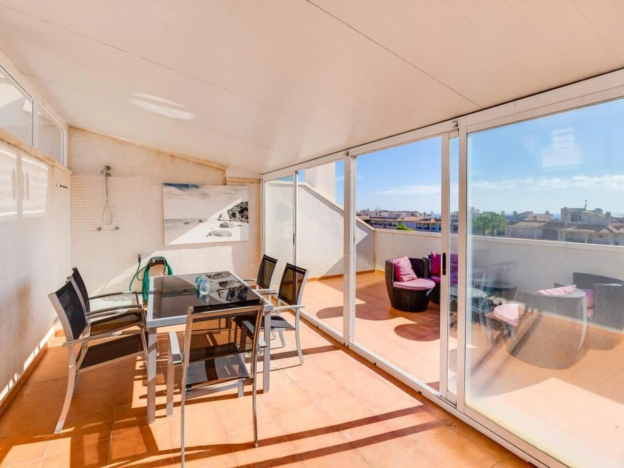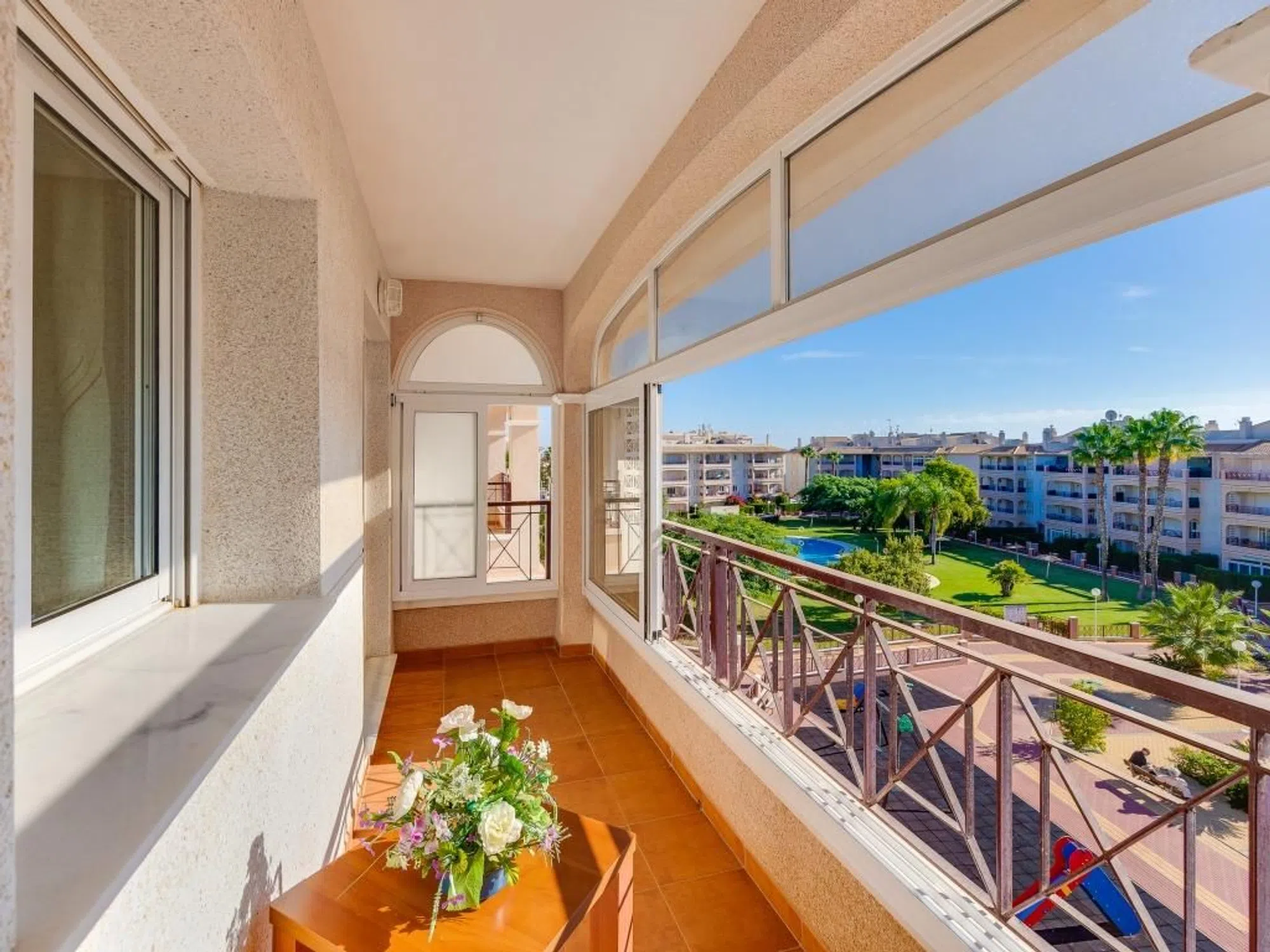 � Elegante apartamento con vistas al mar en Laguna Golf – Playa Flamenca Presentamos este moderno apartamento de 3 dormitorios y 2 baños, con una superficie construida de 96 m², situado en una de las zonas más demandadas de la Costa Blanca. Construido en 2007 y con orientación sur, esta vivienda ofrece un estilo de vida cómodo, soleado y práctico durante todo el año. ✨ CARACTERÍSTICAS DESTACADAS: 3 dormitorios amplios y luminosos 2 baños completos, ideal para familias o visitas Balcón de 8 m² con preciosas vistas al mar, perfecto para relajarse Plaza de garaje privada incluida Climatización con aire acondicionado y calefacción Excelente iluminación natural y vistas despejadas Edificio seguro con puerta blindada y ascensor � UBICACIÓN INMEJORABLE Situado en el residencial Laguna Golf – Playa Flamenca, a tan solo 2 km de la playa, y cerca de: Colegios y paradas de autobús Centros comerciales como Zenia Boulevard Campos de golf de renombre Todos los servicios necesarios para el día a día Una opción ideal tanto para residencia habitual como para inversión vacacional. Este apartamento combina lo mejor de la vida mediterránea con todas las comodidades modernas.