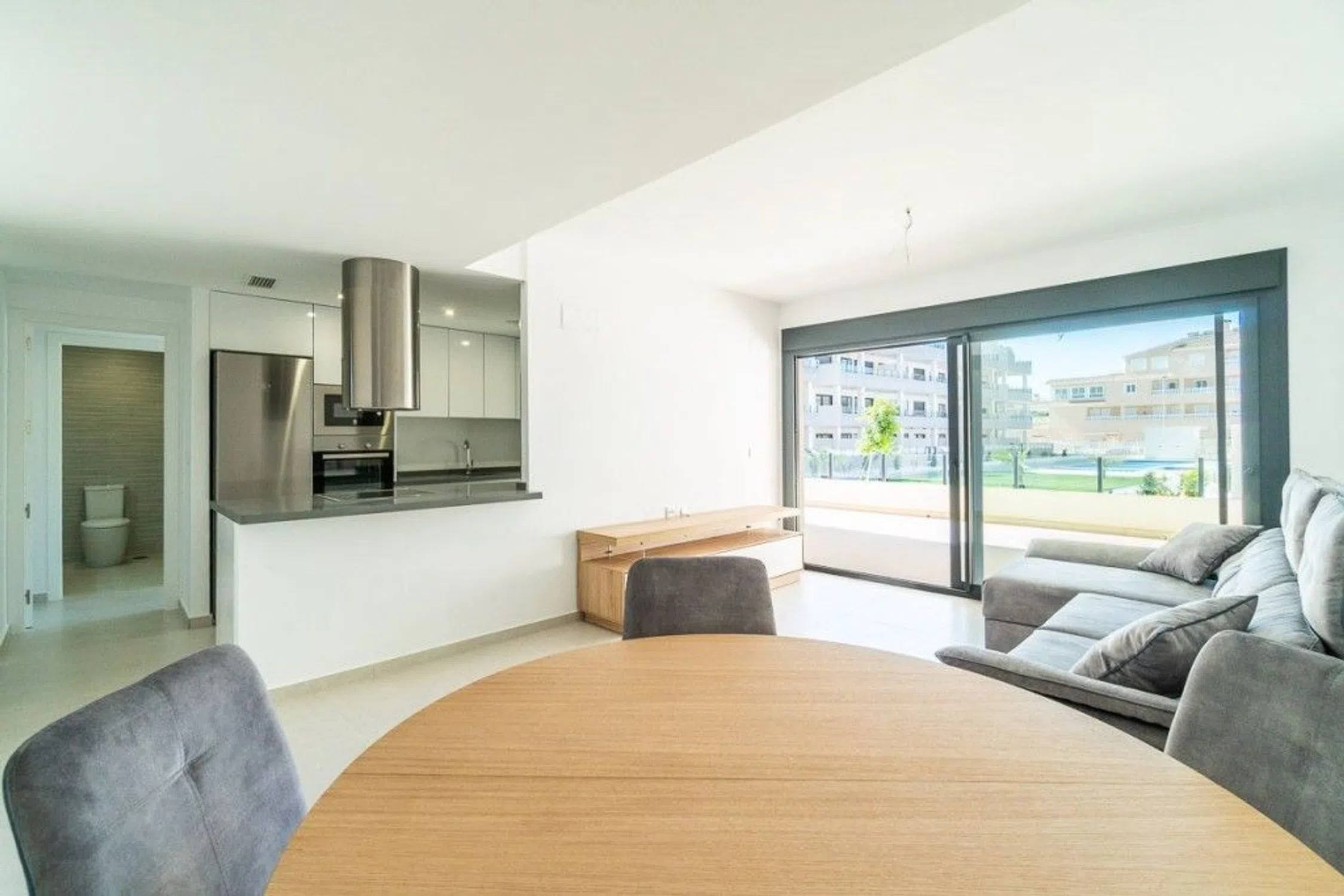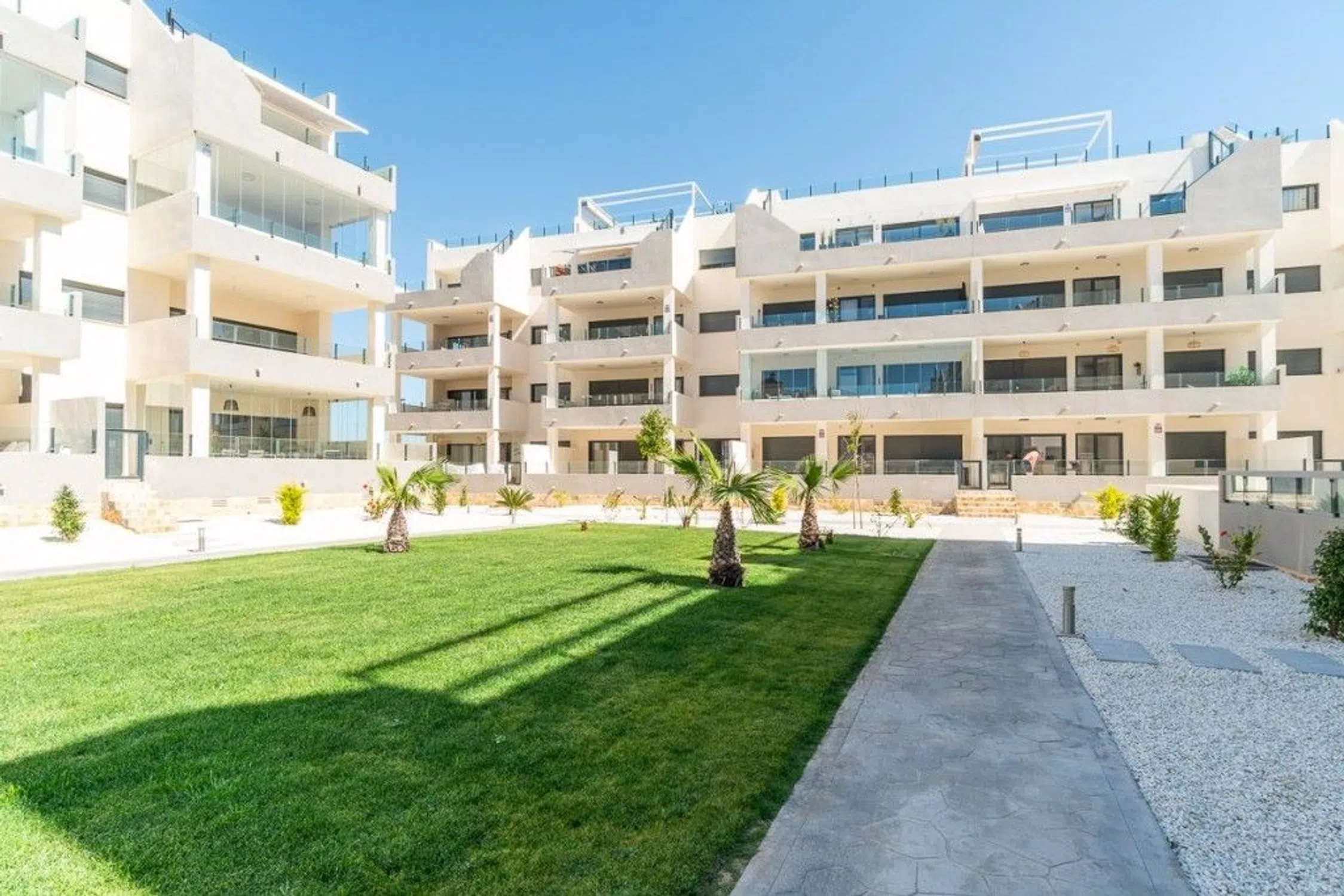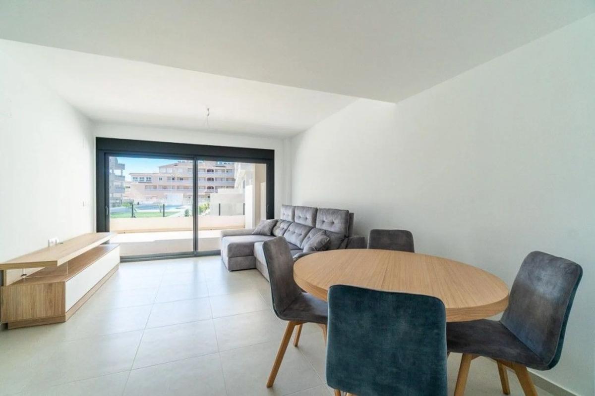 Estamos muy contentos de traer al mercado este magnífico apartamento en planta baja a estrenar, construido en 2024. Situado en una de las zonas más cotizadas de Orihuela Costa, a pocos minutos de las playas y servicios más exclusivos de la Costa Blanca. Con una superficie construida de 71 m² y una espectacular terraza de 47 m² que puede dividirse fácilmente en dos cerrando una parte con cristal, esta propiedad es ideal como primera residencia, segunda vivienda o inversión. La vivienda cuenta con dos amplios dormitorios dobles con armarios empotrados y dos baños completos, uno de ellos en suite, que ofrecen comodidad y privacidad. La cocina americana totalmente equipada se integra a la perfección en un espacio moderno y funcional, ideal para disfrutar en familia o con amigos. También tiene acceso directo a la piscina comunitaria desde la terraza. La orientación sur proporciona una excelente luz natural durante todo el día, haciendo de esta vivienda un hogar cálido, luminoso y muy acogedor. Las características adicionales incluyen aire acondicionado central, persianas eléctricas, acceso para minusválidos, un ascensor, un trastero y una plaza de garaje también están incluidos en el precio. Para más información no dude en ponerse en contacto con nosotros.