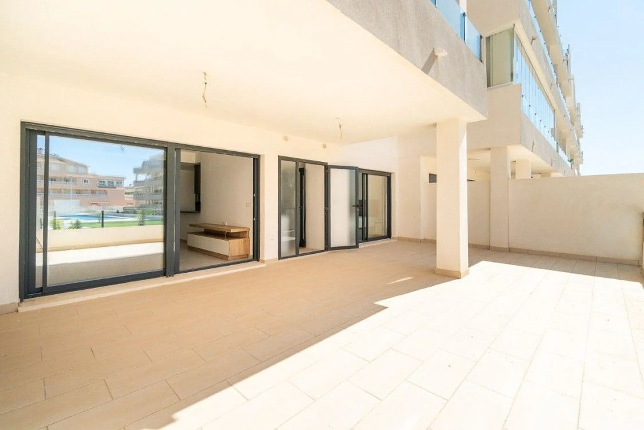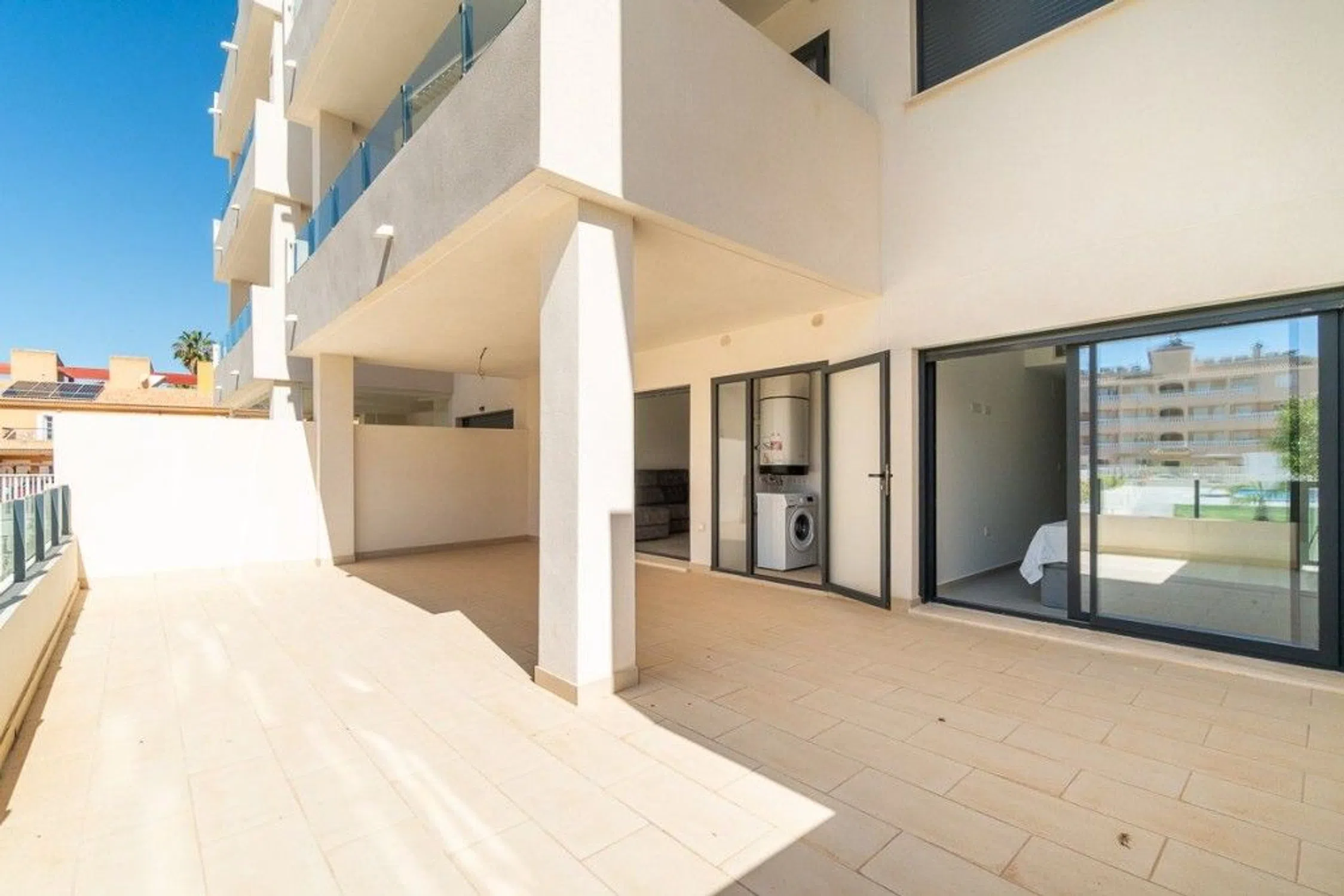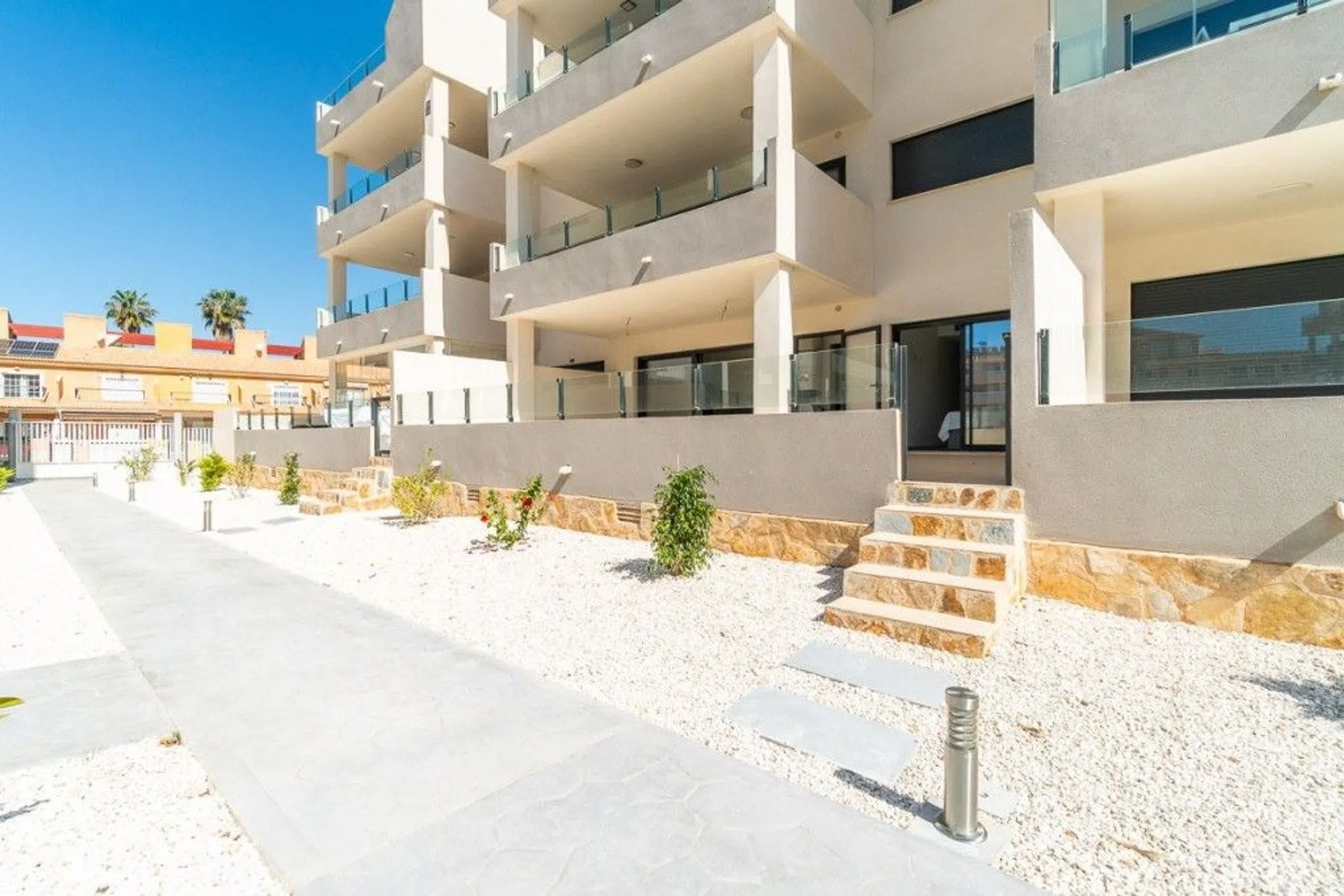 Estamos muy contentos de traer al mercado este magnífico apartamento en planta baja a estrenar, construido en 2024. Situado en una de las zonas más cotizadas de Orihuela Costa, a pocos minutos de las playas y servicios más exclusivos de la Costa Blanca. Con una superficie construida de 71 m² y una espectacular terraza de 47 m² que puede dividirse fácilmente en dos cerrando una parte con cristal, esta propiedad es ideal como primera residencia, segunda vivienda o inversión. La vivienda cuenta con dos amplios dormitorios dobles con armarios empotrados y dos baños completos, uno de ellos en suite, que ofrecen comodidad y privacidad. La cocina americana totalmente equipada se integra a la perfección en un espacio moderno y funcional, ideal para disfrutar en familia o con amigos. También tiene acceso directo a la piscina comunitaria desde la terraza. La orientación sur proporciona una excelente luz natural durante todo el día, haciendo de esta vivienda un hogar cálido, luminoso y muy acogedor. Las características adicionales incluyen aire acondicionado central, persianas eléctricas, acceso para minusválidos, un ascensor, un trastero y una plaza de garaje también están incluidos en el precio. Para más información no dude en ponerse en contacto con nosotros.