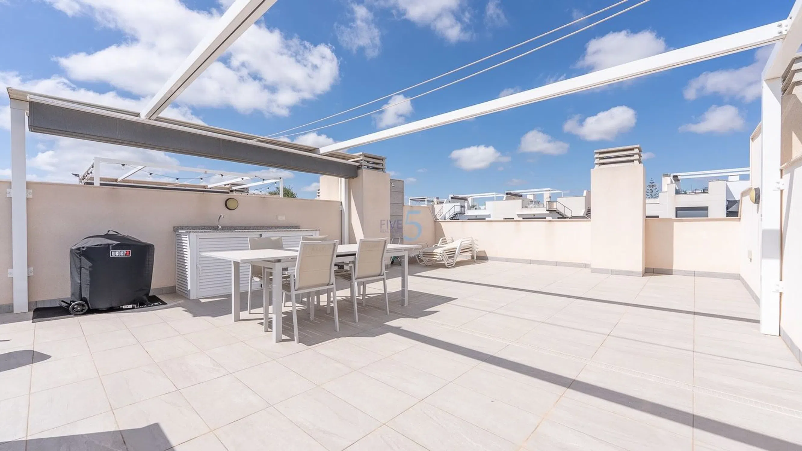 Este impresionante ático de dos dormitorios con orientación sur se encuentra en la codiciada urbanización Valentino Golf II, un complejo seguro y bellamente mantenido en el corazón de Villamartín. Los residentes de esta popular urbanización disfrutan de acceso a tres piscinas comunitarias y jardines, todos a poca distancia de tiendas, bares, restaurantes, el campo de golf de Villamartín y la animada Plaza de Villamartín. Se puede acceder al apartamento a través de un ascensor comunitario y ofrece un diseño luminoso y moderno de planta abierta, con una amplia sala de estar y comedor junto con una cocina contemporánea totalmente equipada. Toda la propiedad se beneficia de control de clima con configuraciones de frío y calor, lo que la convierte en un hogar cómodo durante todo el año. Desde la sala de estar, las puertas correderas se abren a un balcón privado, que también brinda acceso al amplio solárium de la azotea. Este impresionante espacio al aire libre cuenta con una cocina al aire libre y vistas panorámicas a los jardines y la piscina comunitarios, perfecto para entretenerse o relajarse bajo el sol del Mediterráneo. El apartamento consta de dos dormitorios dobles, cada uno con armarios empotrados. El dormitorio principal incluye un elegante baño en suite con ducha a ras de suelo, mientras que el moderno baño familiar también cuenta con una ducha a ras de suelo para mayor comodidad. Las características adicionales incluyen una plaza de aparcamiento privada dentro del garaje comunitario seguro y un trastero dedicado, que ofrece comodidad y practicidad en una ubicación privilegiada. Este ático es ideal como residencia permanente, casa de vacaciones u oportunidad de inversión en una de las zonas más deseables de la Costa Blanca. 5 Real Estate es la agencia inmobiliaria internacional de servicio completo y tarifa fija de más rápido crecimiento en España, con numerosas oficinas en el norte y sur de la Costa Blanca, así como en la región de Murcia. Estamos comprometidos a brindar un servicio transparente y de primera clase a todos nuestros clientes, ya sean compradores o vendedores. Desde el momento en que se ponga en contacto con nosotros por primera vez, se dará cuenta de la diferencia que ofrecemos y promovemos como estándar. Puede estar seguro de que está tratando con profesionales eficientes y confiables con muchos años de experiencia en bienes raíces españoles. En 5 Real Estate solo vendemos propiedades que están listadas directamente con nosotros, lo que significa que conocemos personalmente a cada uno de los vendedores, sus casas y las áreas en las que se encuentran. Dada nuestra amplia cartera de propiedades listadas directamente, estamos seguros de que podemos encontrar la propiedad adecuada para satisfacer sus necesidades. Por lo tanto, haga una consulta hoy y descubra por qué somos tan diferentes y por qué nos estamos convirtiendo en el agente elegido tanto por compradores como por vendedores.