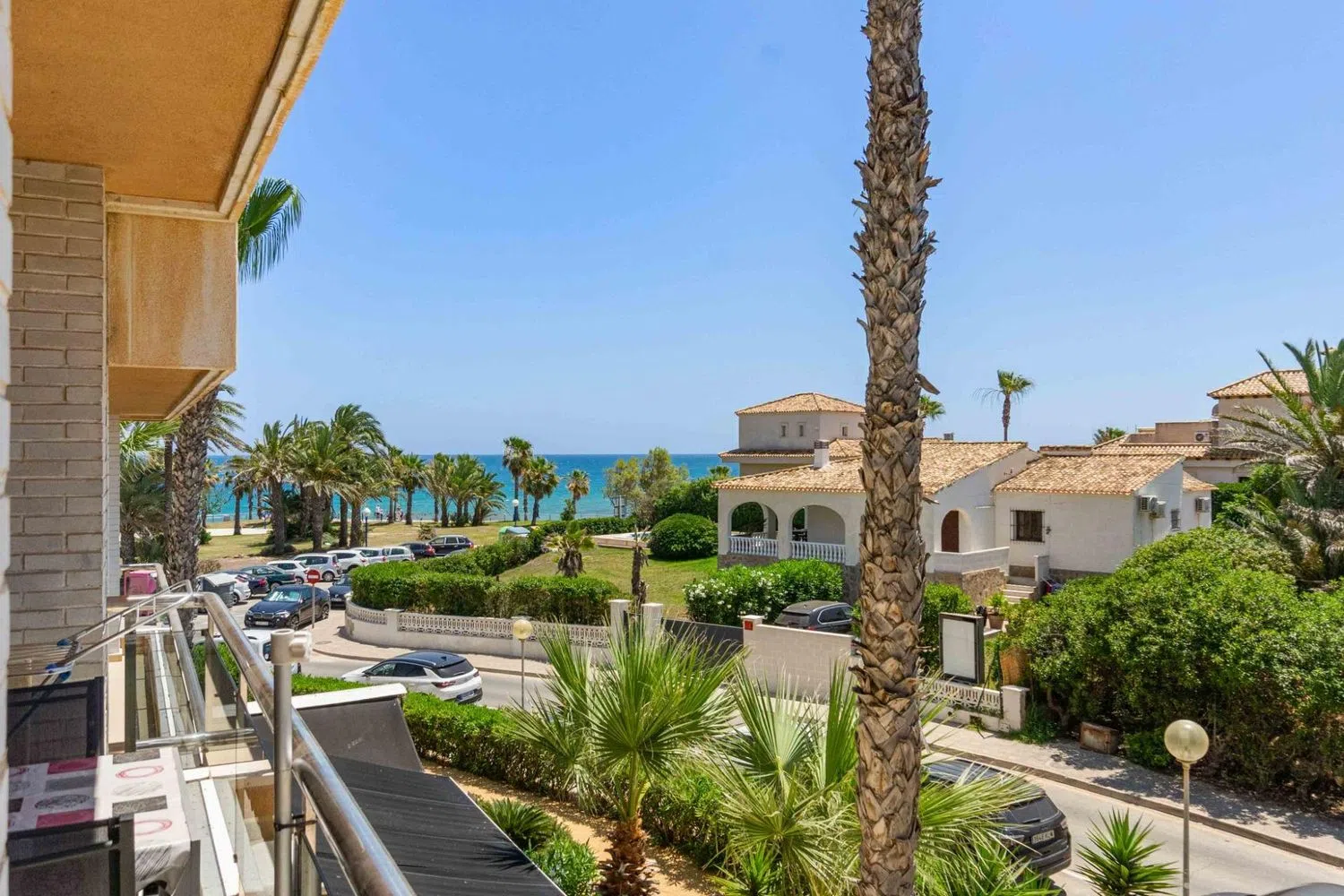 The fully equipped kitchen includes all necessary appliances and the electrical system and plumbing have been updated for your peace of mind. This home stands out with its south-facing orientation, allowing ample natural light to fill the space, and features a delightful 15 m² balcony that offers clear and partial sea views, perfect for relaxation. Additionally, convenient awnings are provided for added comfort.
