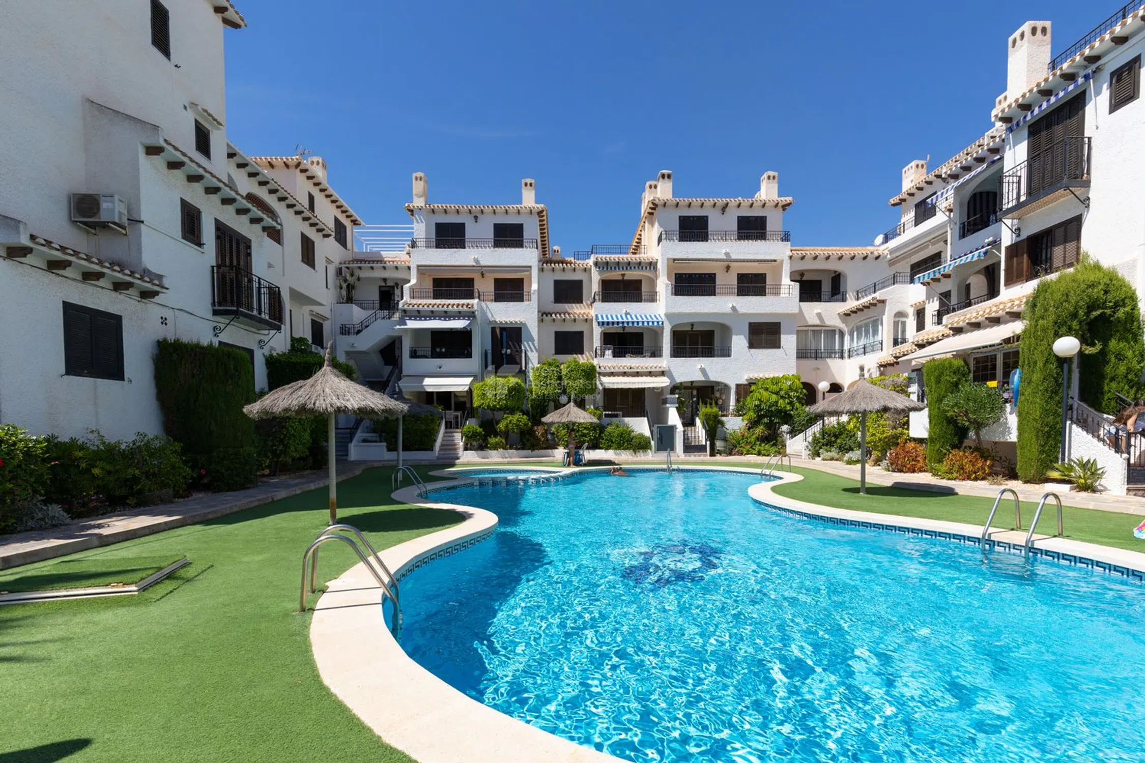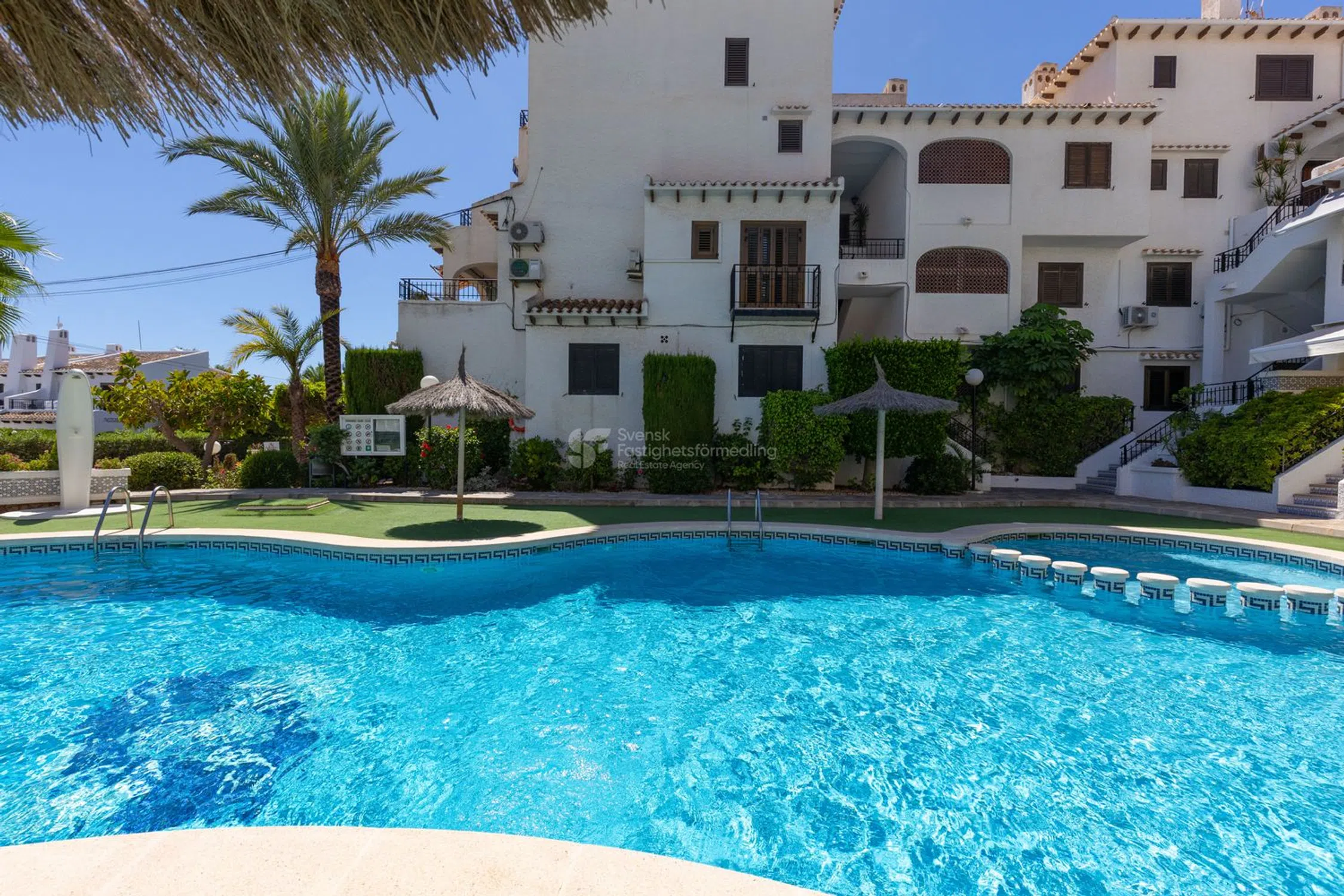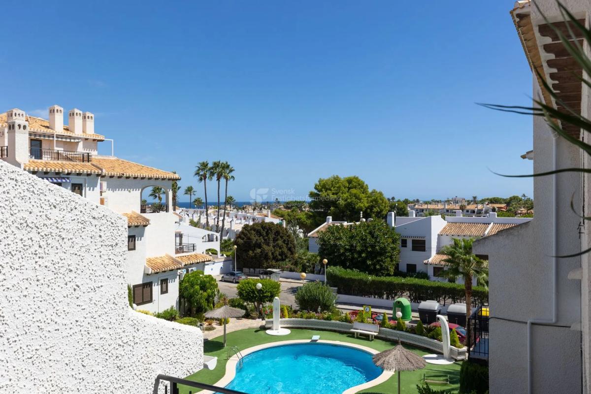 ¿Sueñas con un hogar bajo el sol cerca del mar? Este encantador apartamento ofrece todo lo que puedas desear tanto para vacaciones como para residencia permanente. Al entrar, te recibe un acogedor salón con chimenea, perfecto para noches agradables durante todo el año. También hay dos dormitorios con aire acondicionado que proporcionan frescor durante los cálidos días de verano. La cocina totalmente equipada y la práctica lavandería hacen que la vida cotidiana sea fácil y cómoda. Un baño moderno completa la bien pensada distribución de la vivienda. El generoso balcón orientado al suroeste de unos 15 m² ofrece sol la mayor parte del día, perfecto para relajarse, comer al aire libre o disfrutar de momentos sociales con amigos. En la entrada de la casa se abre una hermosa vista sobre la cuidada zona de la piscina y hacia el brillante Mediterráneo. A solo unos 500 metros del mar y de la popular Playa Cabo Roig, lo que facilita darse un baño matutino o disfrutar de un día en la playa. La zona es conocida por su agradable y bien cuidada comunidad. Aquí hay una zona de piscina muy bonita con césped artificial antideslizante, ideal tanto para niños como para adultos. Además, el apartamento está conectado a la red de fibra, perfecto para trabajar a distancia o para streaming. Resumen Acogedor apartamento español con encanto genuino 2 dormitorios con aire acondicionado Salón con chimenea Cocina totalmente equipada + lavandería Balcón soleado orientado al suroeste, de unos 15 m² Maravillosas vistas a la piscina y al mar Aproximadamente a 500 m de Playa Cabo Roig Red de fibra y comunidad bien cuidada Una vivienda que combina comodidad, bienestar y una fantástica ubicación junto al mar, ¡lista para convertirse en tu nuevo hogar bajo el sol!