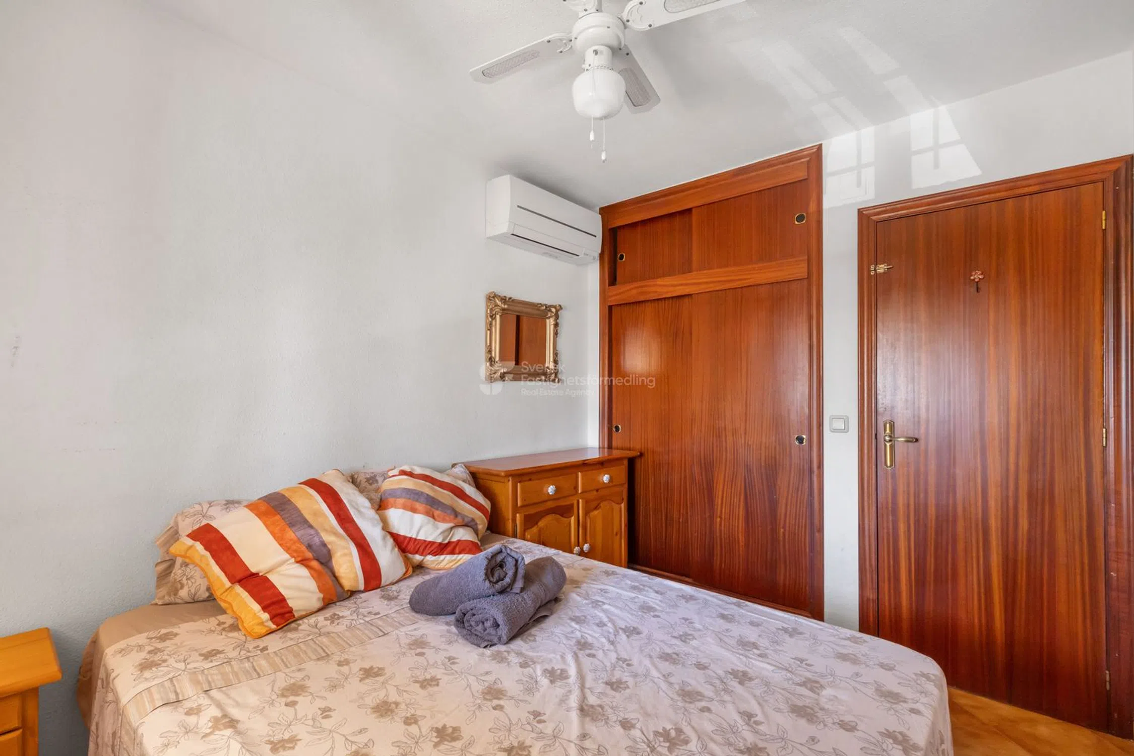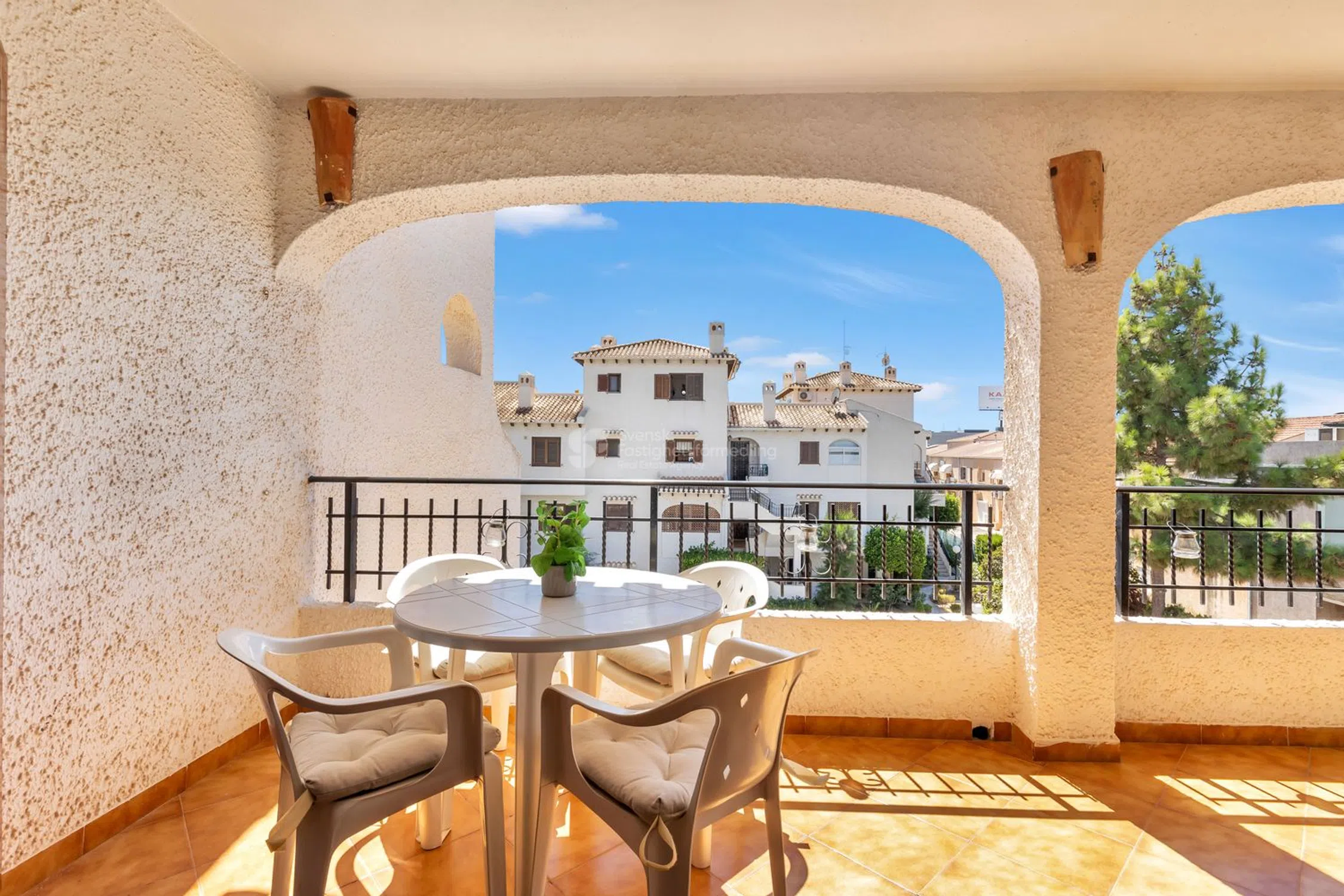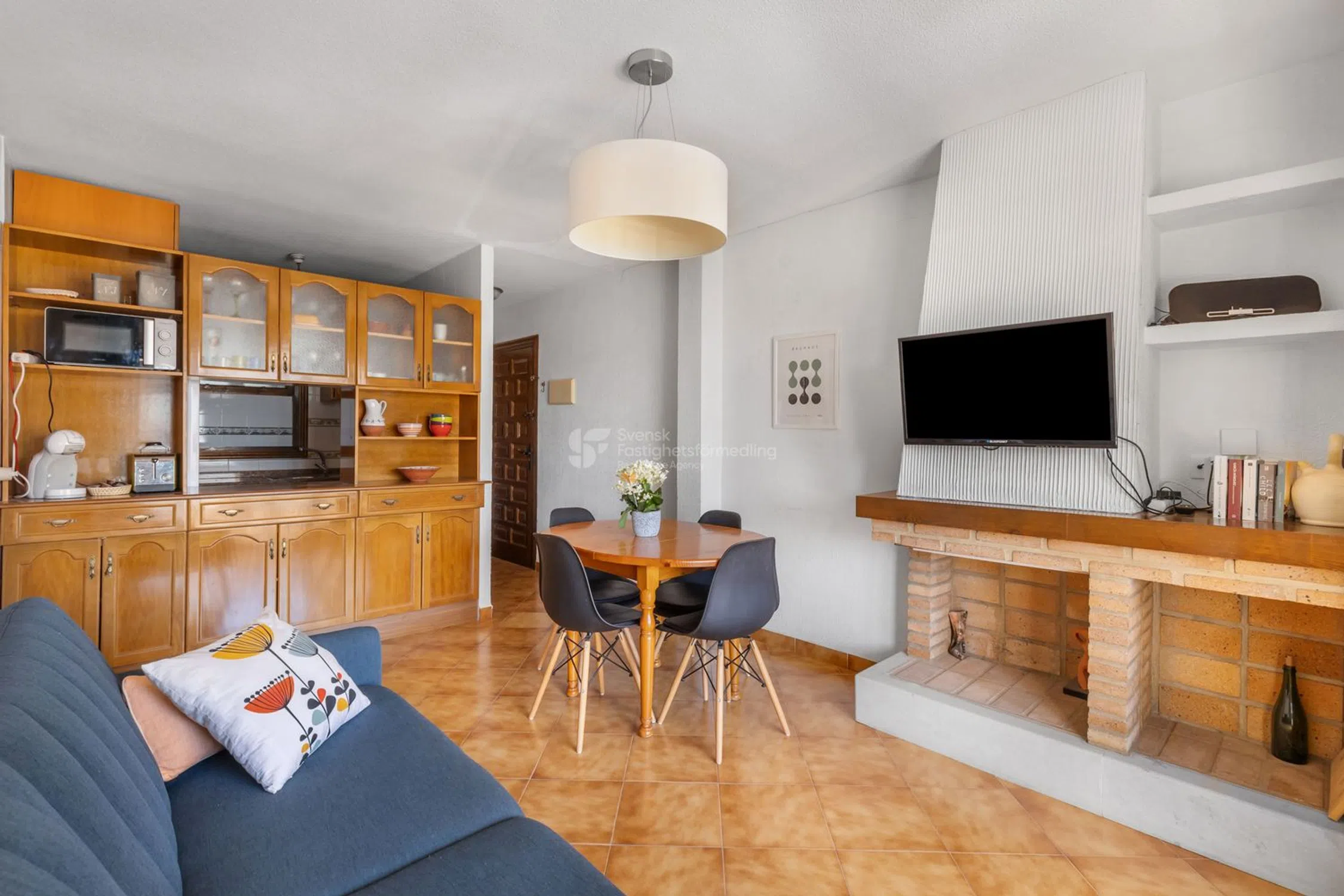 ¿Sueñas con un hogar bajo el sol cerca del mar? Este encantador apartamento ofrece todo lo que puedas desear tanto para vacaciones como para residencia permanente. Al entrar, te recibe un acogedor salón con chimenea, perfecto para noches agradables durante todo el año. También hay dos dormitorios con aire acondicionado que proporcionan frescor durante los cálidos días de verano. La cocina totalmente equipada y la práctica lavandería hacen que la vida cotidiana sea fácil y cómoda. Un baño moderno completa la bien pensada distribución de la vivienda. El generoso balcón orientado al suroeste de unos 15 m² ofrece sol la mayor parte del día, perfecto para relajarse, comer al aire libre o disfrutar de momentos sociales con amigos. En la entrada de la casa se abre una hermosa vista sobre la cuidada zona de la piscina y hacia el brillante Mediterráneo. A solo unos 500 metros del mar y de la popular Playa Cabo Roig, lo que facilita darse un baño matutino o disfrutar de un día en la playa. La zona es conocida por su agradable y bien cuidada comunidad. Aquí hay una zona de piscina muy bonita con césped artificial antideslizante, ideal tanto para niños como para adultos. Además, el apartamento está conectado a la red de fibra, perfecto para trabajar a distancia o para streaming. Resumen Acogedor apartamento español con encanto genuino 2 dormitorios con aire acondicionado Salón con chimenea Cocina totalmente equipada + lavandería Balcón soleado orientado al suroeste, de unos 15 m² Maravillosas vistas a la piscina y al mar Aproximadamente a 500 m de Playa Cabo Roig Red de fibra y comunidad bien cuidada Una vivienda que combina comodidad, bienestar y una fantástica ubicación junto al mar, ¡lista para convertirse en tu nuevo hogar bajo el sol!