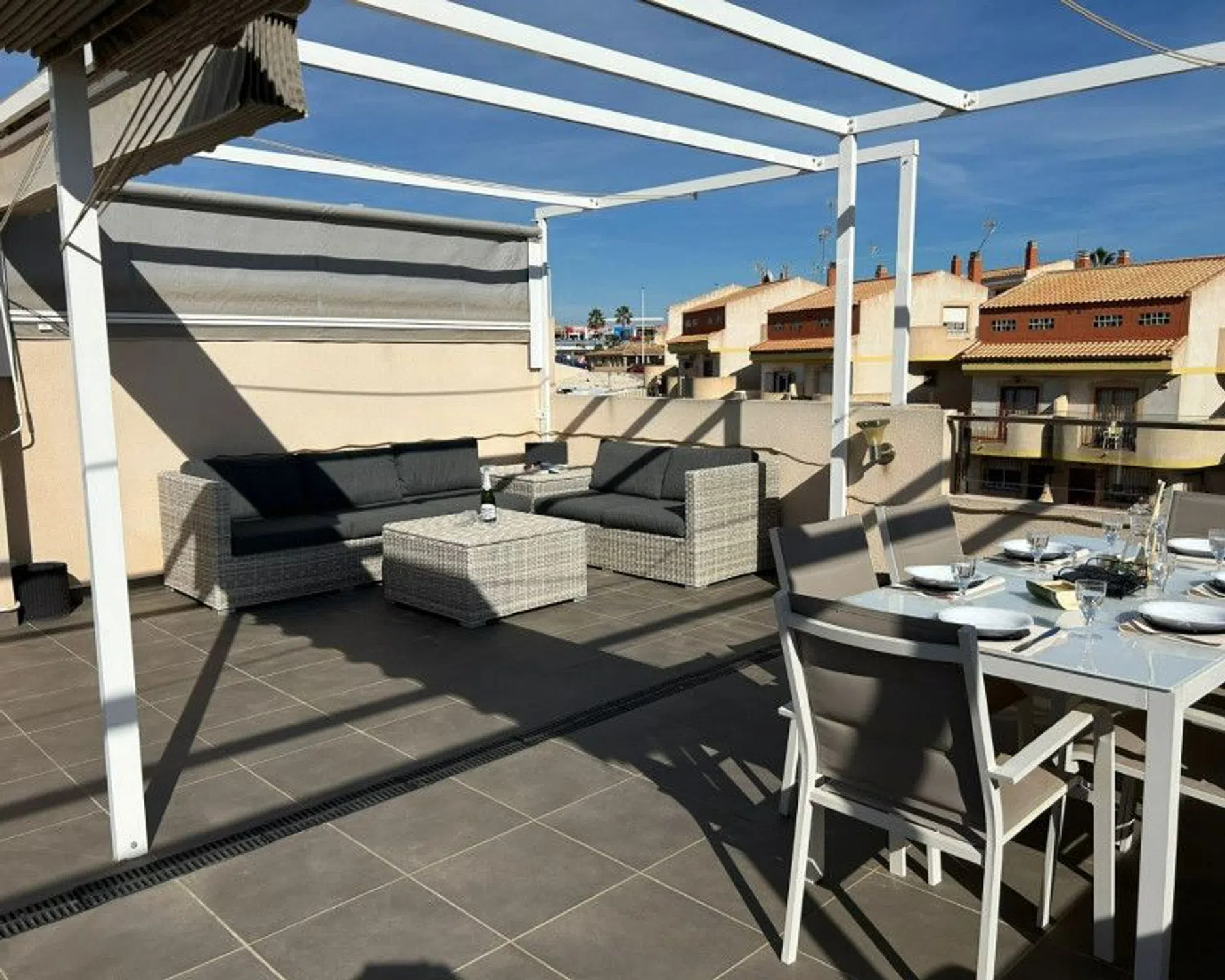 ¡Les presentamos este magnífico ático en La Zenia! El ático cuenta con dos dormitorios, dos baños, un salón-comedor de planta abierta y una fantástica terraza en la azotea. La terraza tiene espacio para una zona de estar, comedor y tumbonas; ¡perfecta para barbacoas con toda la familia y amigos! Podrá mudarse de inmediato y disfrutar de la ubicación desde el primer día: ideal como segunda residencia, vivienda habitual o inversión. Como residente de la urbanización, tendrá acceso a una refrescante piscina comunitaria, perfecta para relajarse y disfrutar del clima mediterráneo. Aquí vivirá a tan solo 12 minutos a pie de la hermosa playa de La Zenia. Además, la propiedad se encuentra a solo 800 metros del popular centro comercial Zenia Boulevard, que ofrece más de 150 tiendas, varios restaurantes y otras opciones de entretenimiento como bolera, sala de juegos y casino. Para los aficionados al golf, hay varios campos de alta calidad a poca distancia en coche. ¡Le invitamos a contactarnos en Notar para concertar una visita!