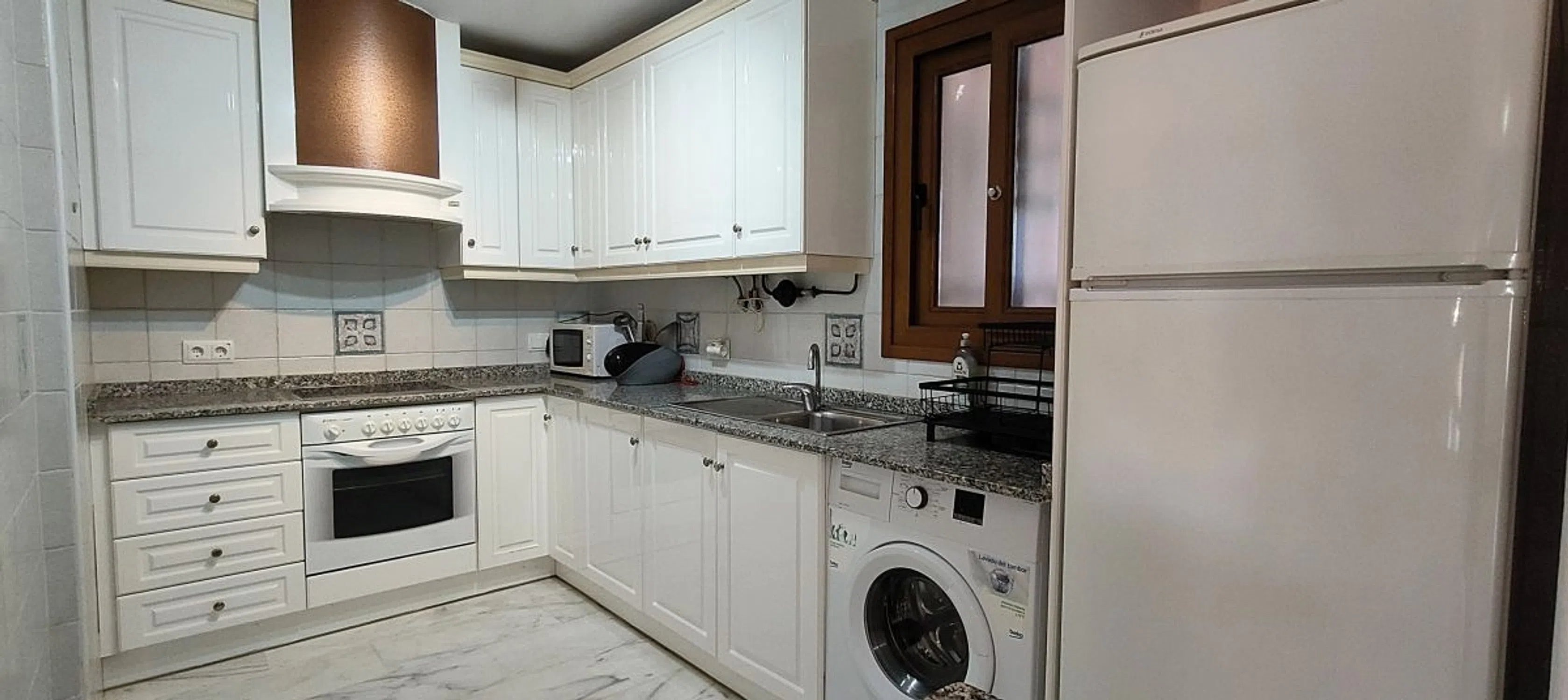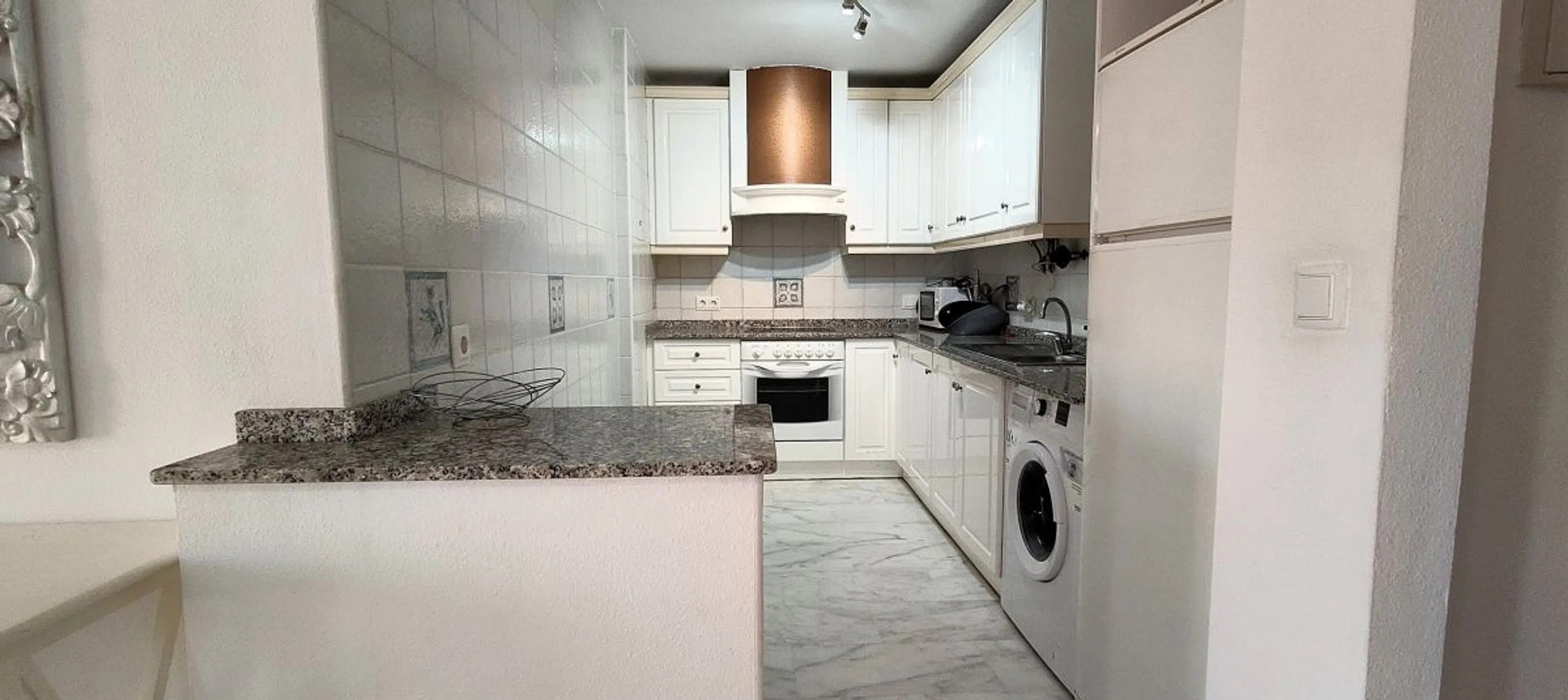 La distribución es ideal para la comodidad y la privacidad: el dormitorio principal cuenta con su propio baño en suite, mientras que el segundo dormitorio está situado justo al lado del baño familiar principal, perfecto para invitados o para la vida familiar. La propiedad está terminada con un alto nivel, con suelos de mármol, armarios empotrados y mucha luz natural en toda la vivienda. En el exterior, los residentes pueden disfrutar de una hermosa piscina comunitaria situada en exuberantes jardines verdes, perfecta para disfrutar del sol de la Costa Blanca. También hay aparcamiento cerrado y acceso en ascensor en el edificio para su comodidad. Ya sea que esté buscando una escapada de vacaciones, un hogar a tiempo completo o una gran inversión de alquiler, este apartamento cumple todos los requisitos. - Ubicación privilegiada: a pie de tiendas, bares y restaurantes - Excelente distribución con baño en suite + baño principal independiente - Comunidad cerrada con piscina y aparcamiento - Listo para entrar a vivir y lleno de encanto ¡No pierda esta oportunidad de poseer un pedazo de la buena vida en Villamartín!