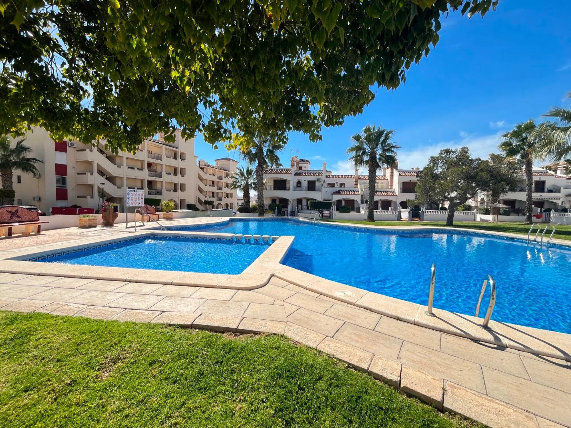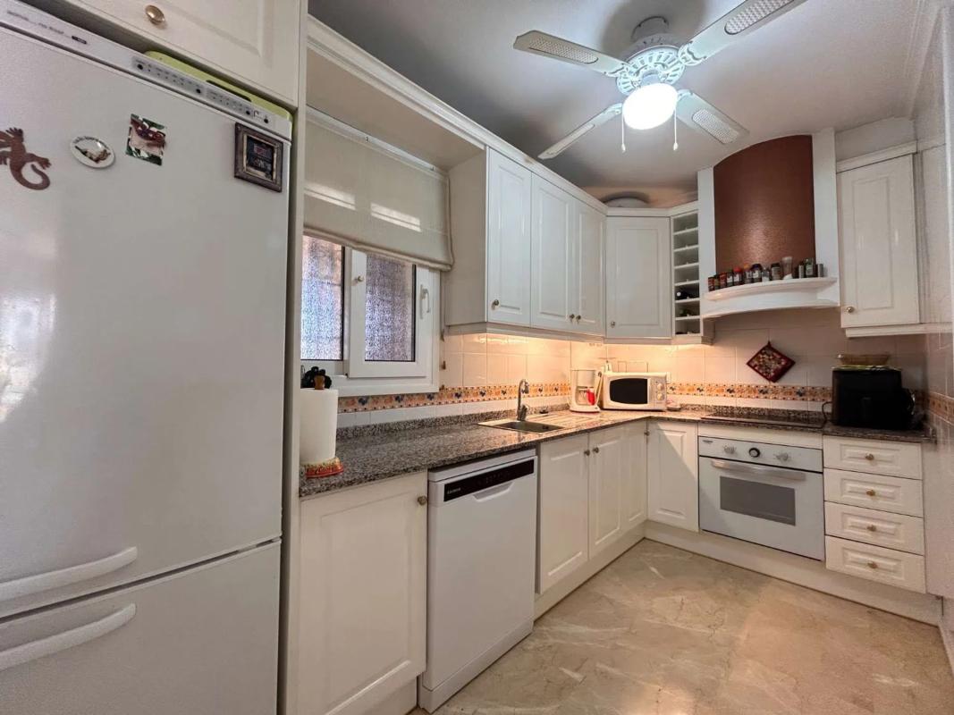 P-1575 Este moderno apartamento de 2 dormitorios y 2 baños orientado al sur se encuentra en el primer piso de una codiciada comunidad cerrada en Playa Flamenca. La amplia y luminosa sala de estar es ideal para relajarse o entretenerse, lo que la convierte en un hogar cómodo y acogedor. El apartamento cuenta con un garaje y un trastero. Ubicado dentro de una comunidad segura, el apartamento se beneficia de jardines muy bien cuidados y una gran piscina comunitaria, creando un entorno tranquilo y agradable. El estacionamiento fuera de la carretera también está disponible, lo que brinda comodidad y seguridad. A poca distancia del mar, la propiedad está cerca de tiendas, restaurantes y transporte público, lo que ofrece fácil acceso a todos los servicios locales. Ya sea que esté buscando un hogar permanente, una escapada de vacaciones o una gran inversión, este apartamento es una excelente opción. Póngase en contacto con nosotros hoy mismo para concertar una visita y hacer suya esta hermosa propiedad.