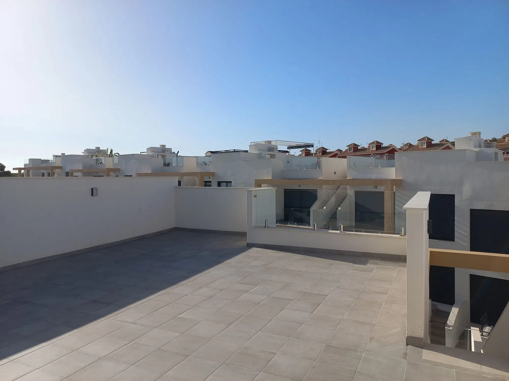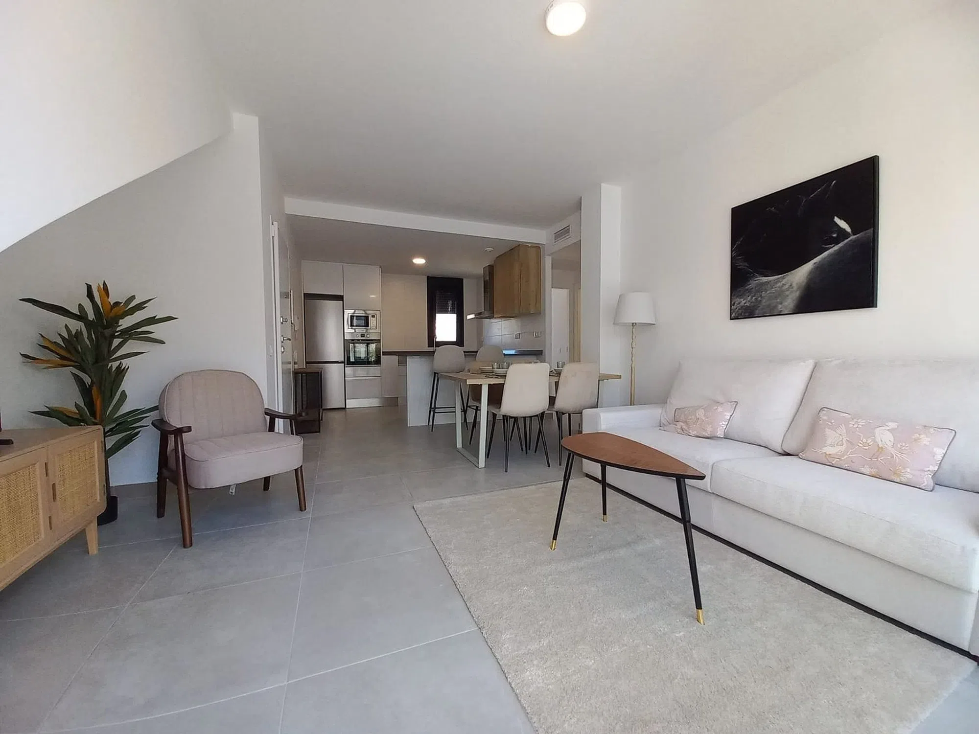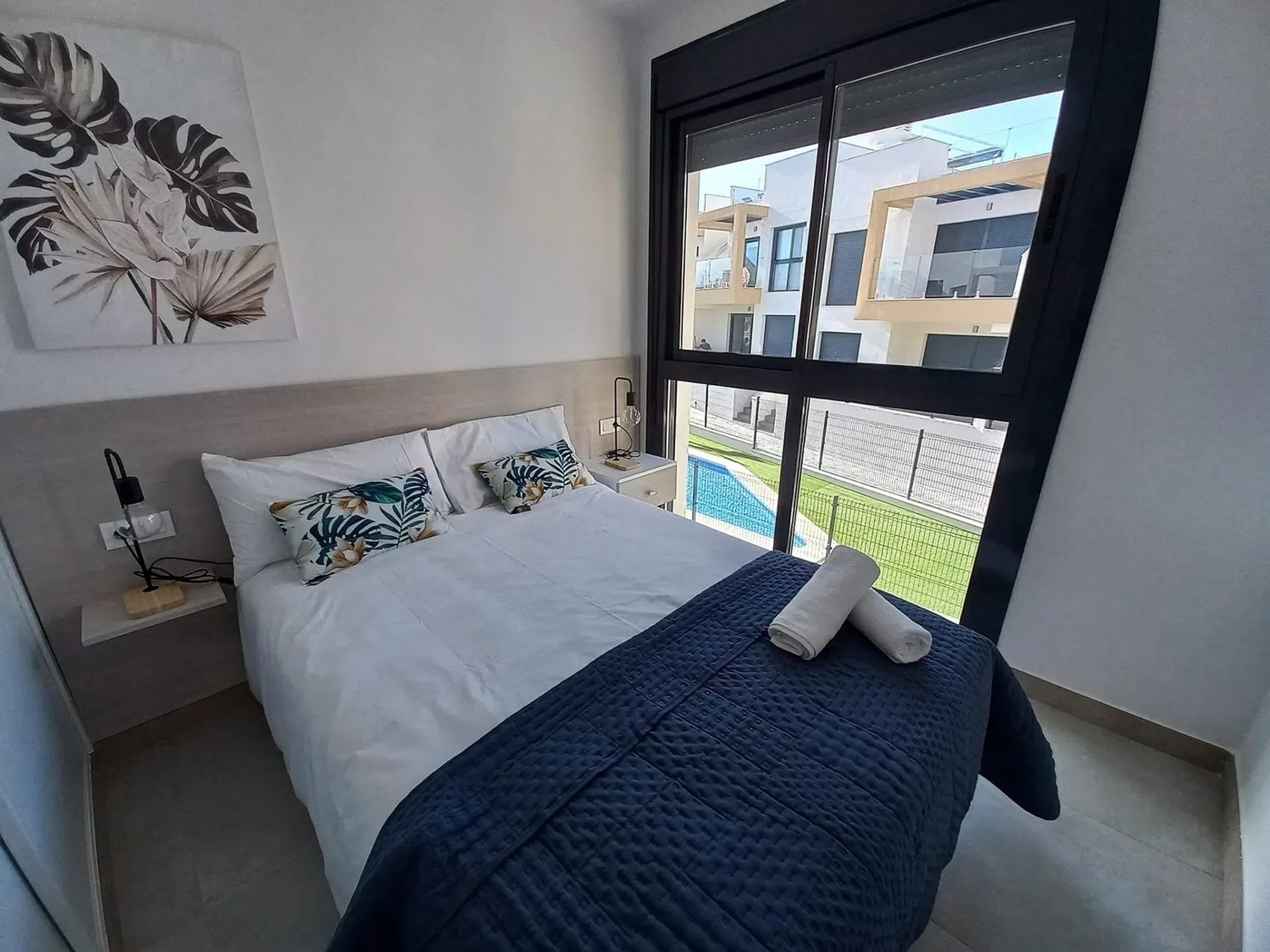 Pequeño y exclusivo complejo residencial moderno con apartamentos tipo bungalow y una fantástica piscina comunitaria. Situado en un hermoso complejo privado, muy céntrico con solo 40 apartamentos bungalow, tiene una superficie 129,43 m² (+ terrazas) con 2 dormitorios, 2 baños (1 de ellos en suite), salón/comedor con modernas cocinas equipadas, gran terraza embaldosada en la planta baja de unos 60 m². Vista a la zona comunitaria y una plaza de garaje incluida en el precio. ¡El apartamento está orientado al sur! El equipamiento de este apartamento incluye, entre otras cosas, ventanas de aluminio con doble acristalamiento, aislamiento acústico y térmico óptimo según las normas de construcción vigentes de la UE, puertas de seguridad en la zona de entrada, preinstalación de aire acondicionado, persianas enrollables, iluminación LED, baños con espejos y mamparas de ducha de cristal, armarios empotrados en los dormitorios y una moderna cocina equipada. Las tiendas, centro médico, centro comercial (La Zenia Boulevard) bares y restaurantes más cercanos están a sólo 2 minutos en coche en la zona de Villamartín y Orihuela Costa. Los numerosos campos de golf de Villamatin, Las Ramblas, Las Colinas y Campoamor hacen que esta zona sea única. Las hermosas calas de playa de Orihuela Costa y el nuevo centro comercial La Zenia Boulevard se encuentran a sólo unos minutos de este complejo. La excelente conexión con la autopista AP-7 asegura una buena comunicación con el resto de la provincia de Alicante y Murcia.